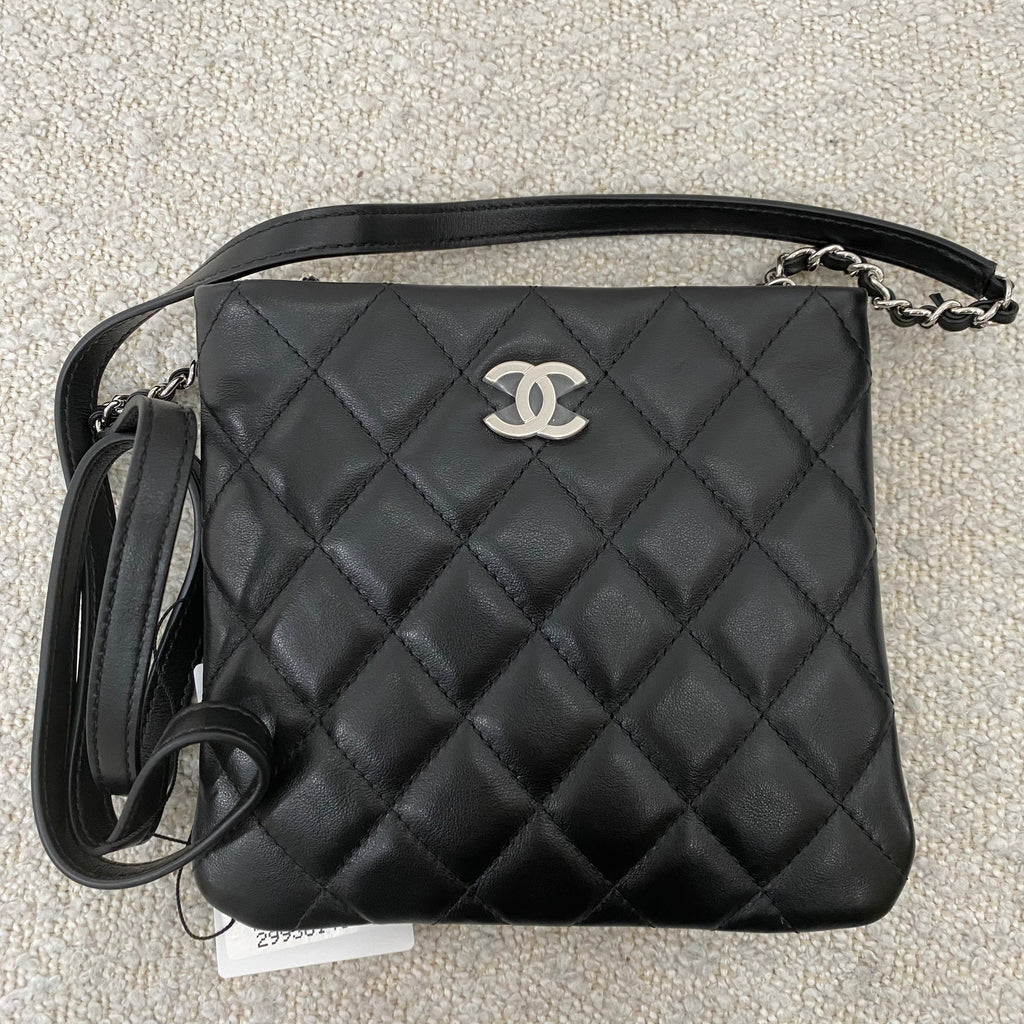 Pre-owned Chanel Black Lambskin CC Crossbody
