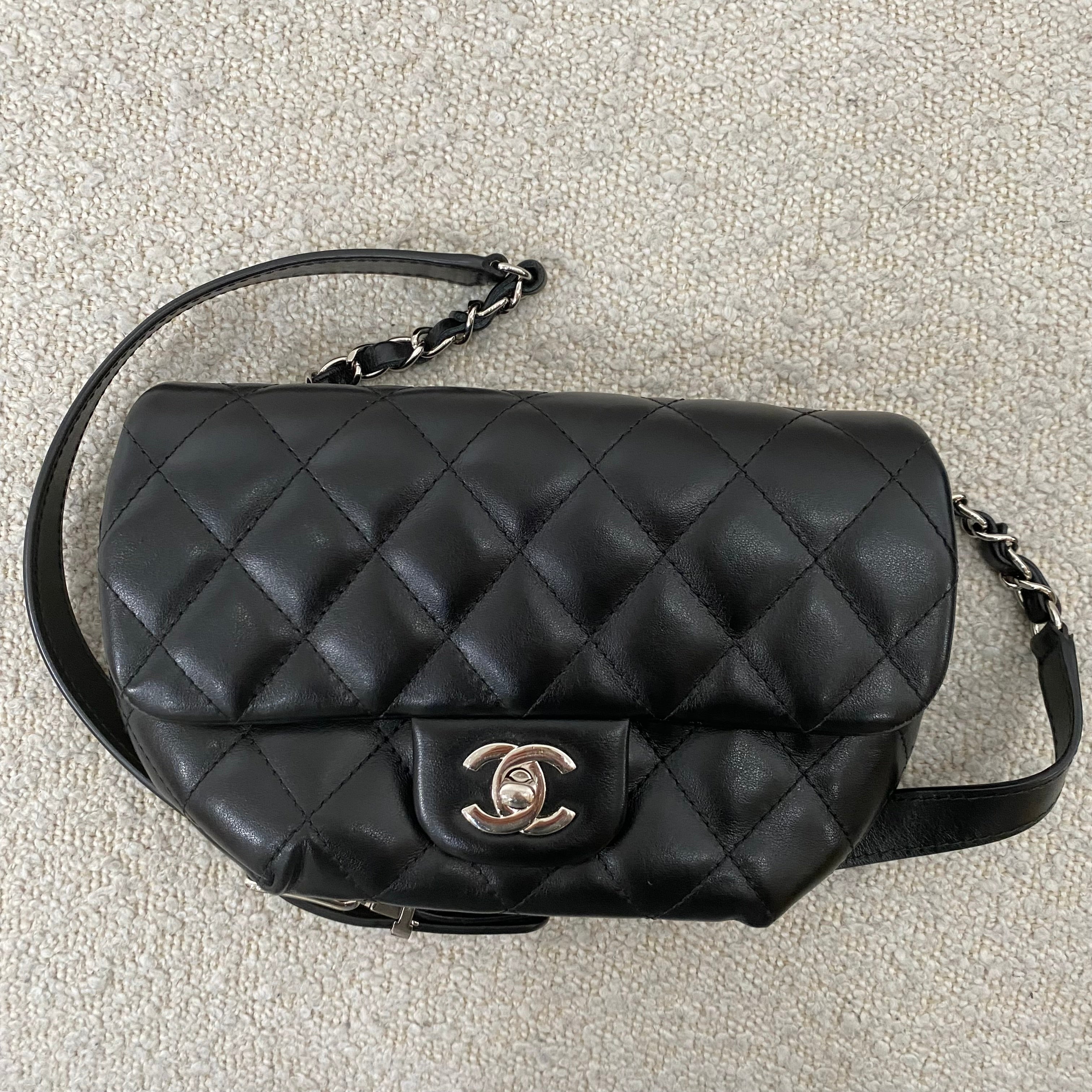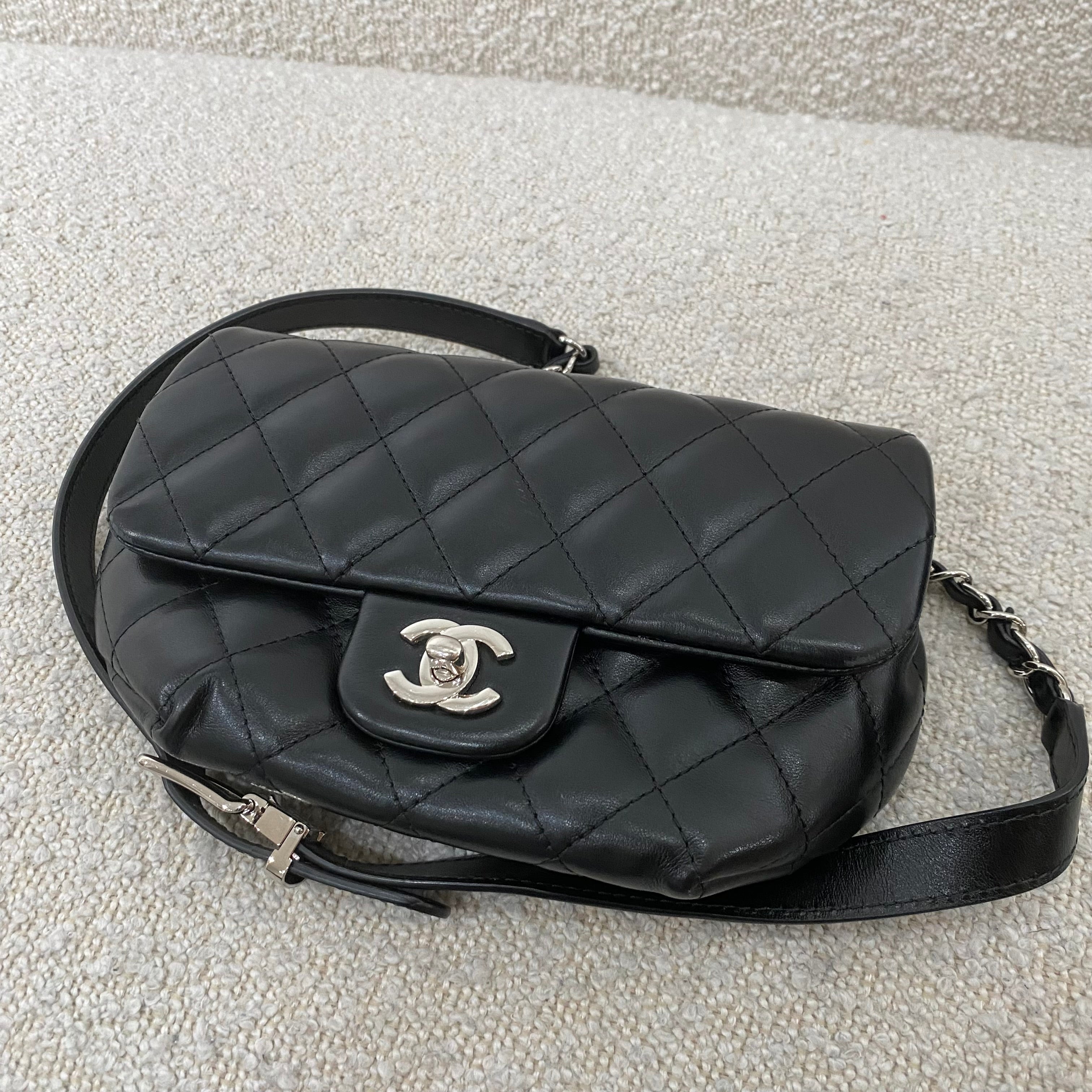 Pre-owned Chanel CC Turnlock Flap Belt Bag Black Lambskin