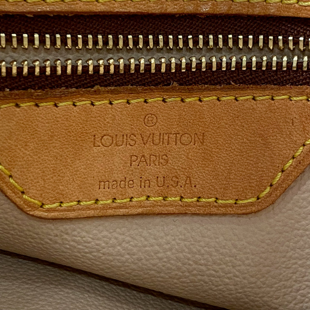 Approximately:  Length: 11in Width: 6in Bag depth: 10in Handle drop: 8.5in Height: 10in. Monogram coated canvas. Vachetta leather trims. Suede lining. Gold tone key chain inside.