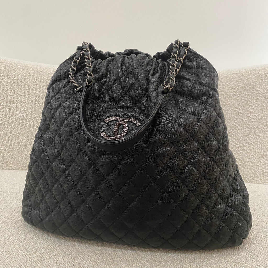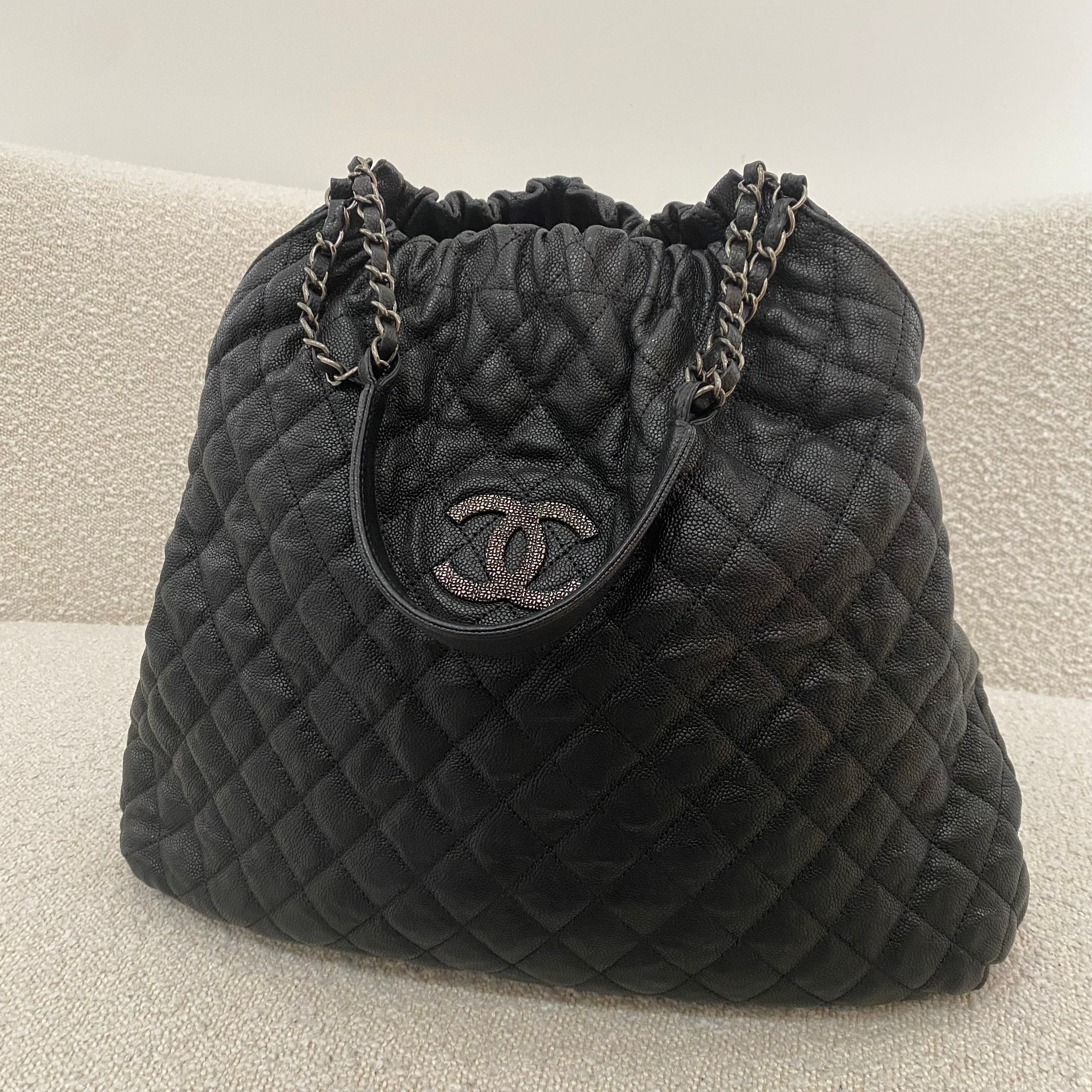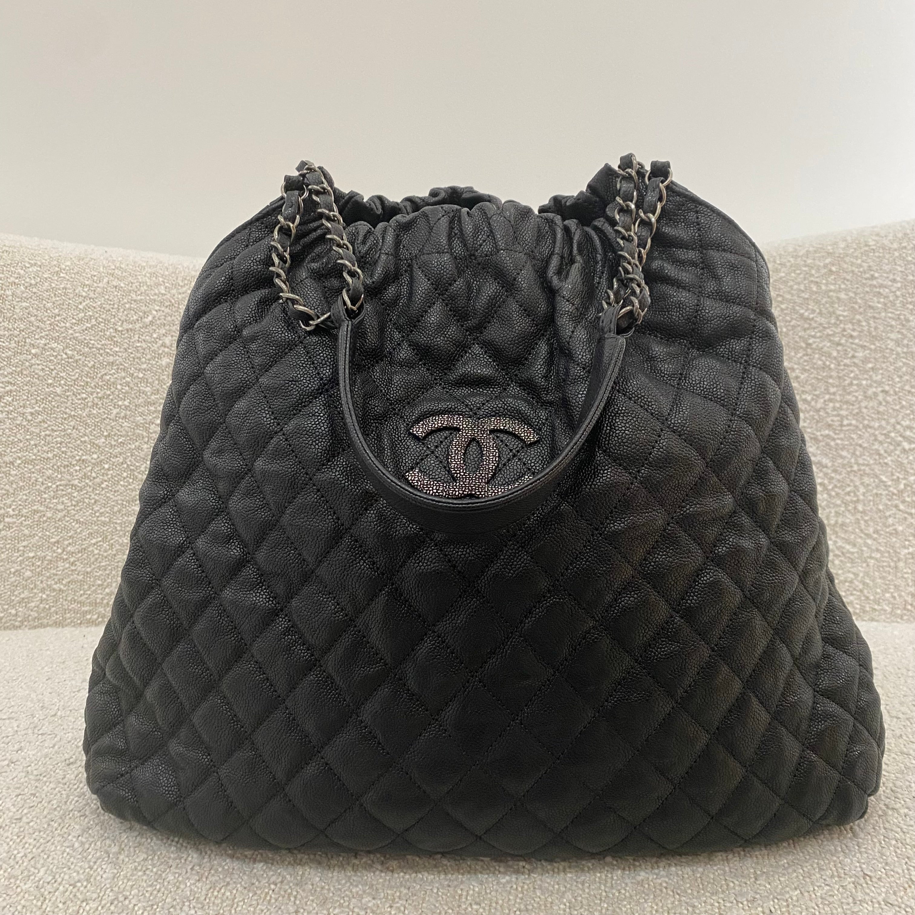 Pre-owned Chanel Black Caviar Elastic CC Tote