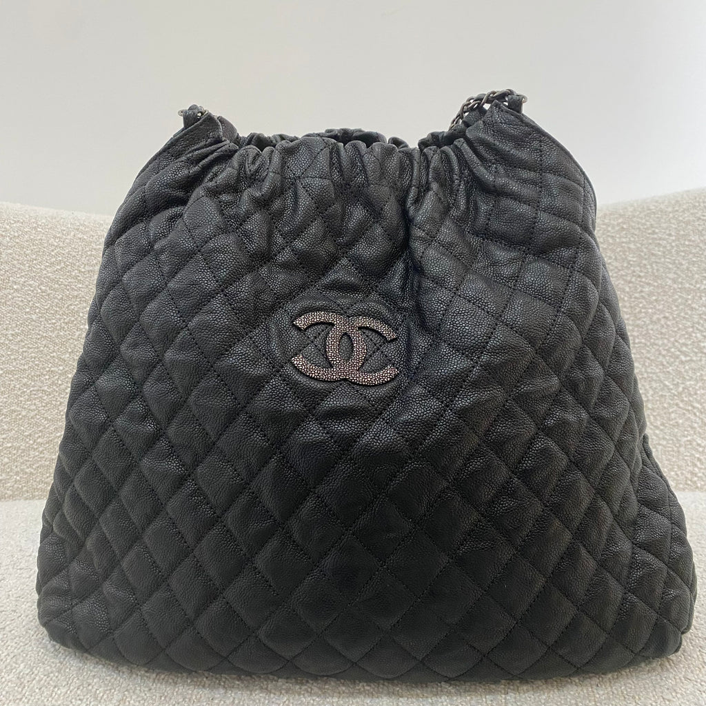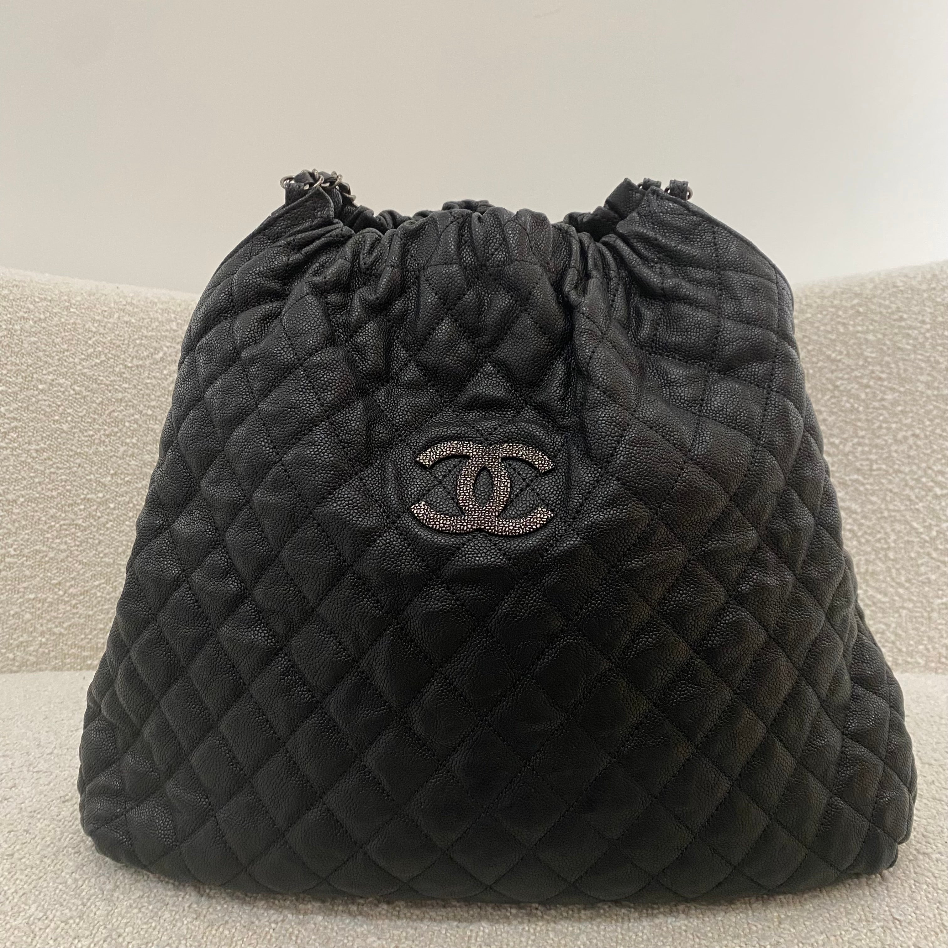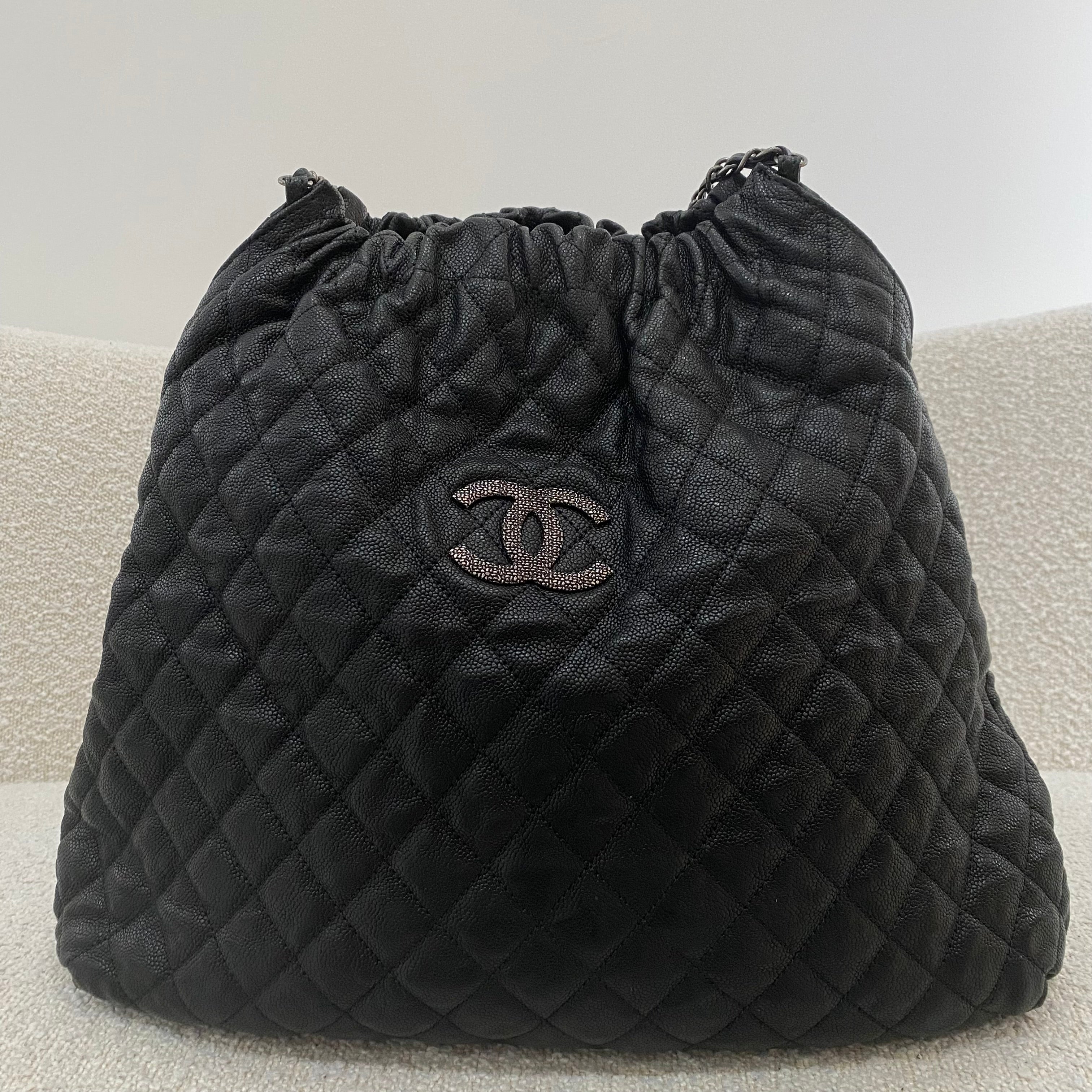 Pre-owned Chanel Black Caviar Elastic CC Tote