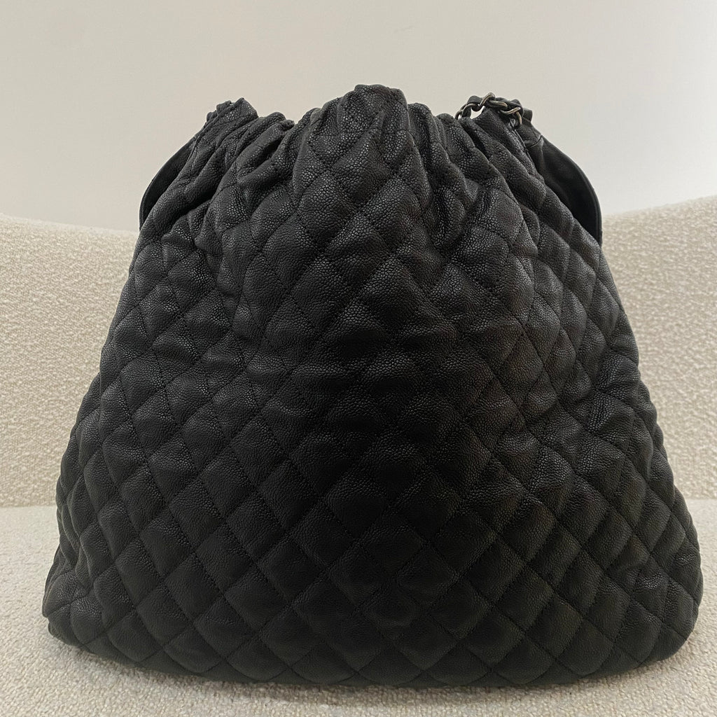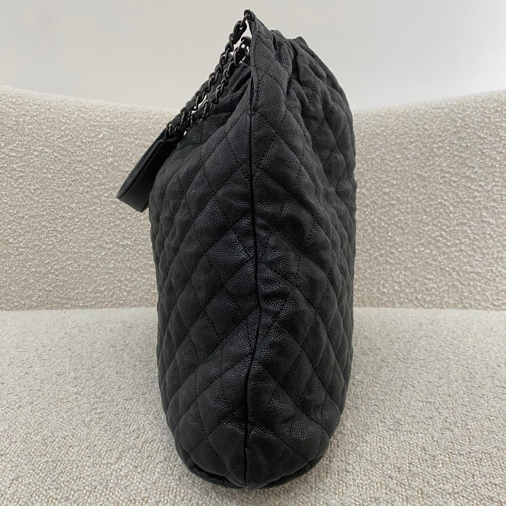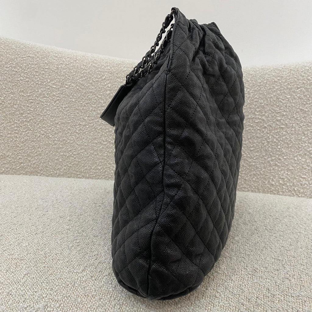 Black caviar leather. Ruthenium hardware. Approximately: Length: 16.5in Width: 3in Height: 16in Bag depth: 16in Handle drop: 7.75in.