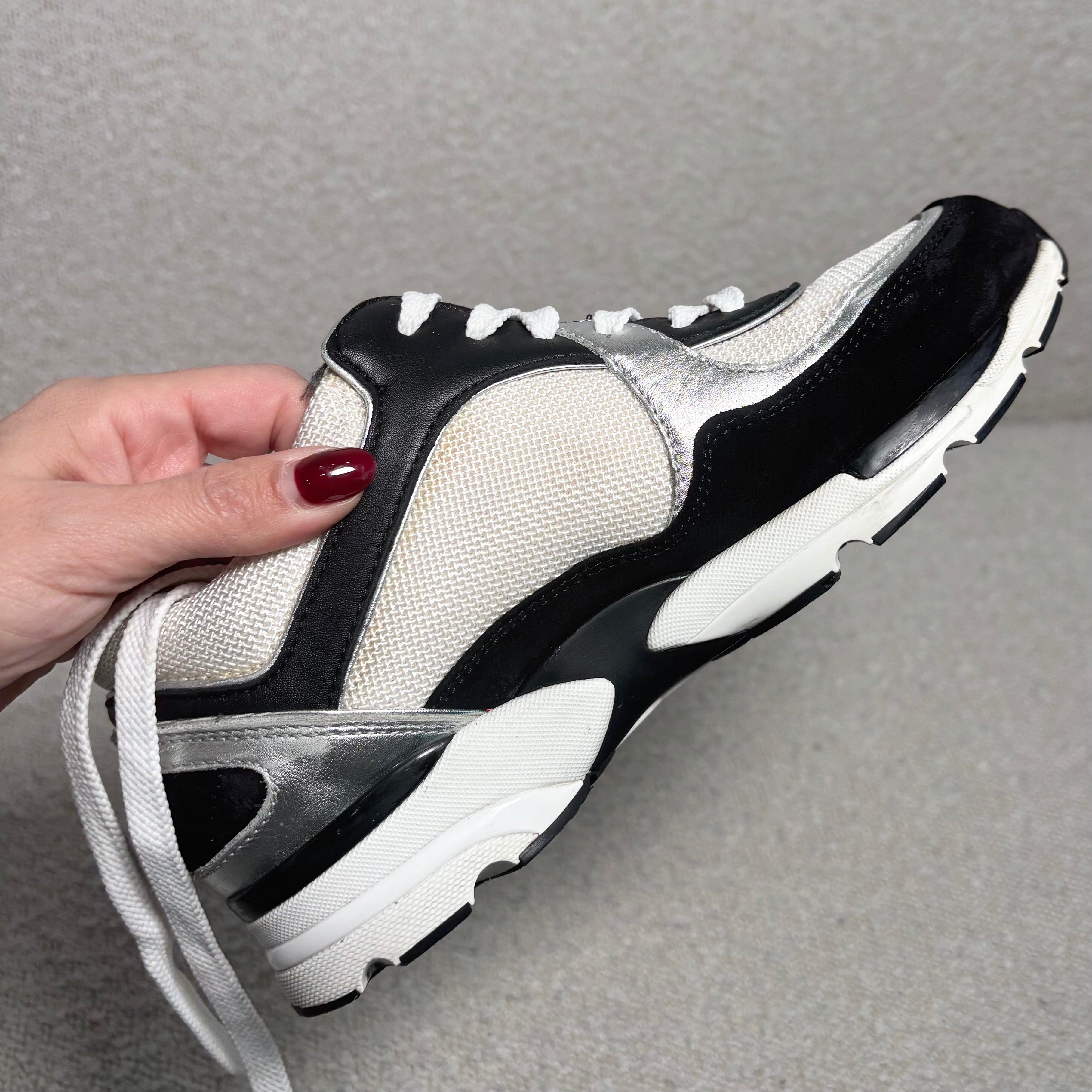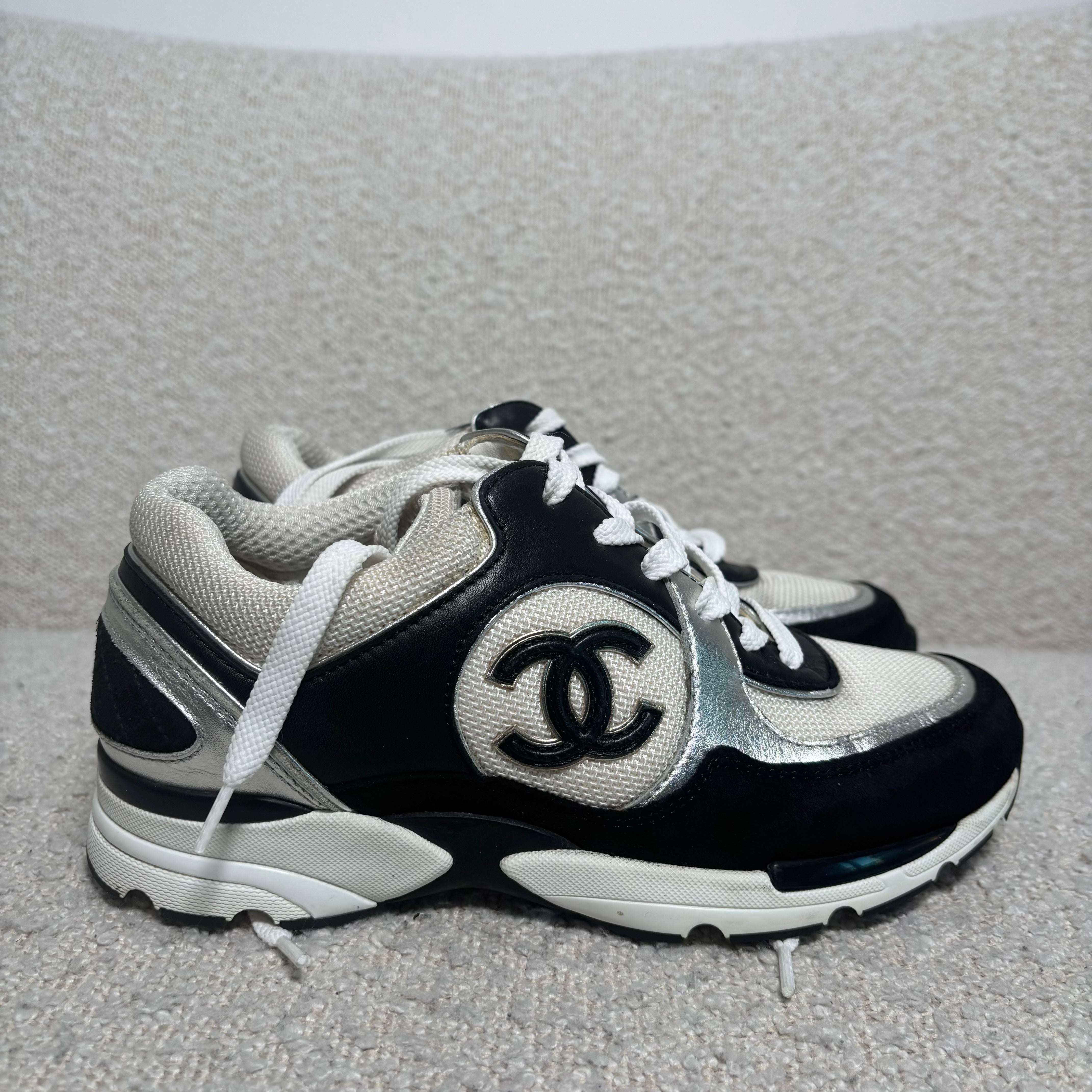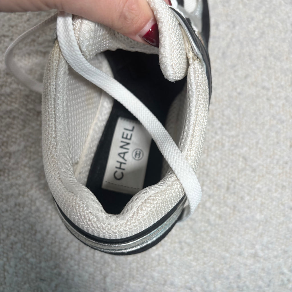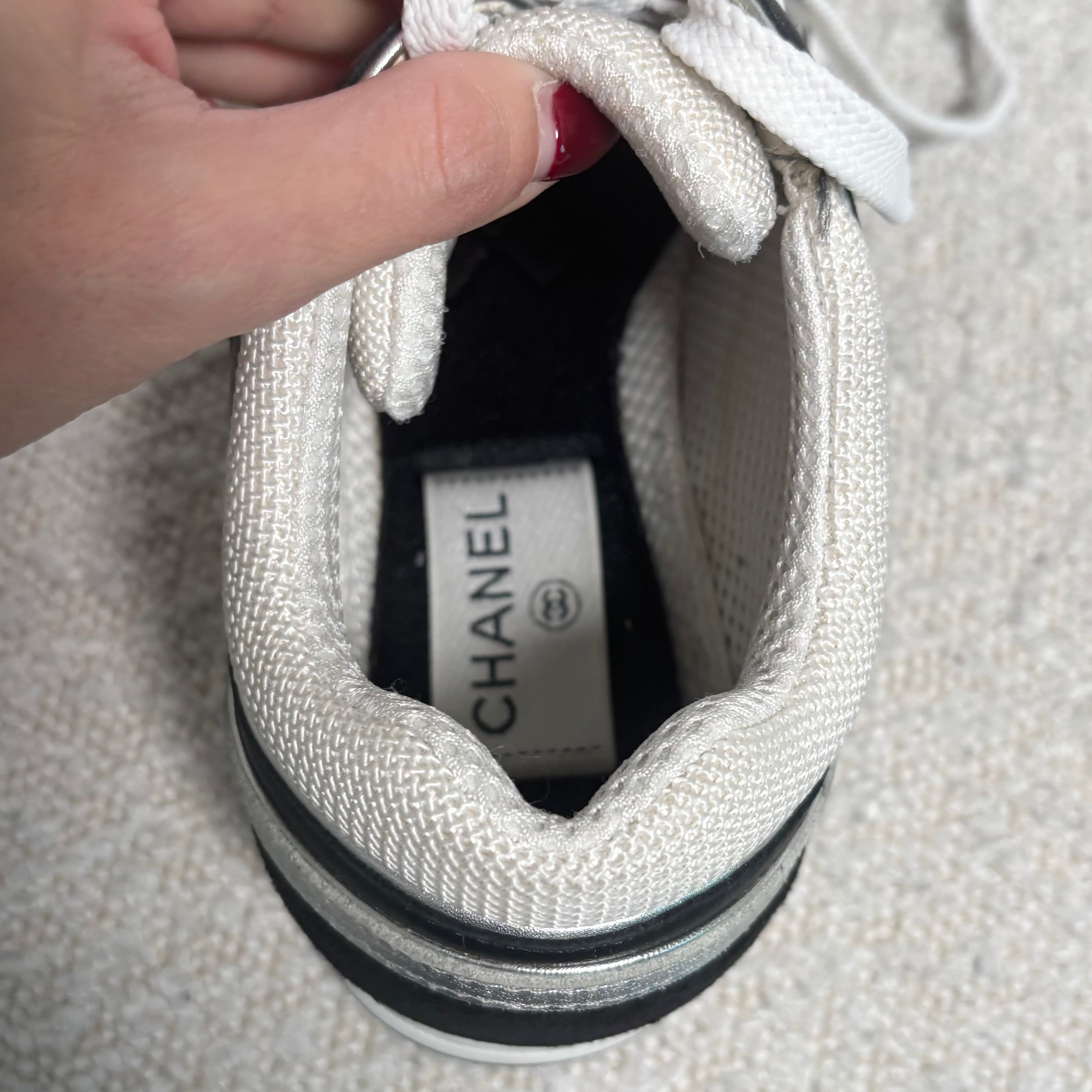 Pre-owned Chanel CC Sneakers White Black Silver 35.5