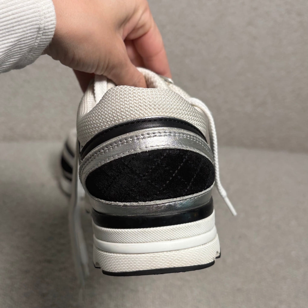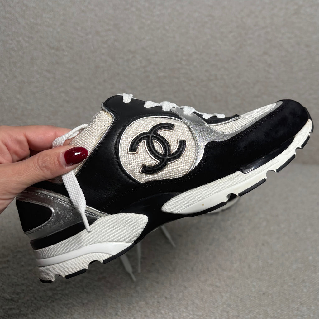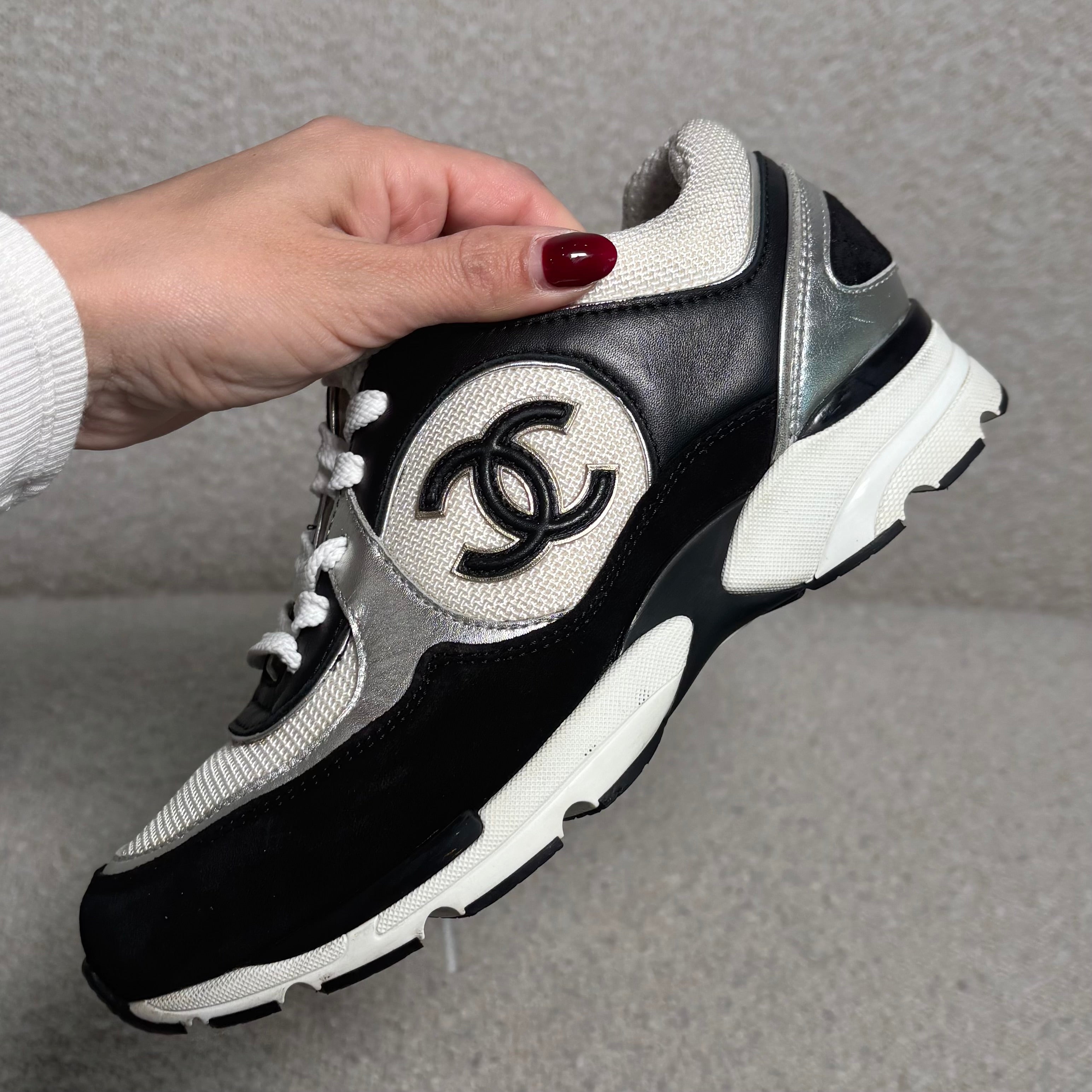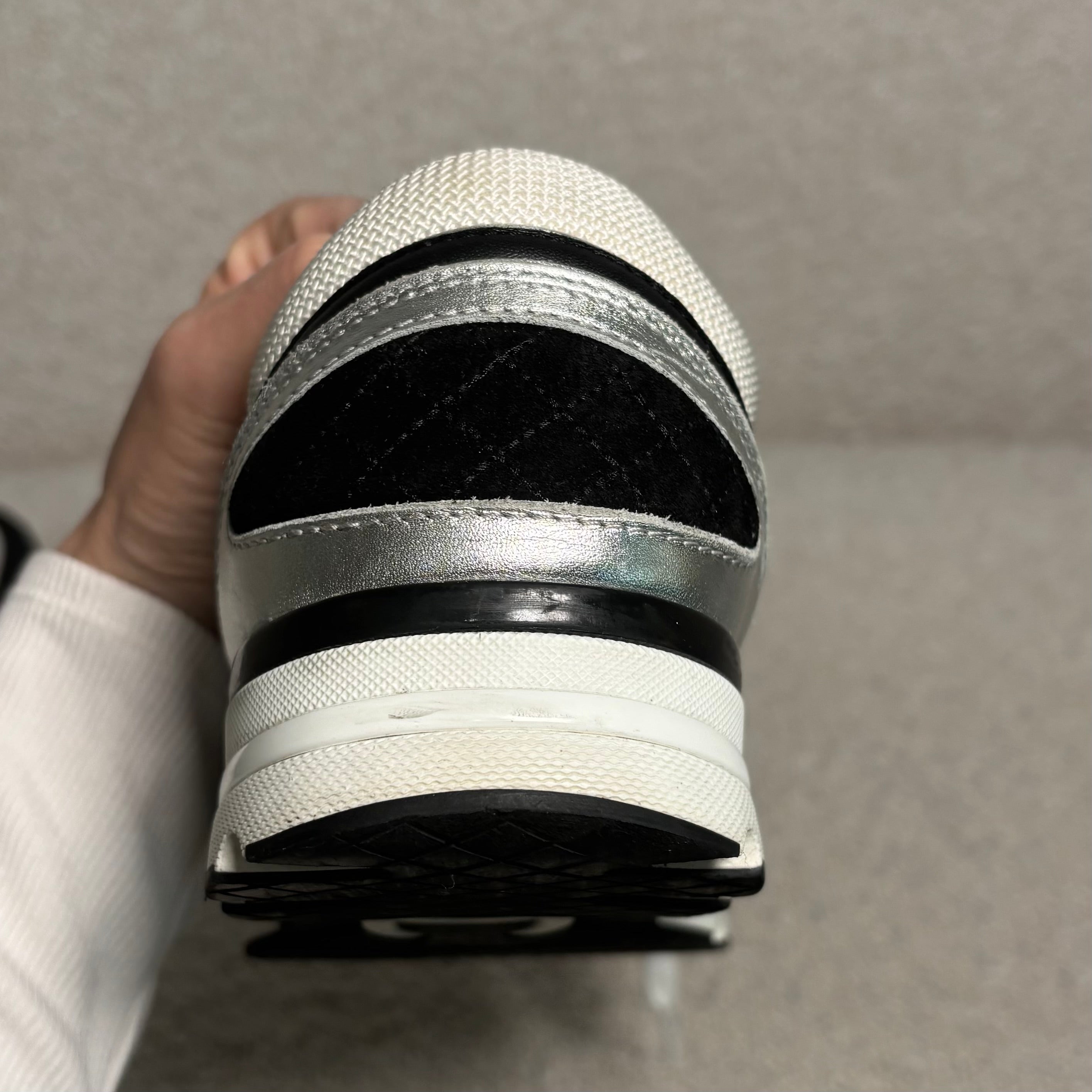 Pre-owned Chanel CC Sneakers White Black Silver 35.5