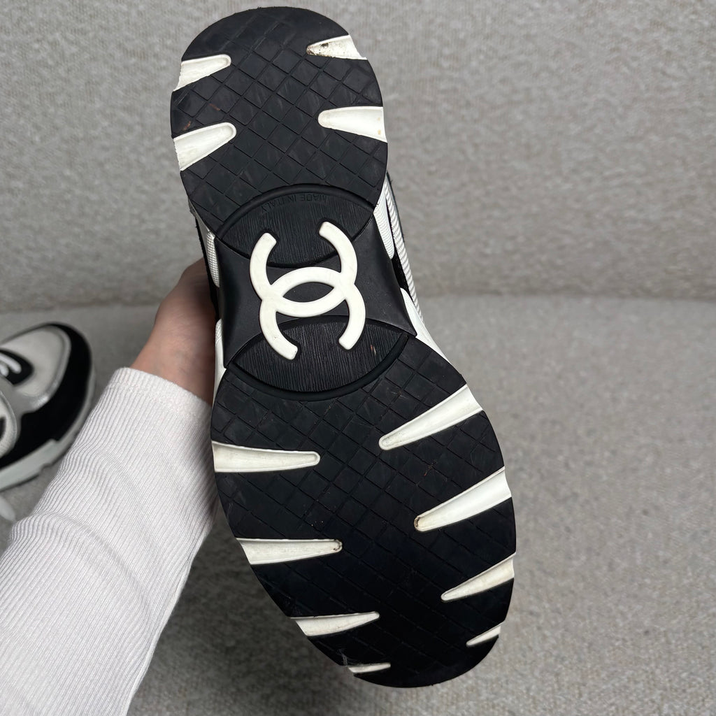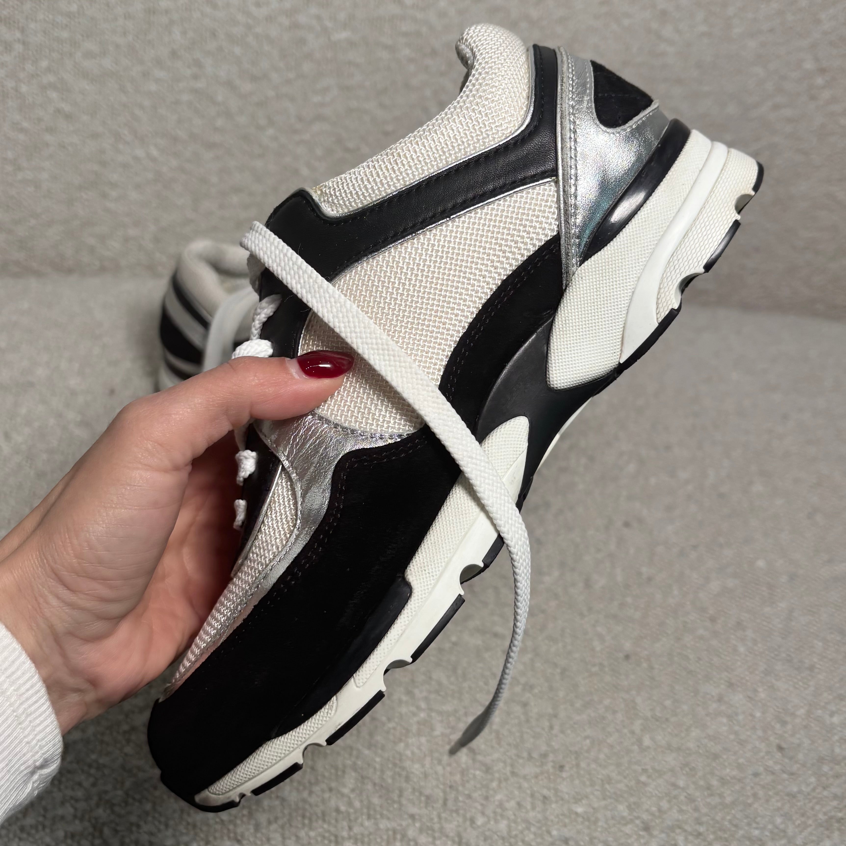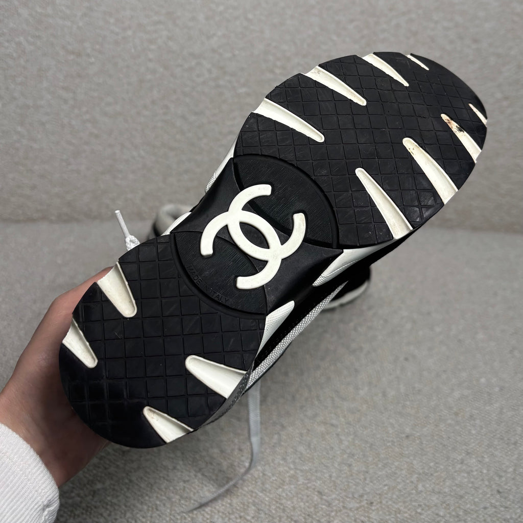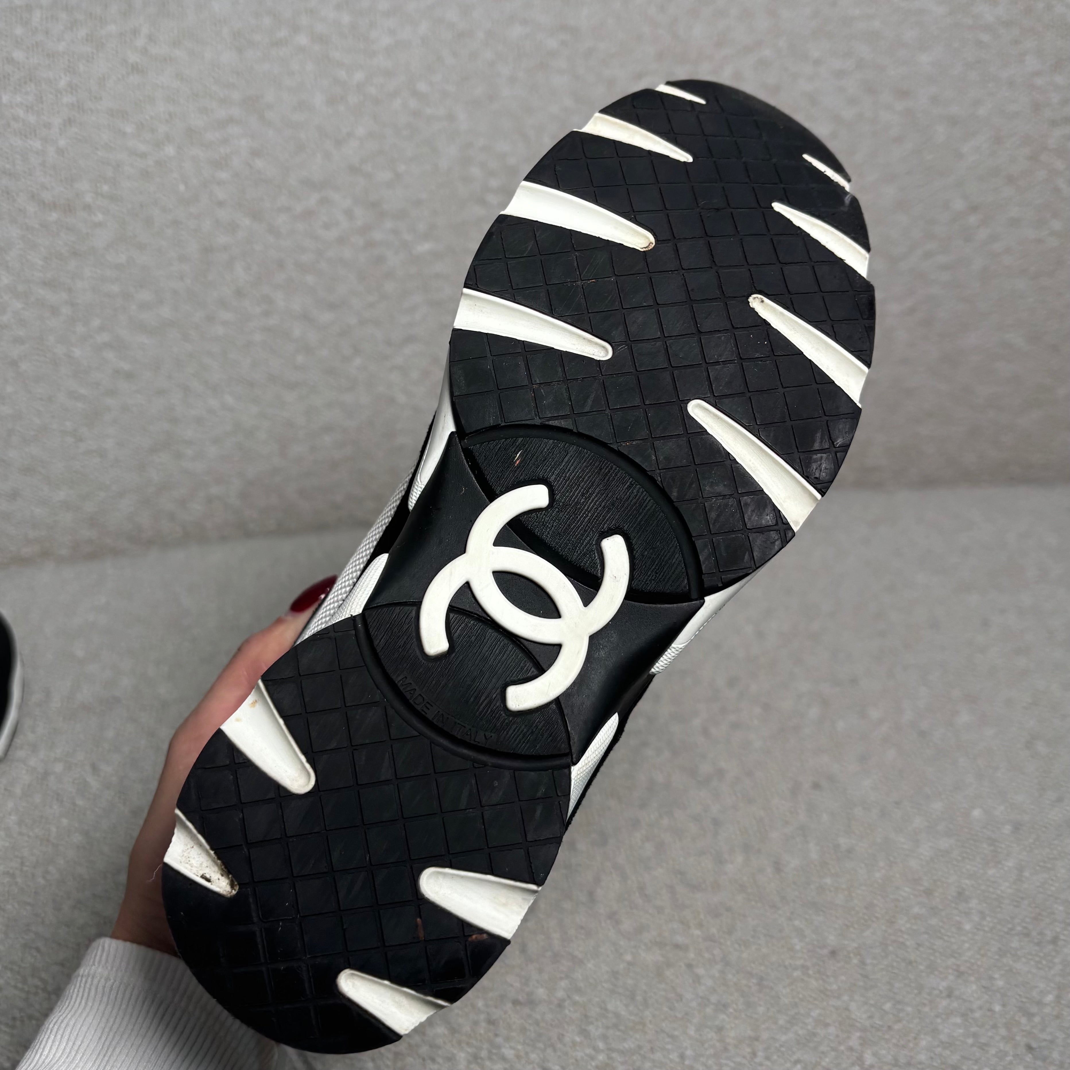 Pre-owned Chanel CC Sneakers White Black Silver 35.5