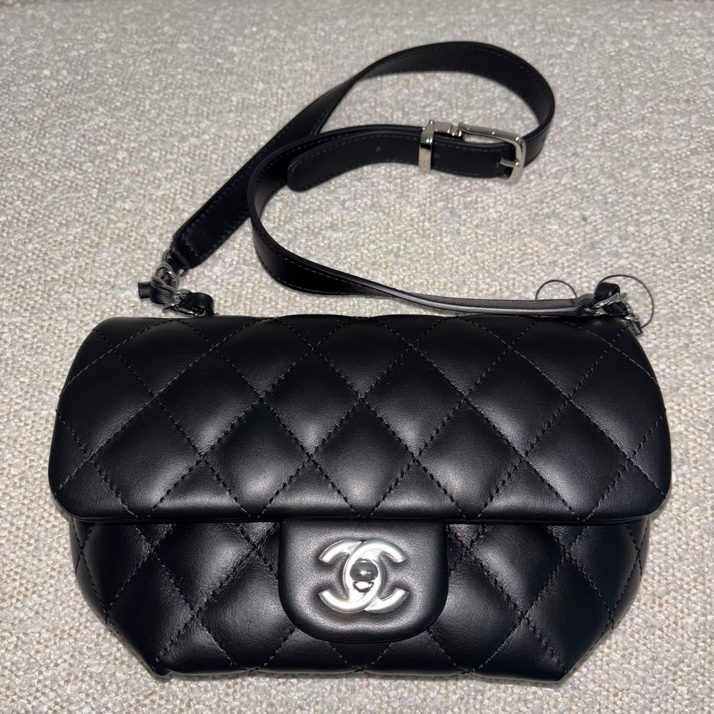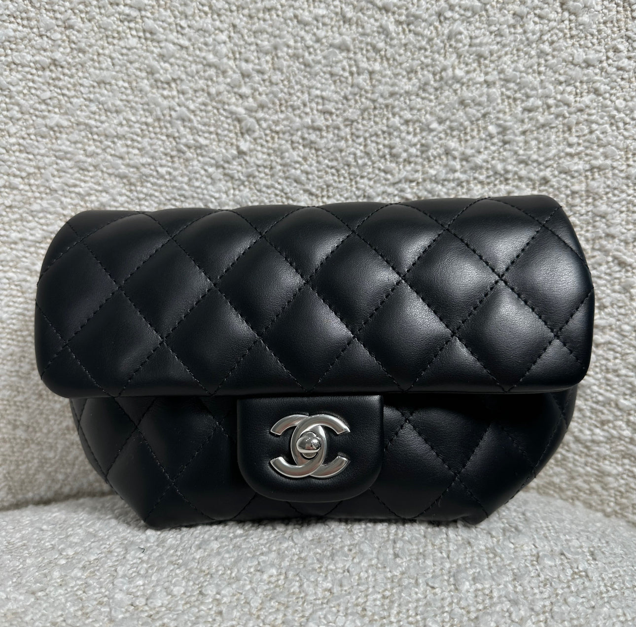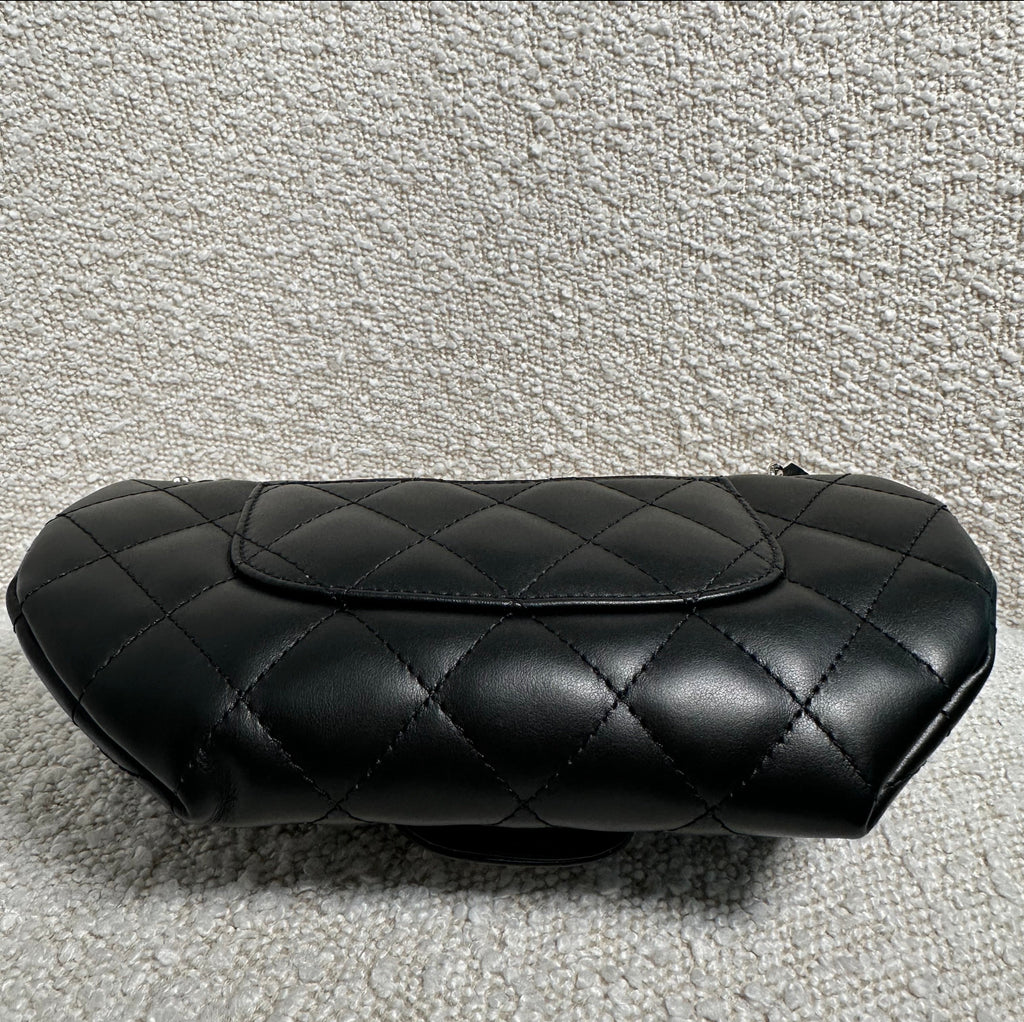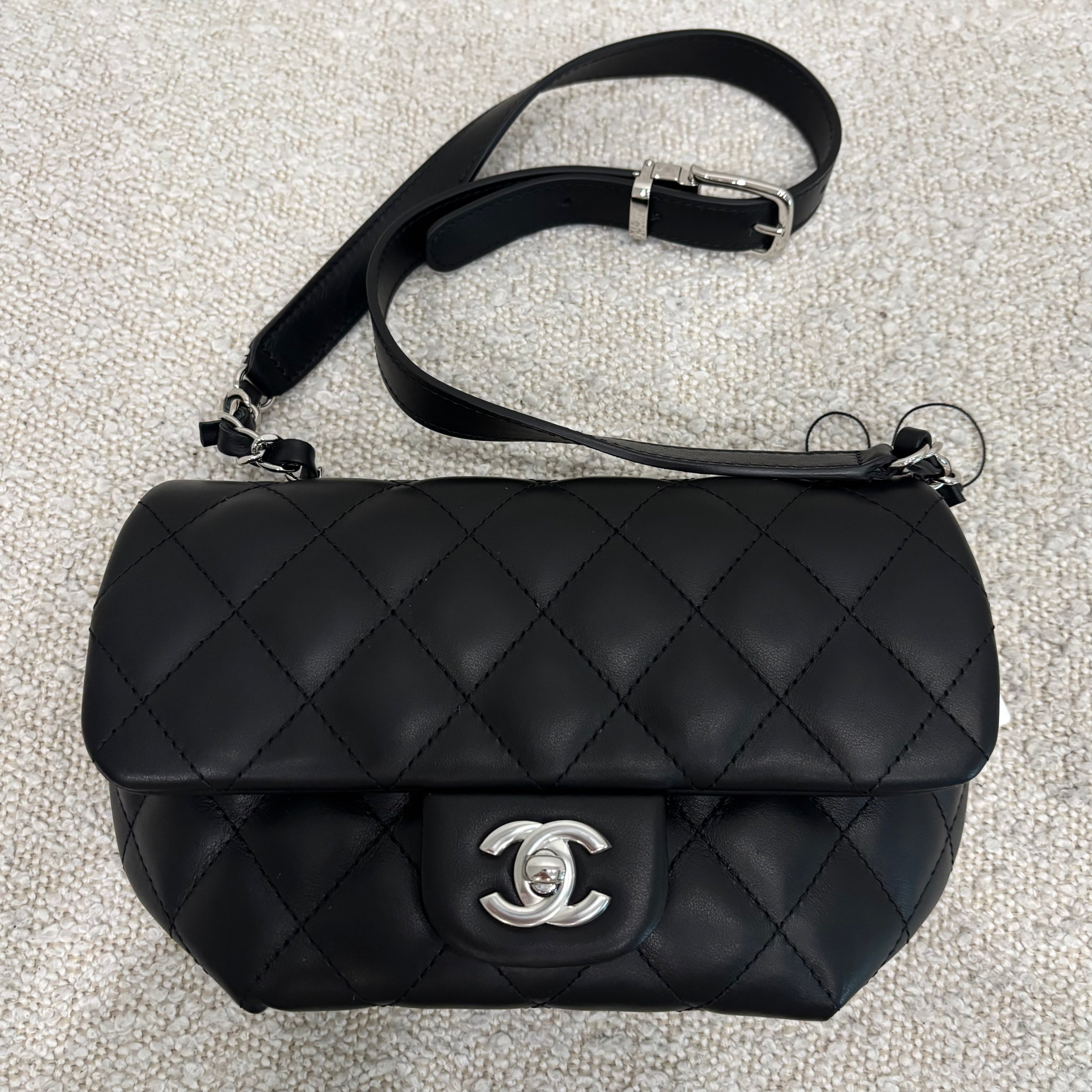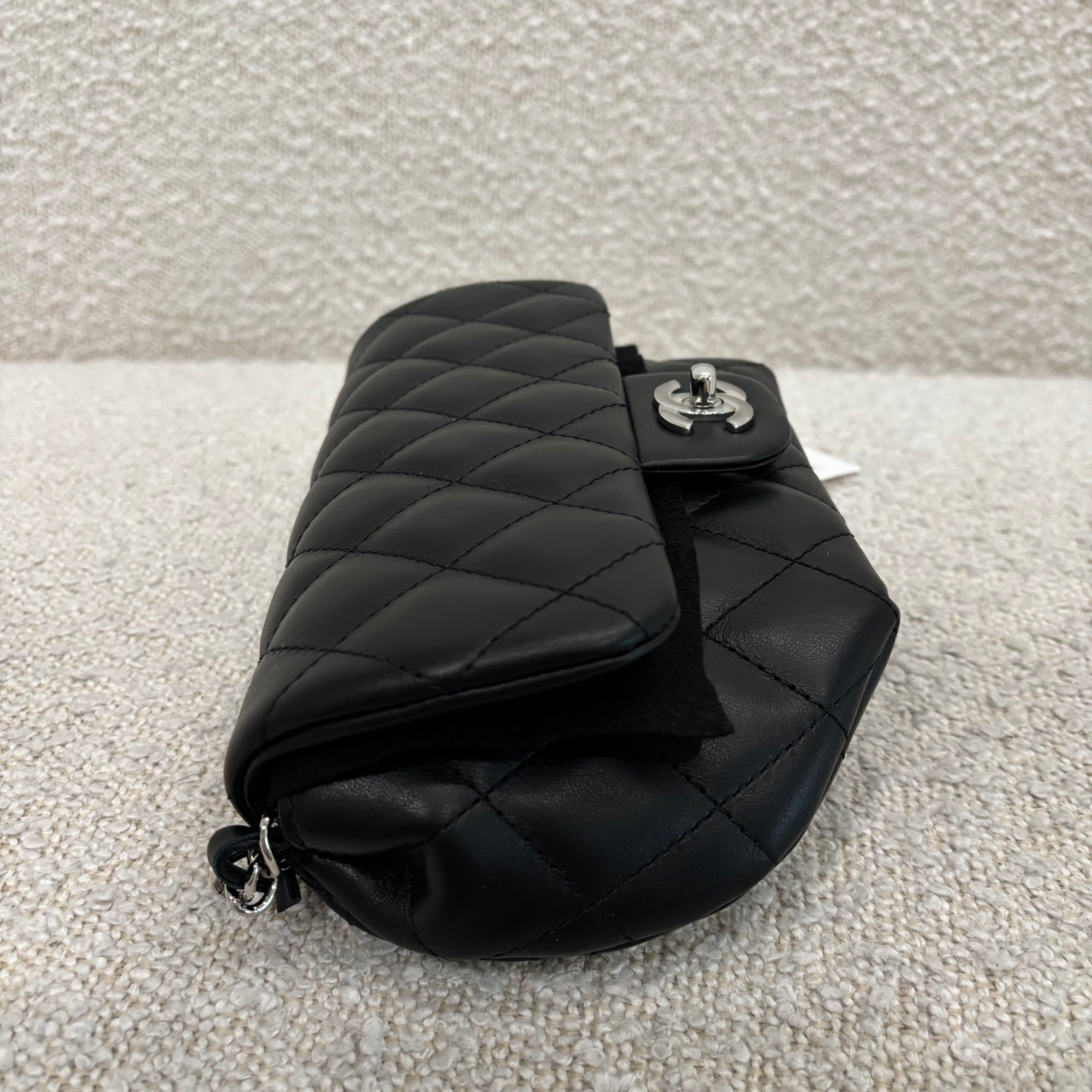 Pre-owned Chanel CC Turnlock Uniform Flap Belt Bag Black Lambskin
