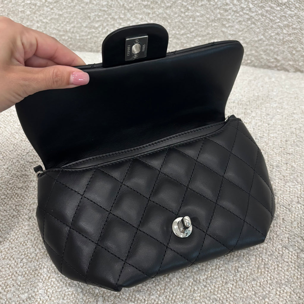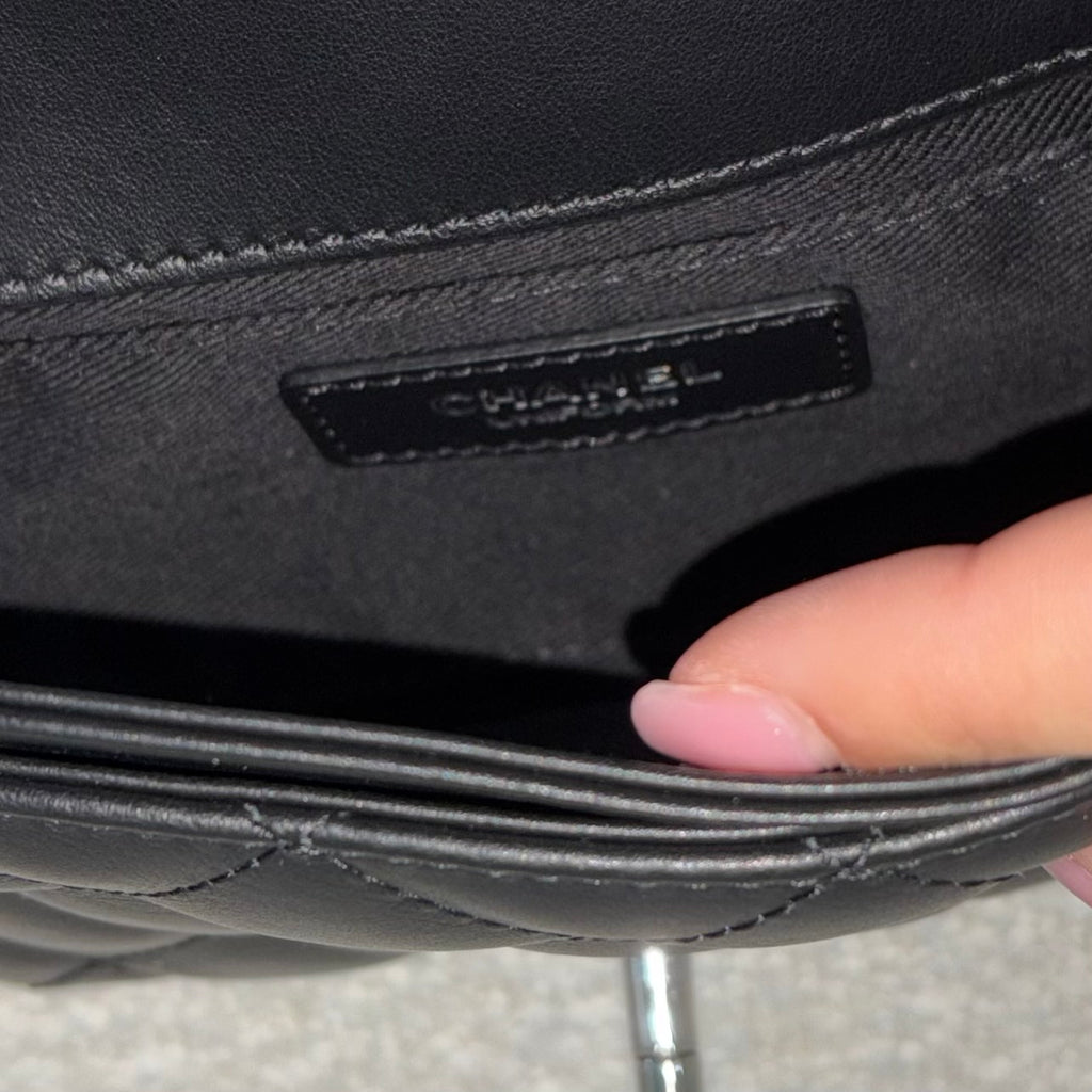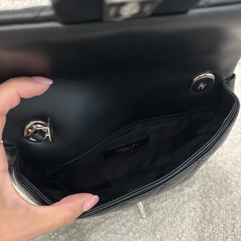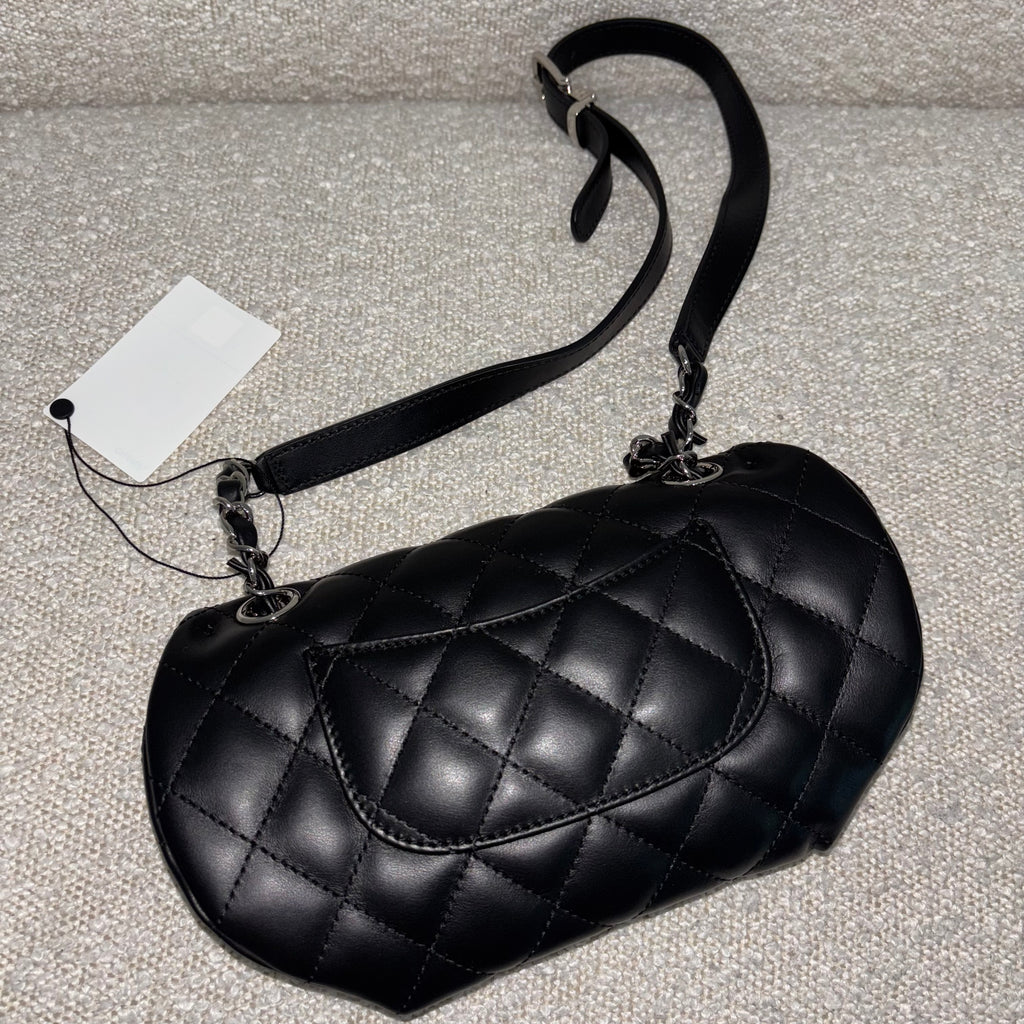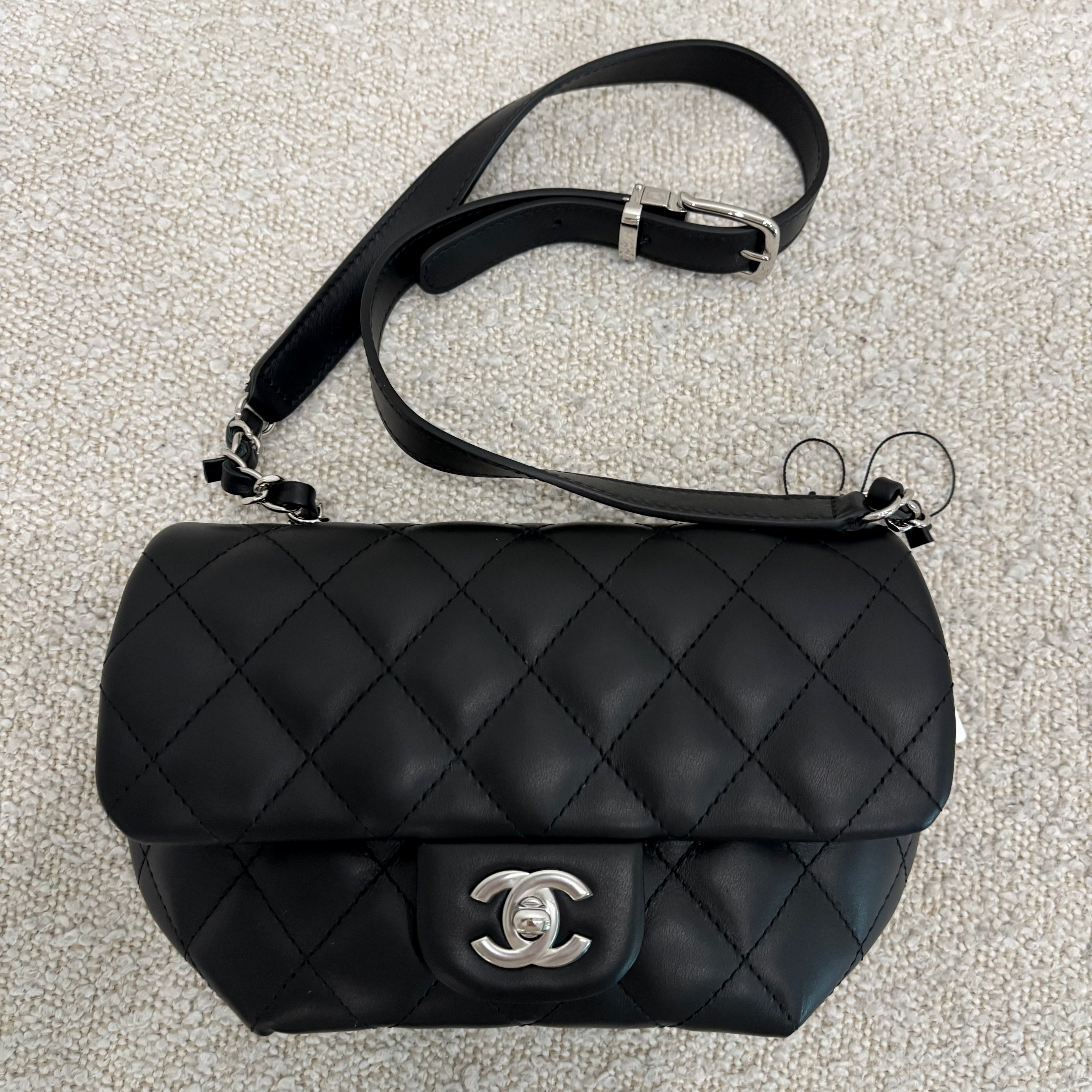 Pre-owned Chanel CC Turnlock Uniform Flap Belt Bag Black Lambskin