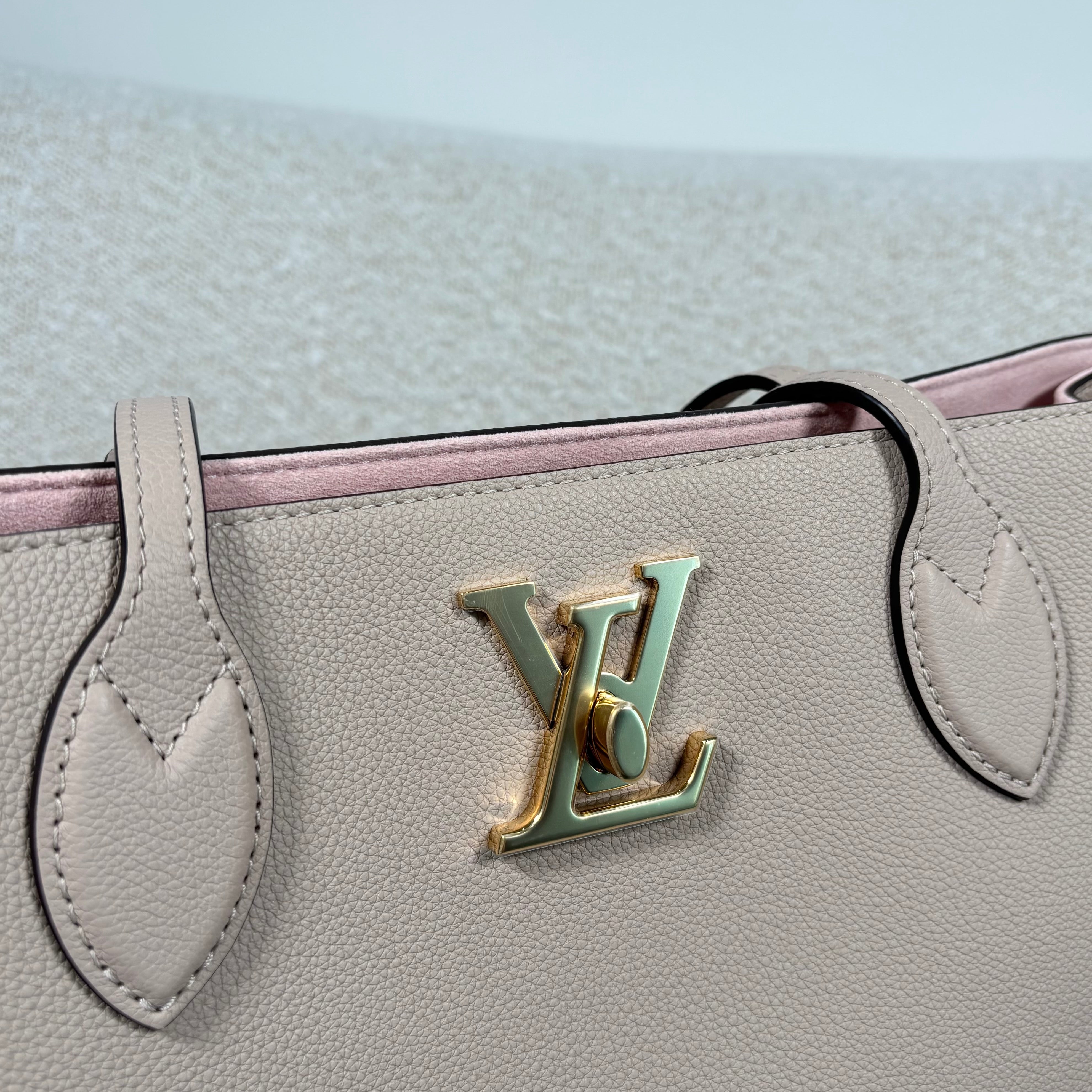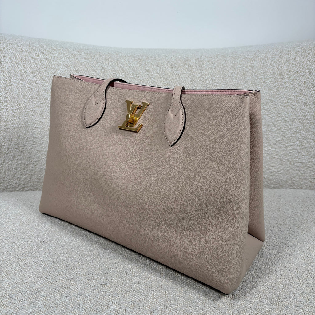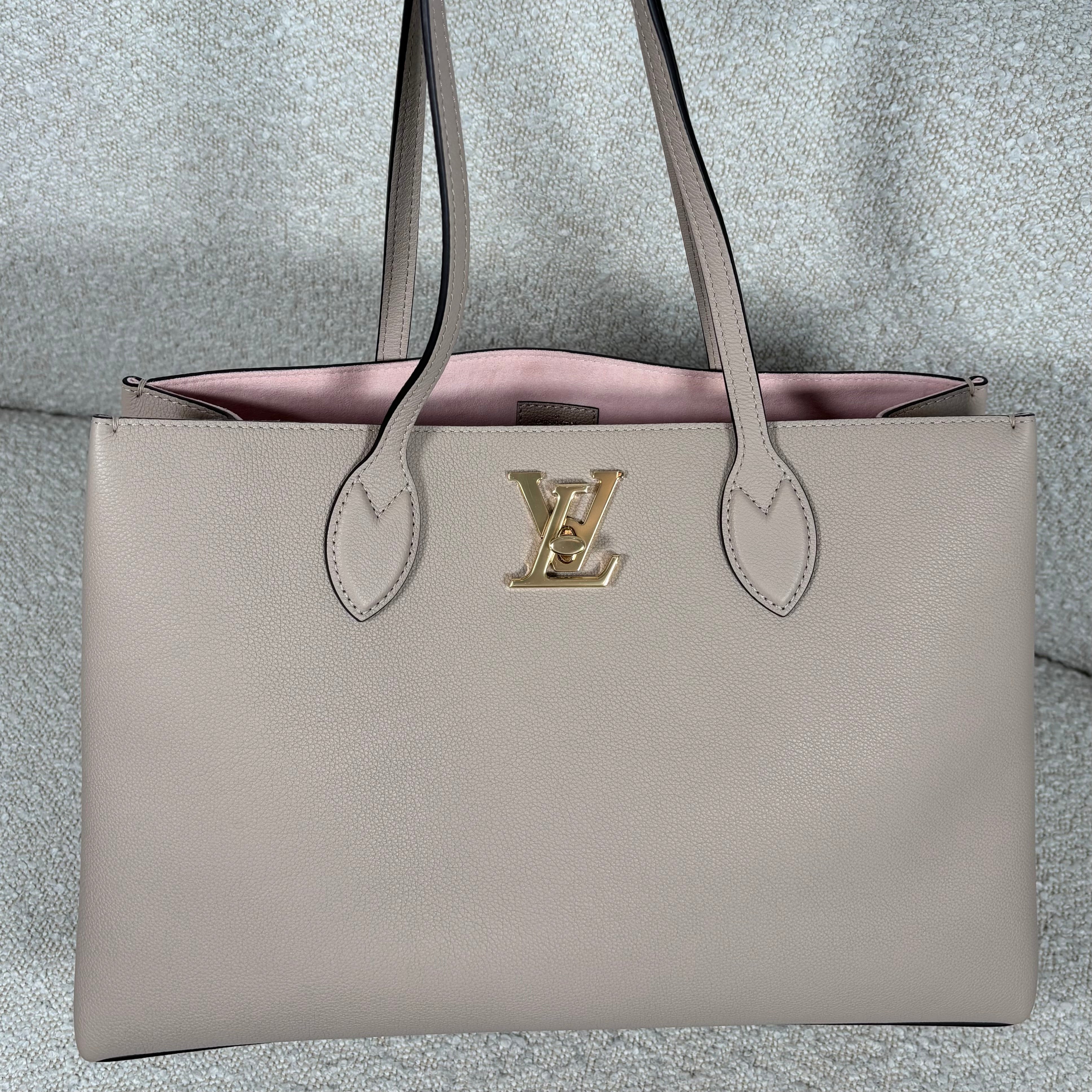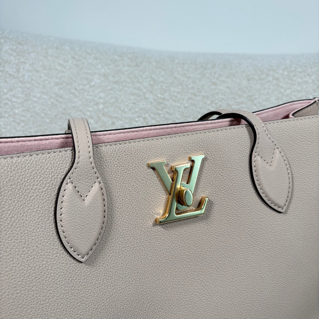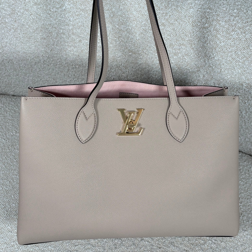 PRE-OWNED LOUIS VUITTON GREIGE GRAINED CALFSKIN LOCKME SHOPPER