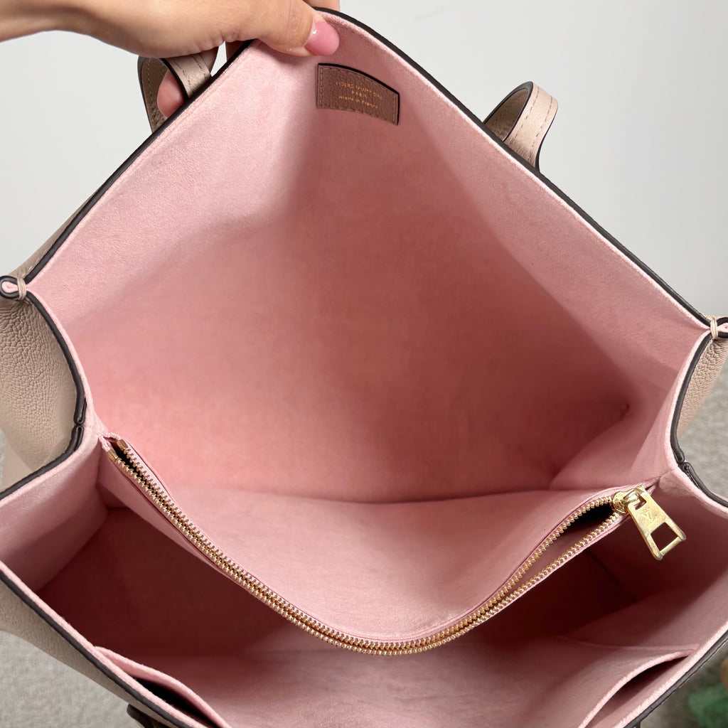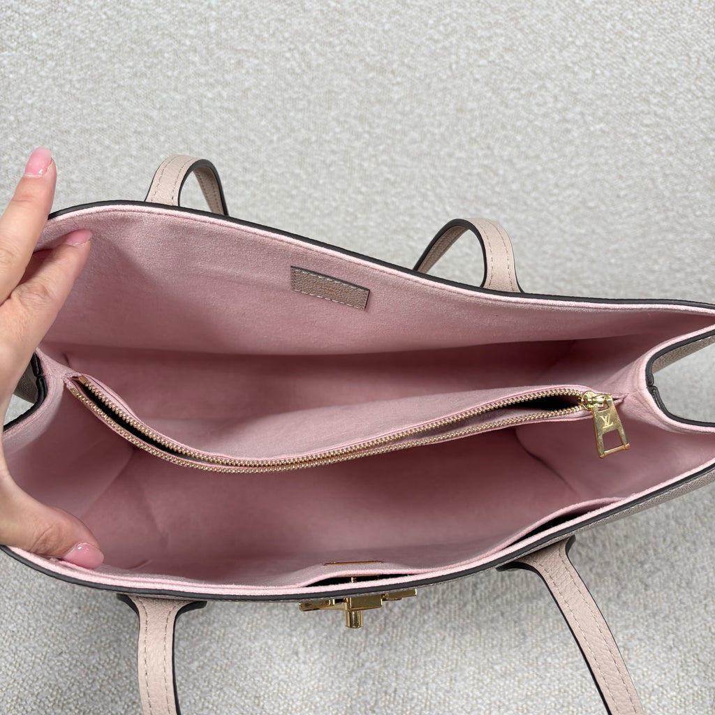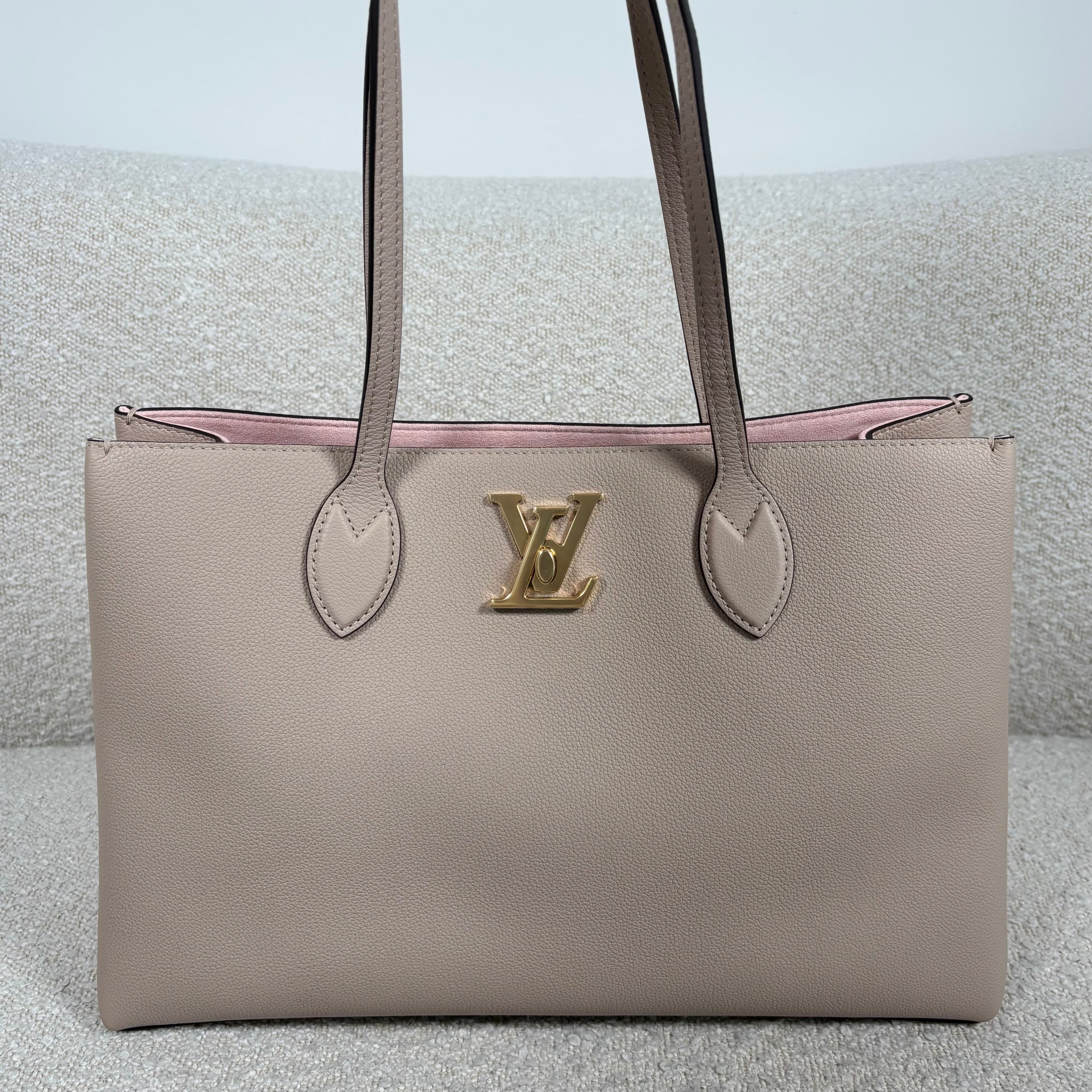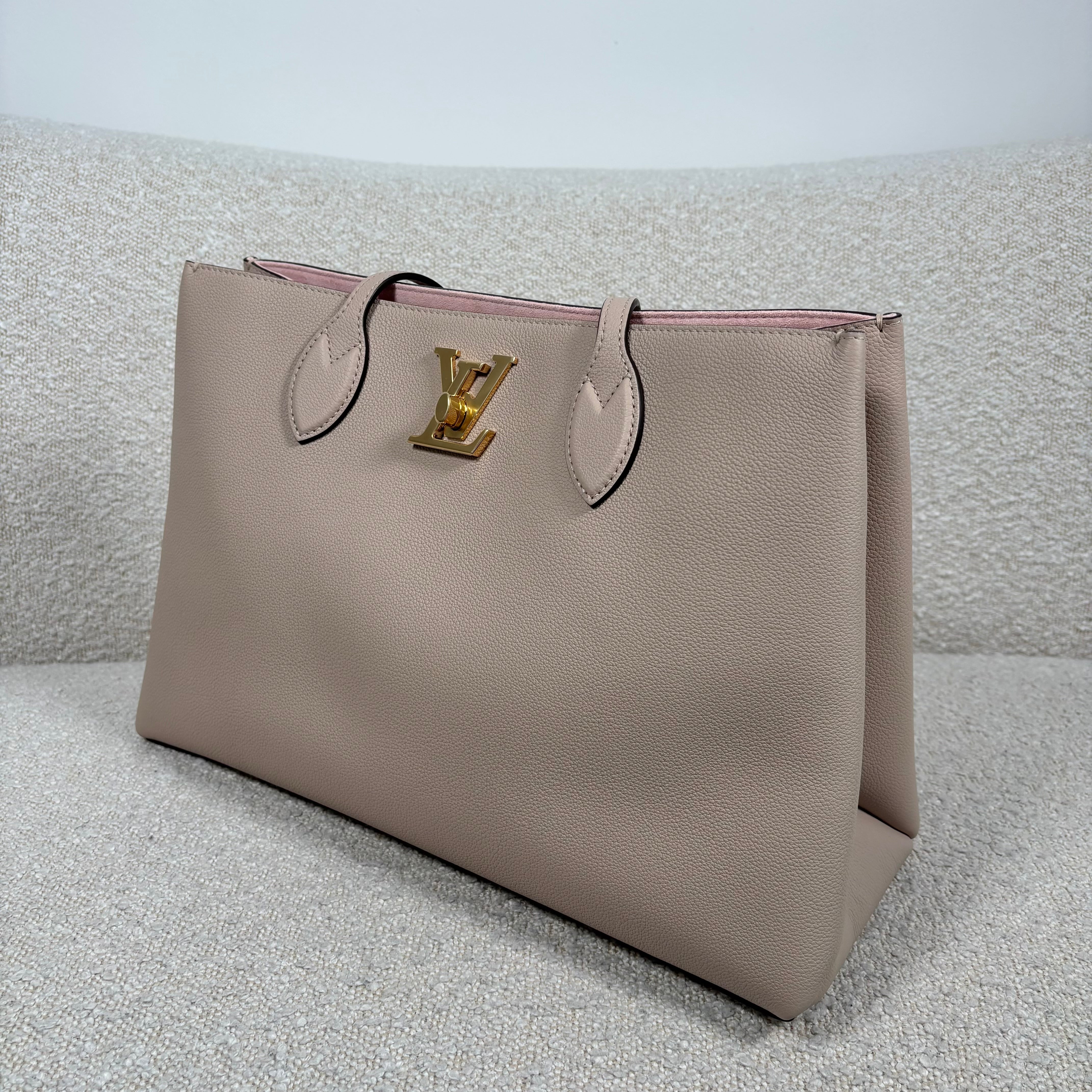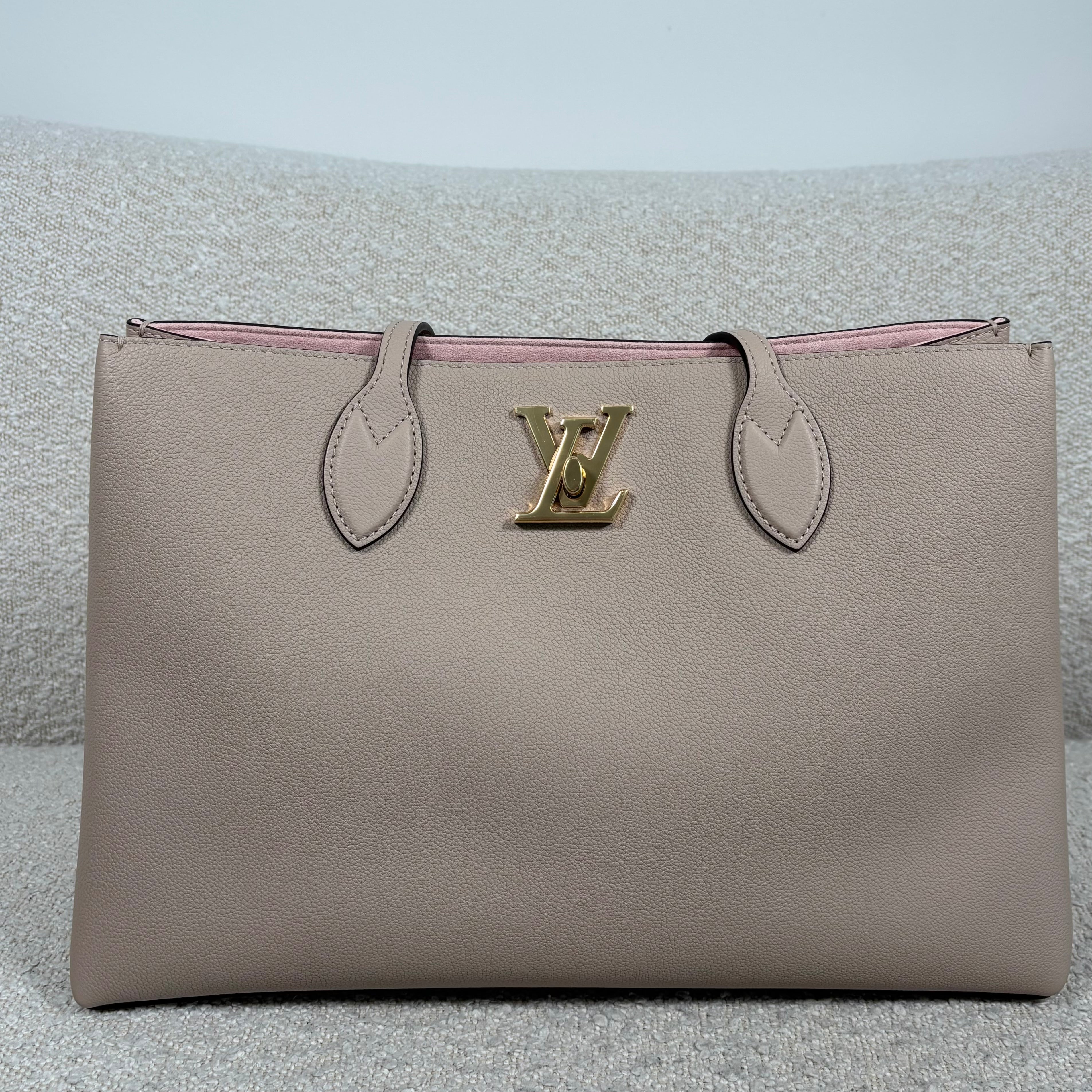 PRE-OWNED LOUIS VUITTON GREIGE GRAINED CALFSKIN LOCKME SHOPPER