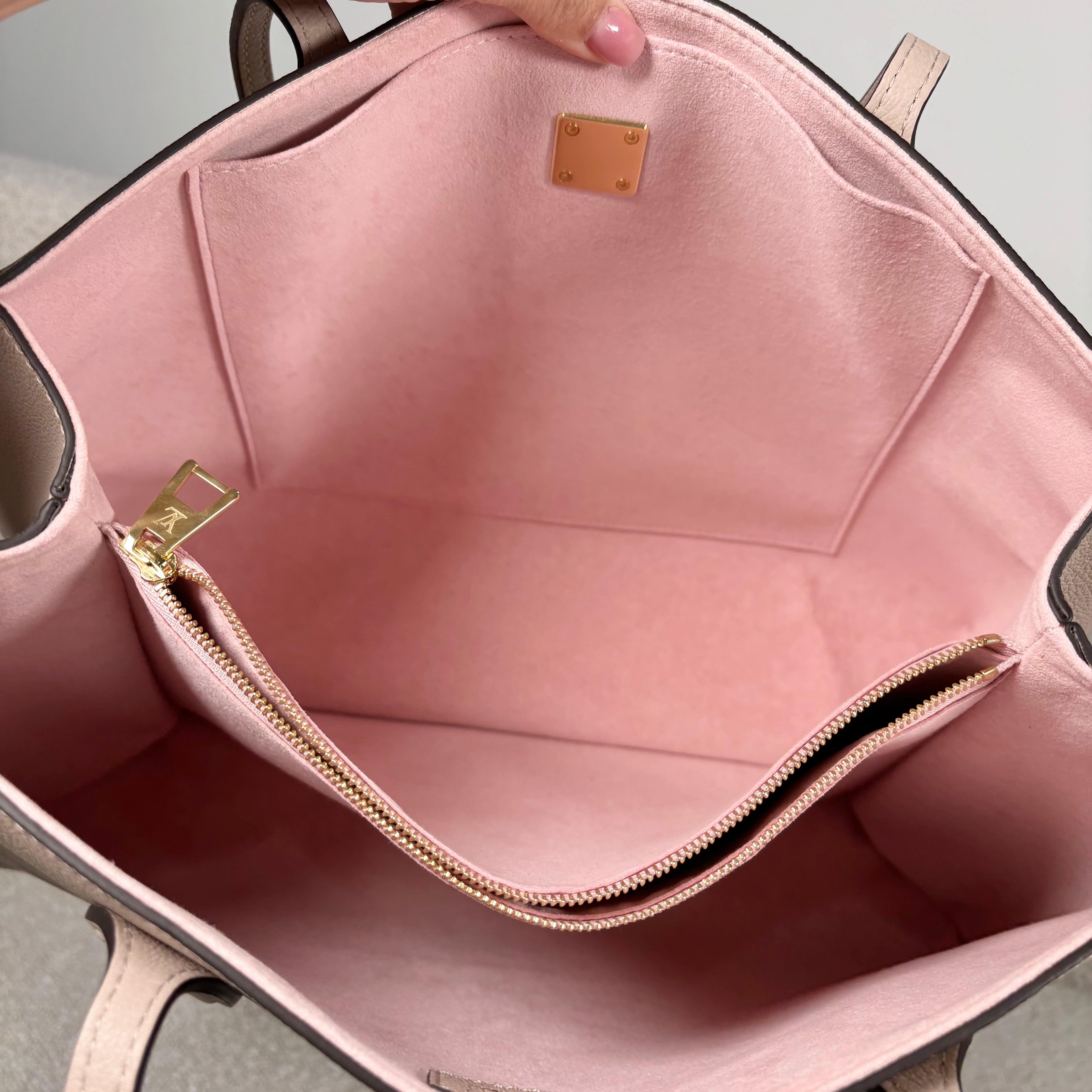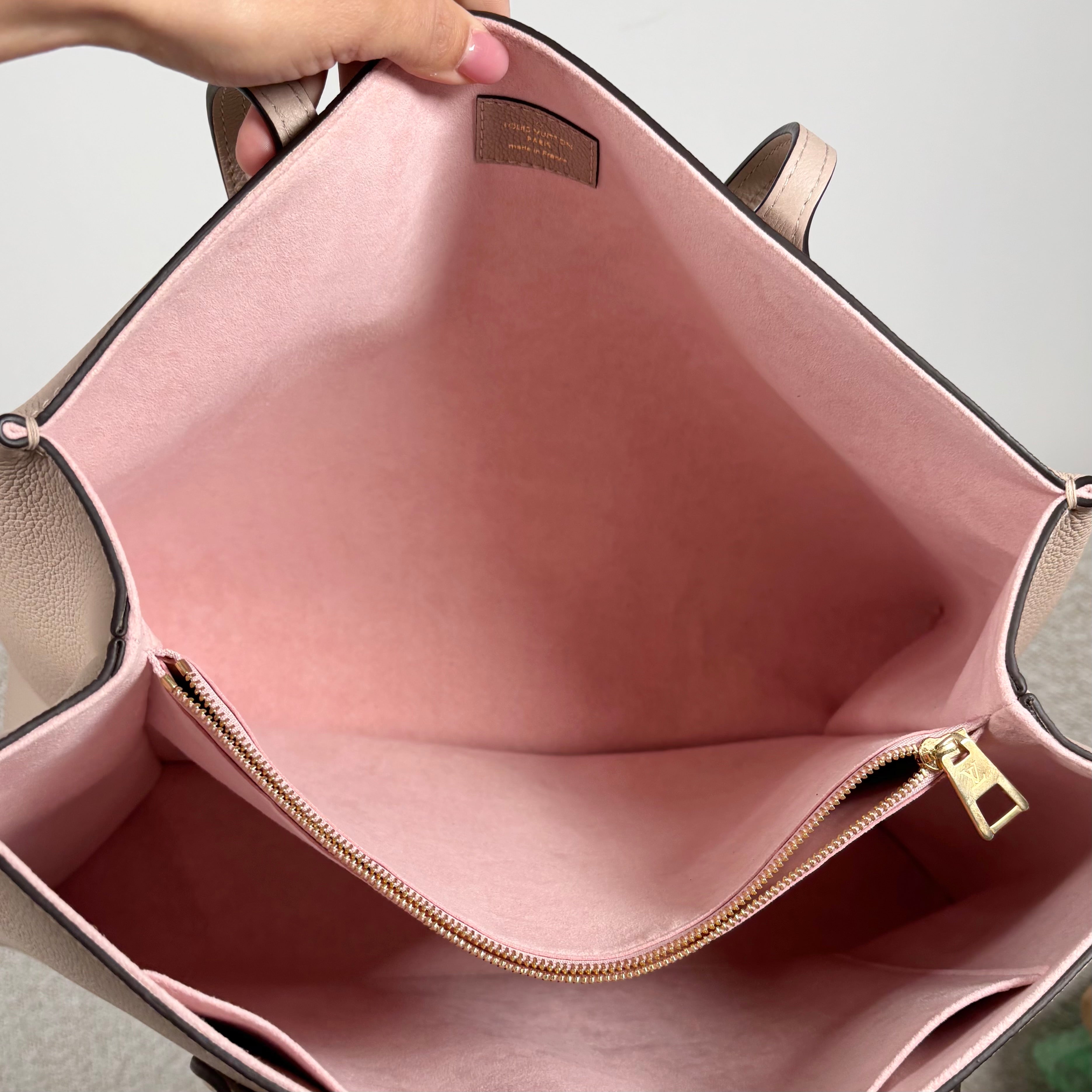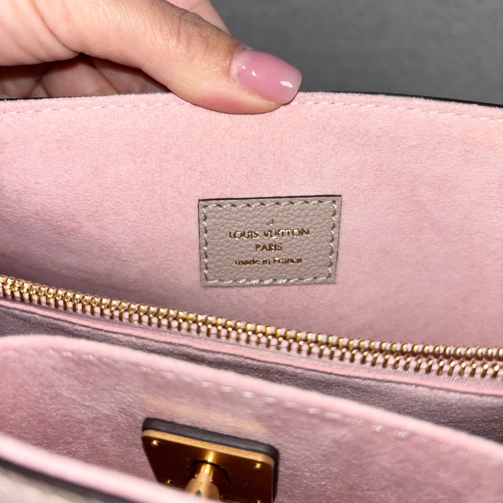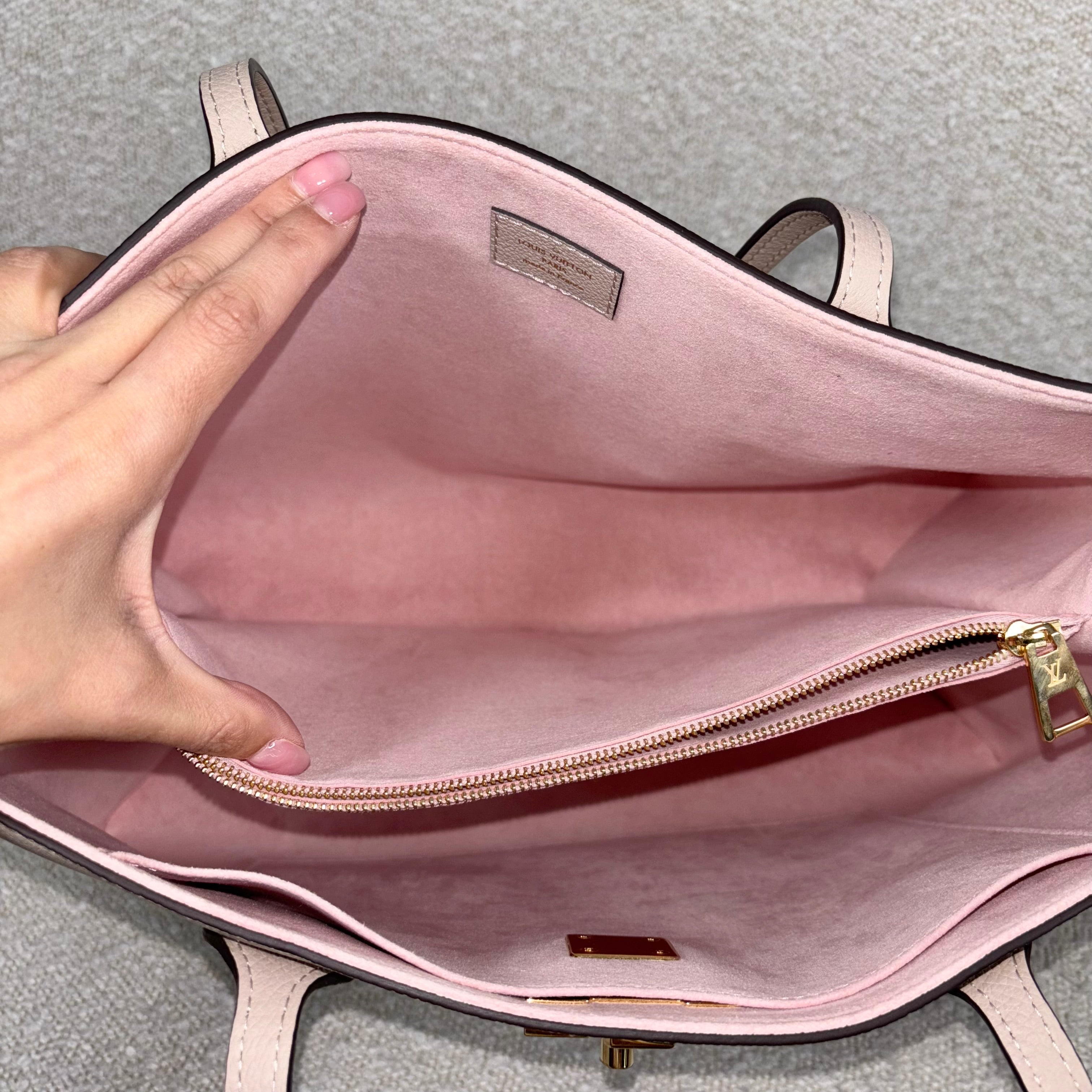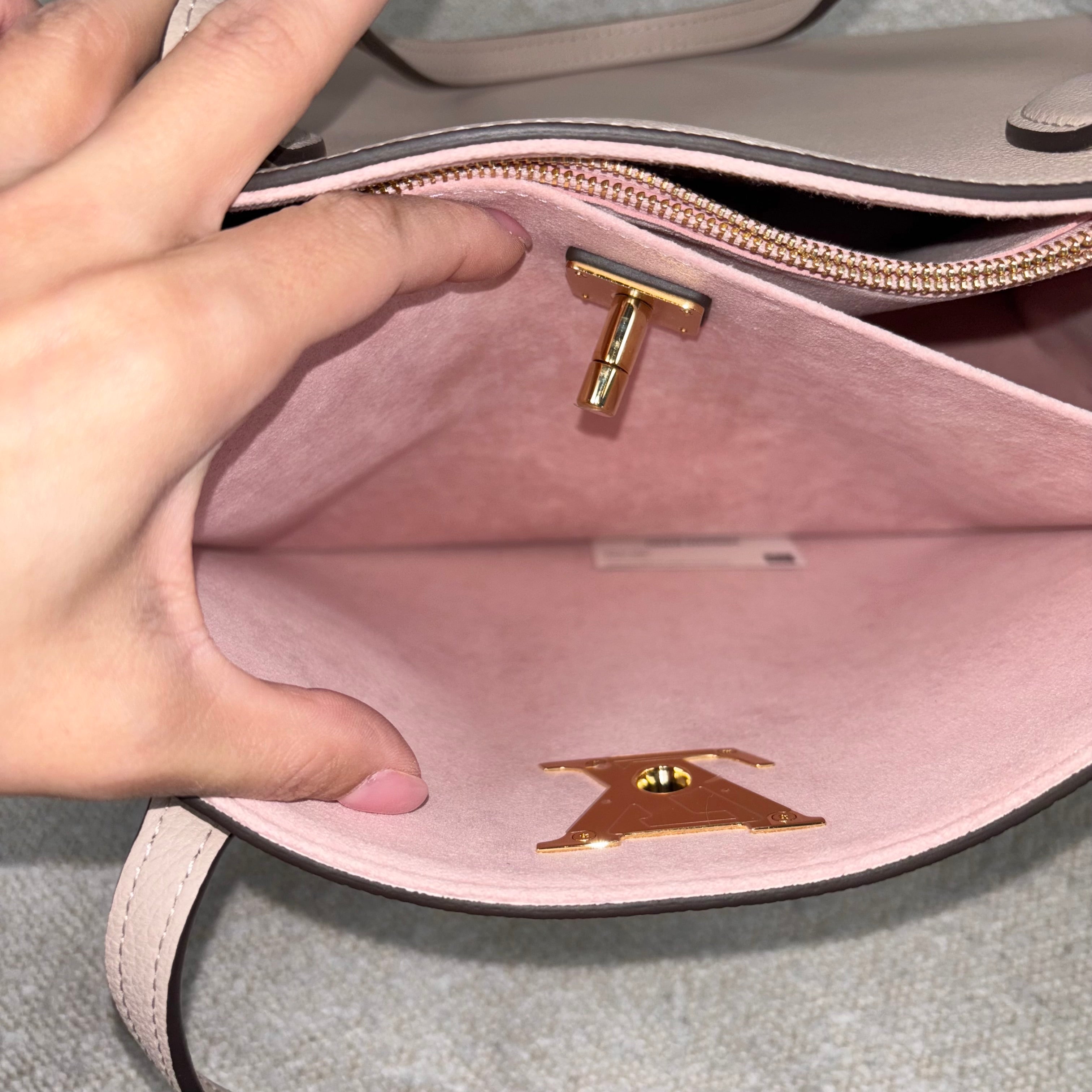 PRE-OWNED LOUIS VUITTON GREIGE GRAINED CALFSKIN LOCKME SHOPPER