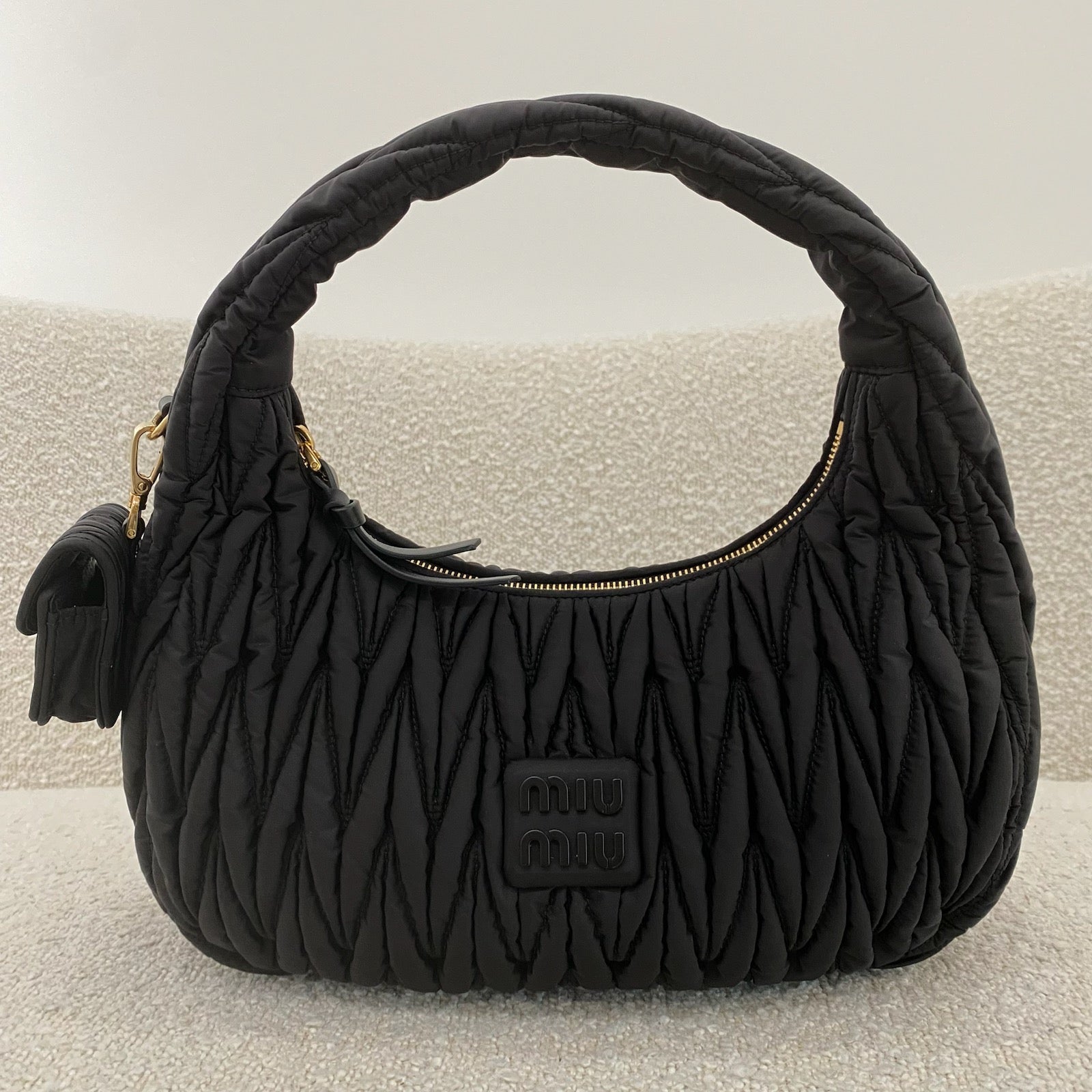 Pre-owned MIU MIU Matelassé Nylon Shoulder Bag Black
