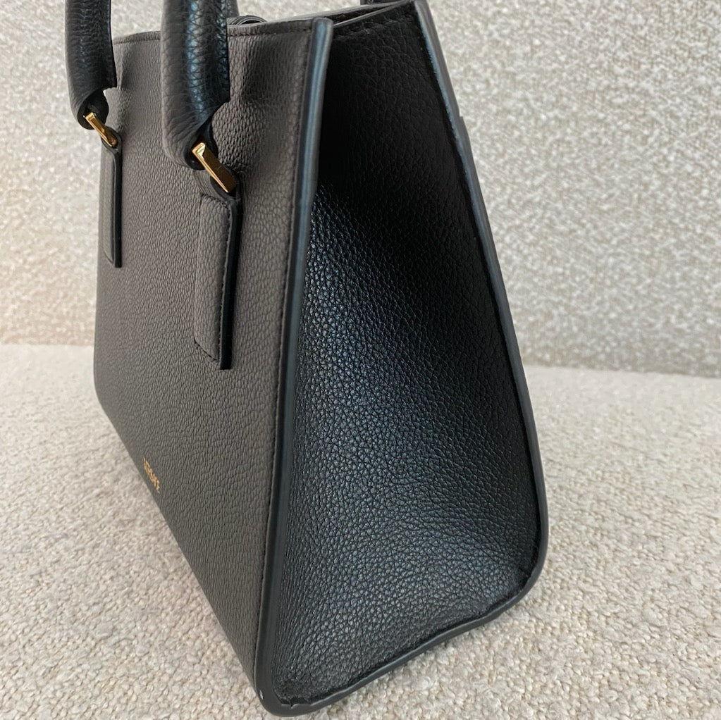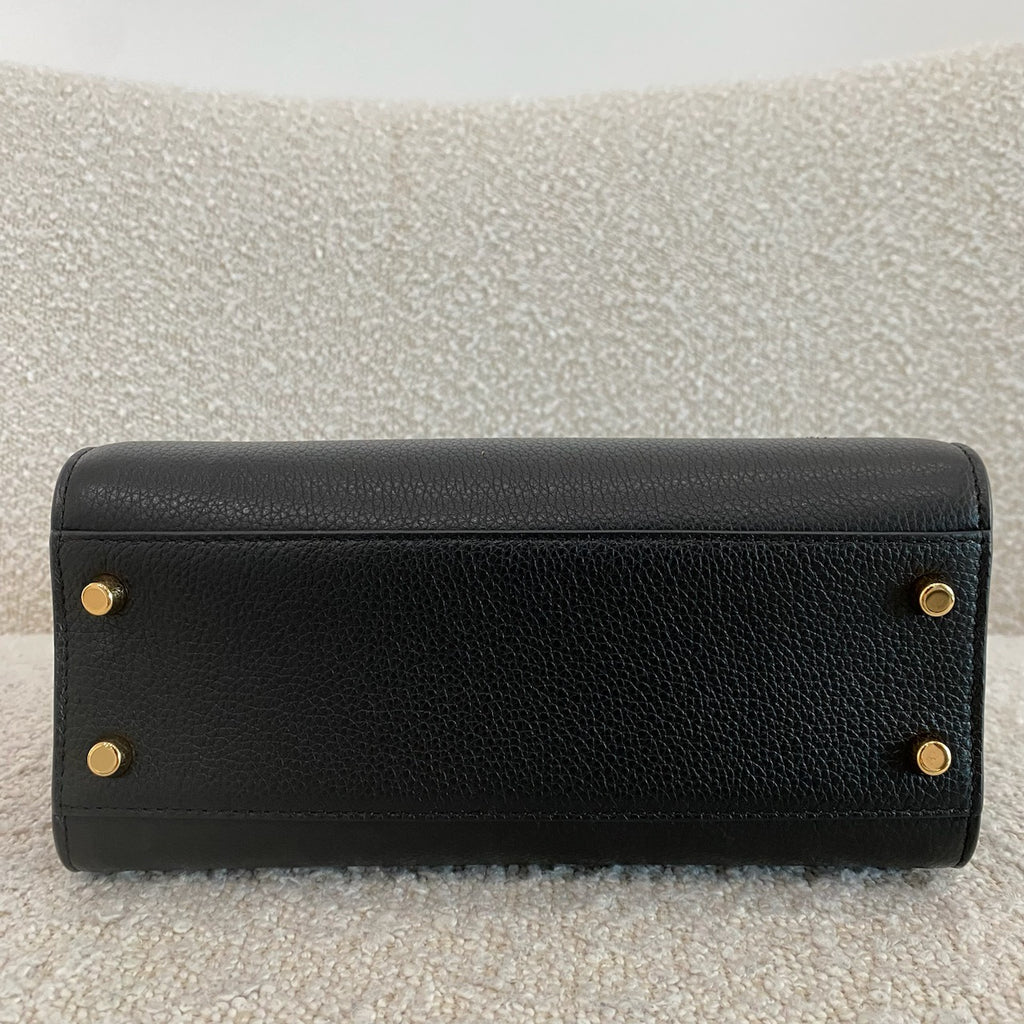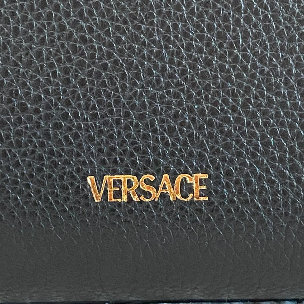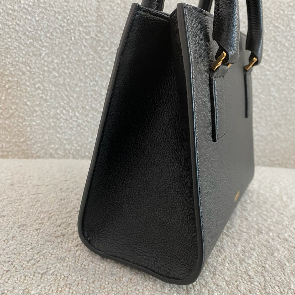 Black grained leather. Gold tone hardware.
