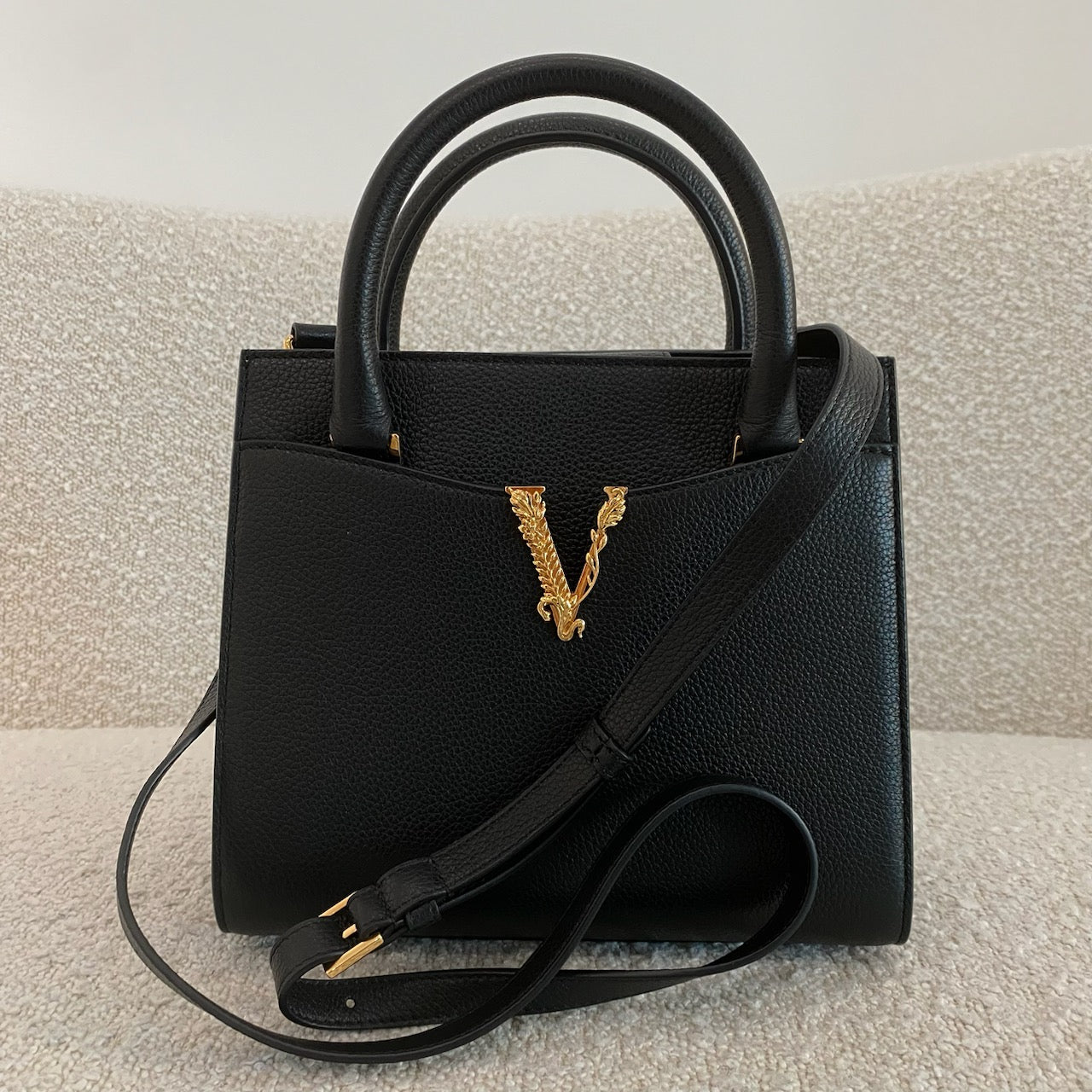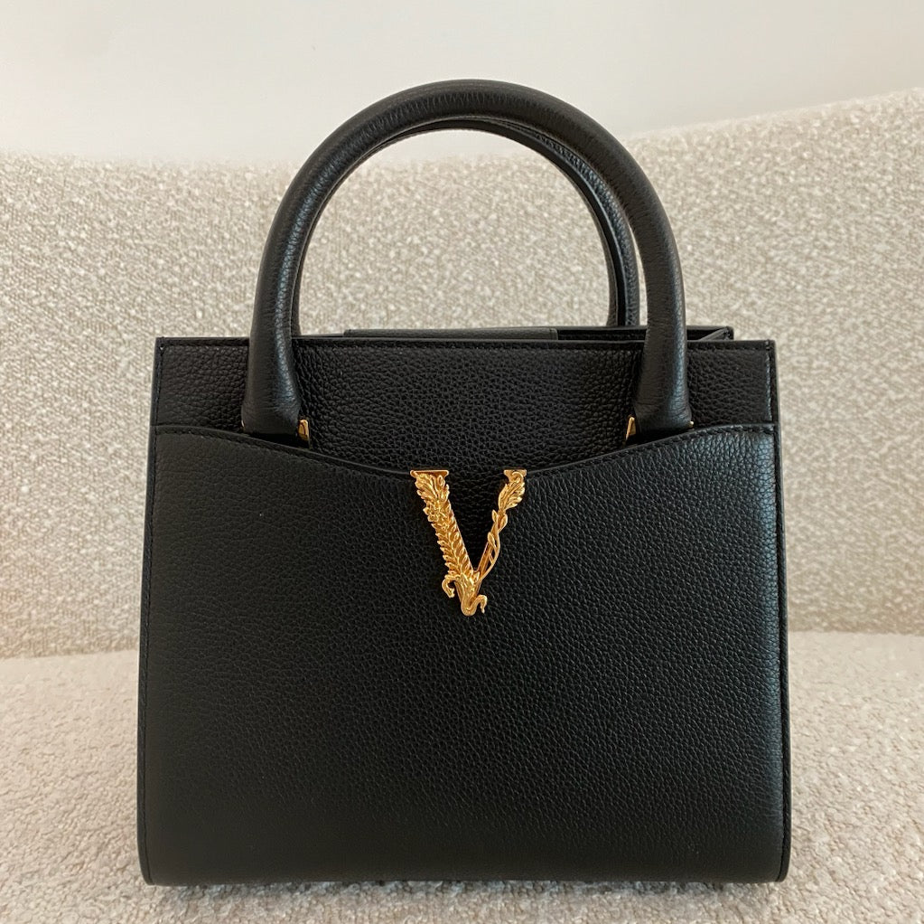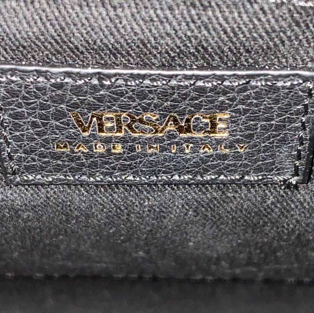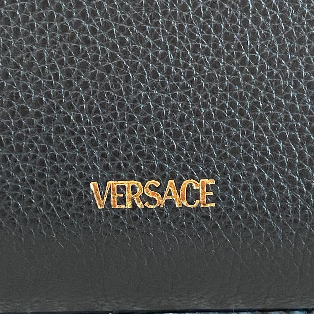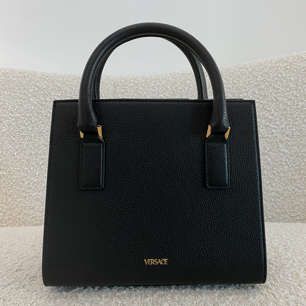 Pre-owned VERSACE Grained Calfskin Virtus Top Handle Tote Black