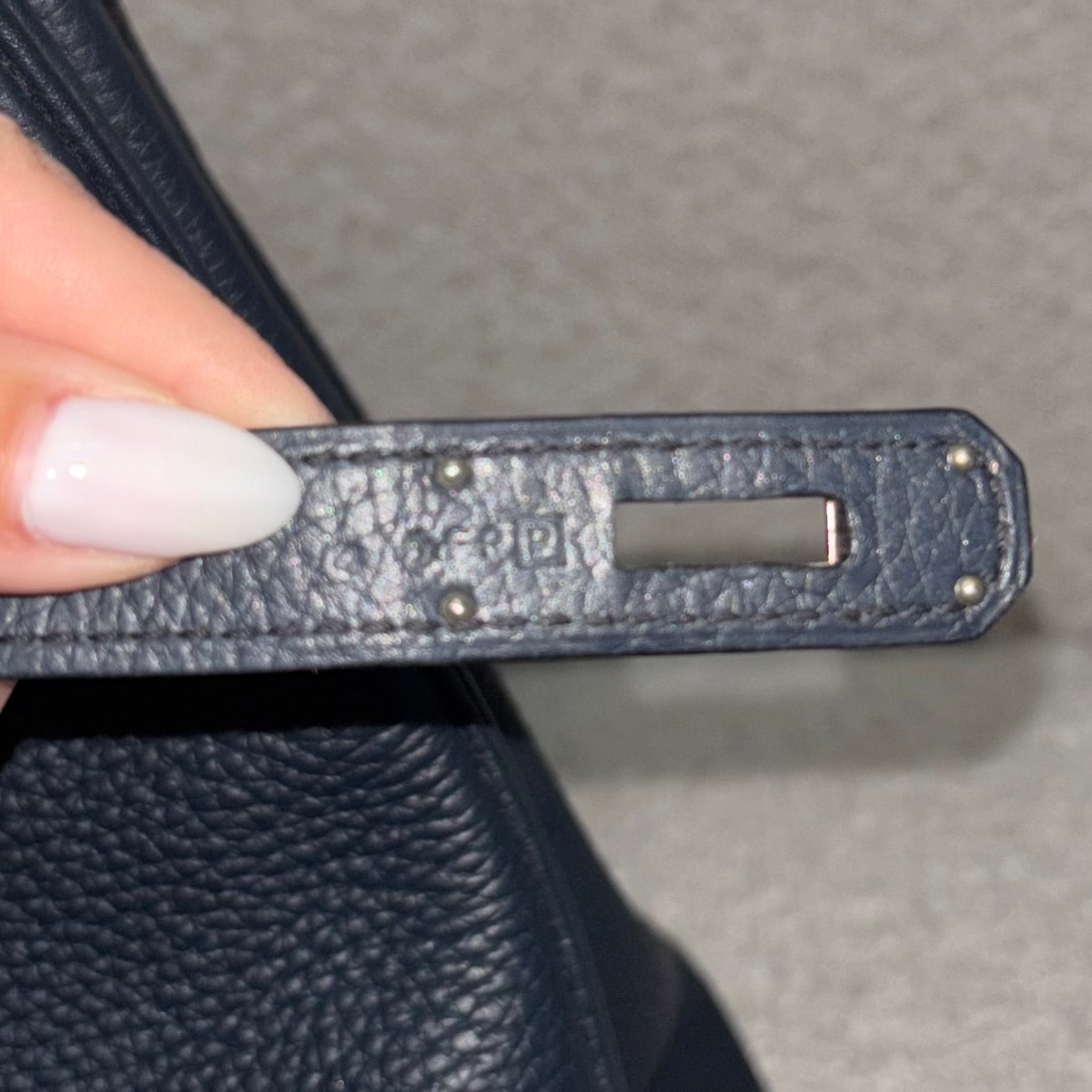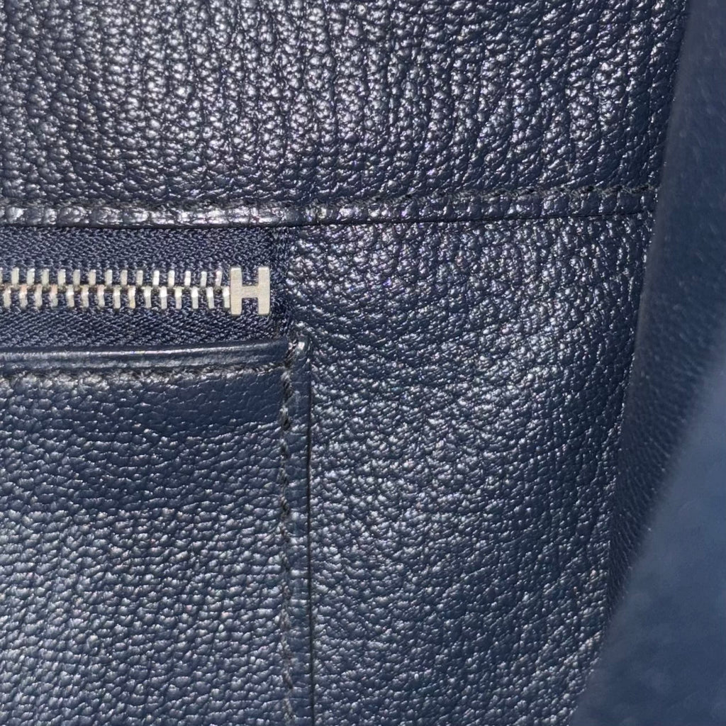 Size 40. Blue Nuit Togo leather. Palladium hardware. Stamp P.