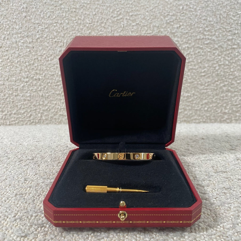Pre-owned Cartier Love Bracelet Yellow Gold 4 Diamonds Size 17