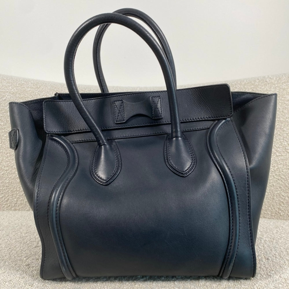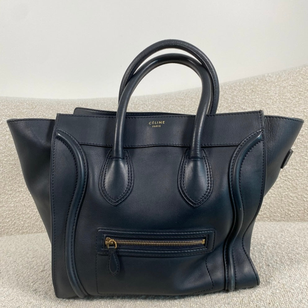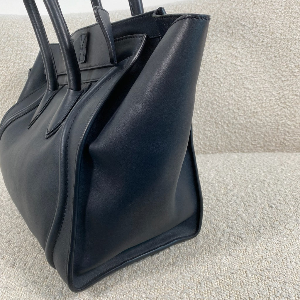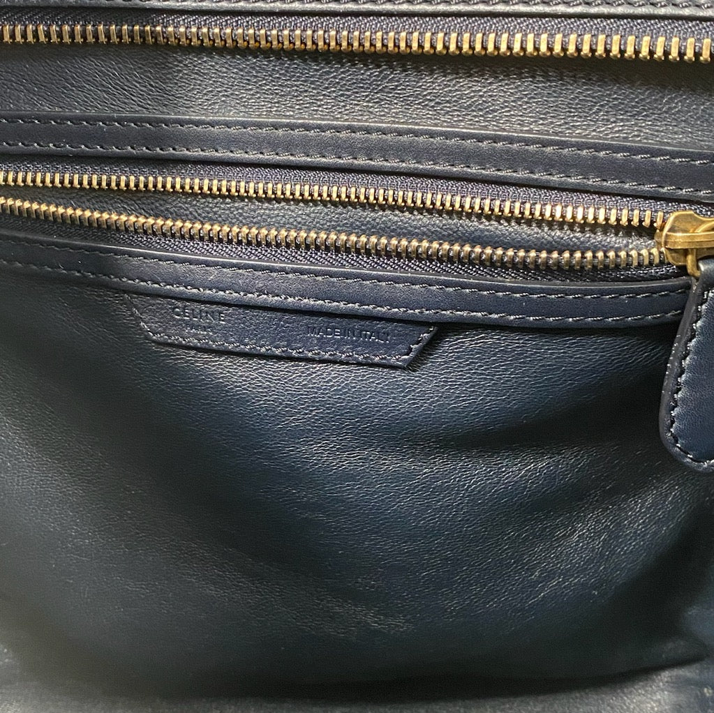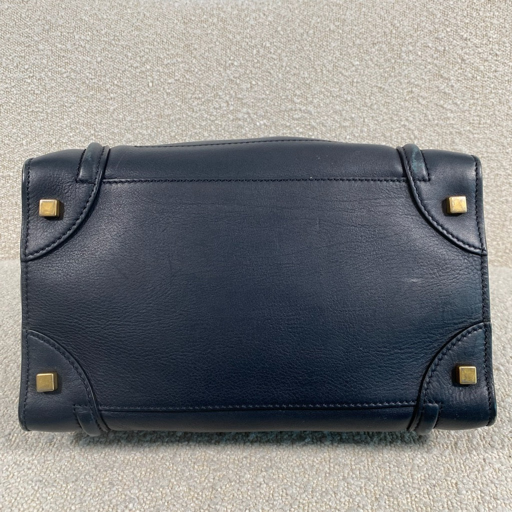 Pre-owned Celine Mini Luggage Tote Bag Navy Smooth Leather