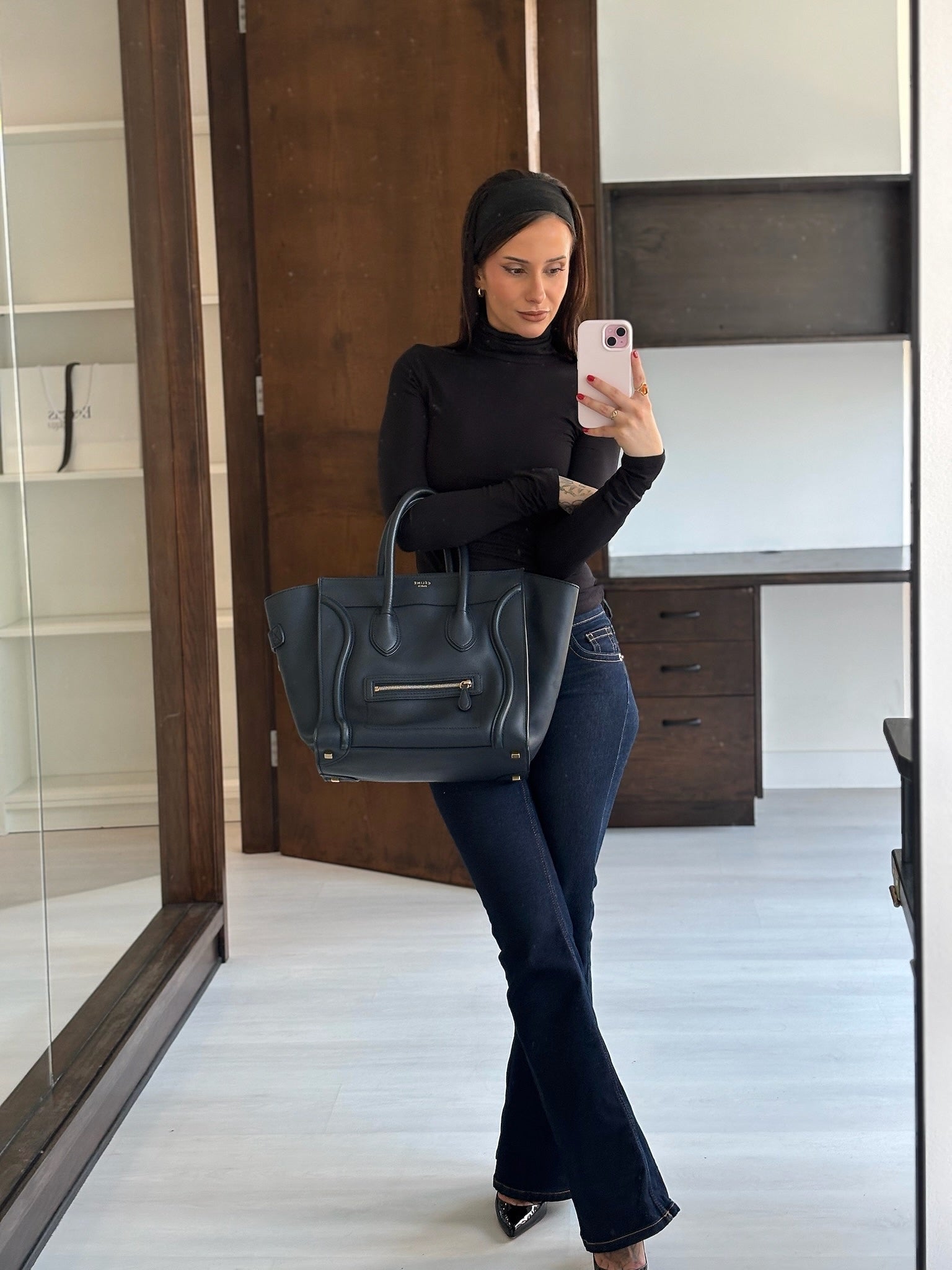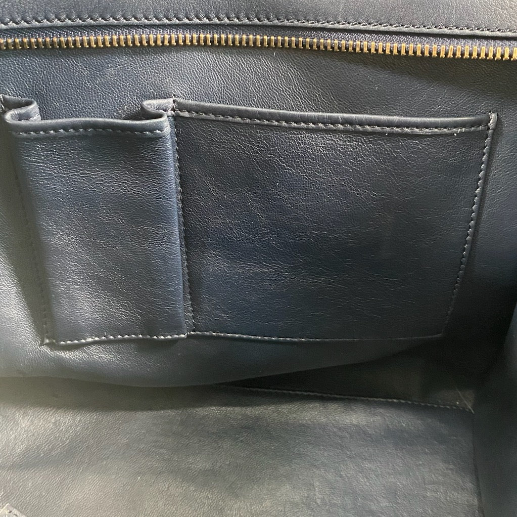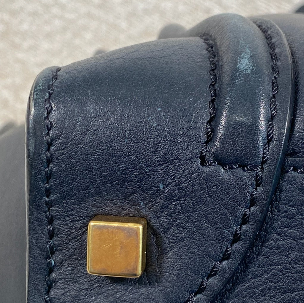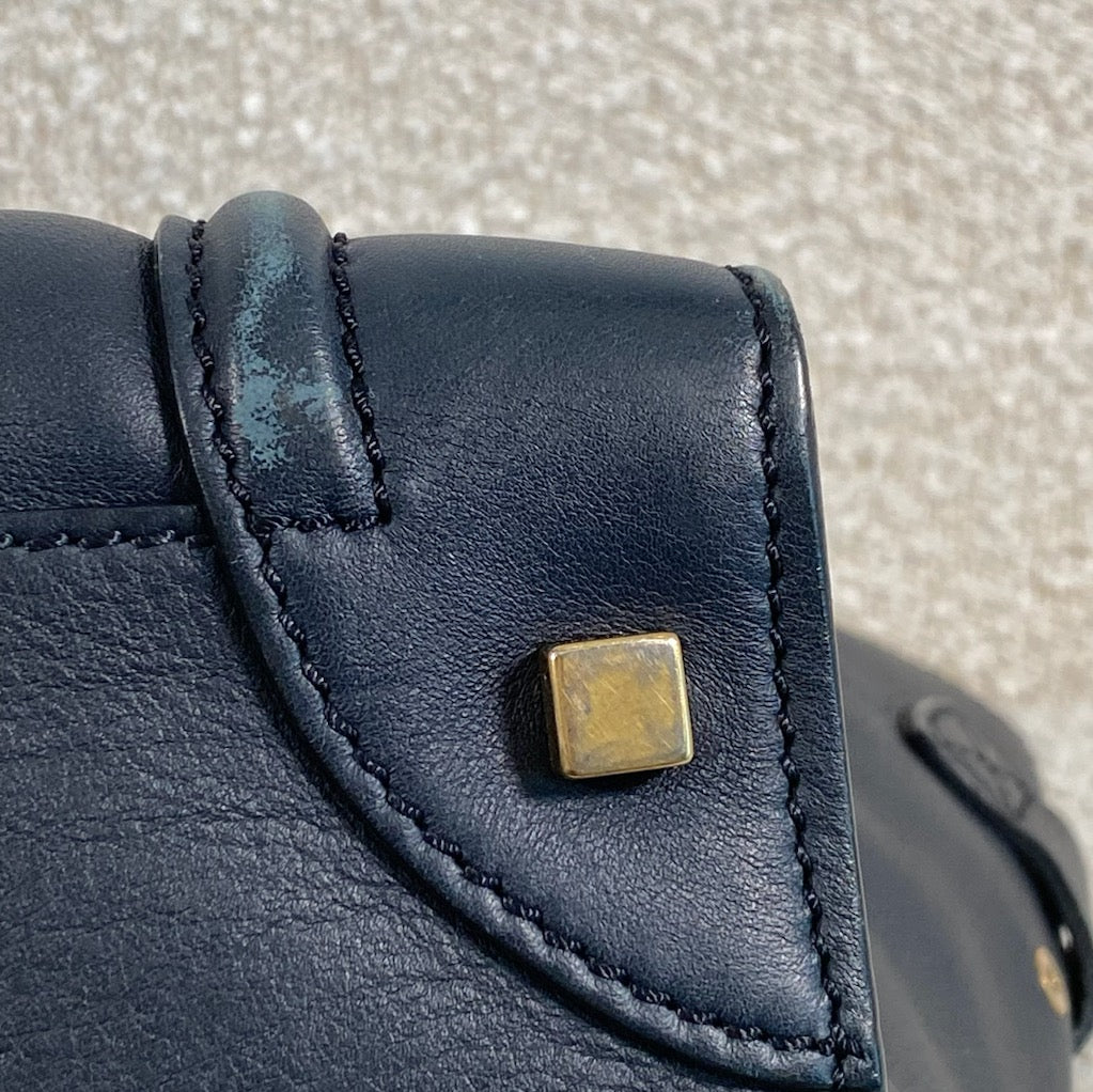 Pre-owned Celine Mini Luggage Tote Bag Navy Smooth Leather