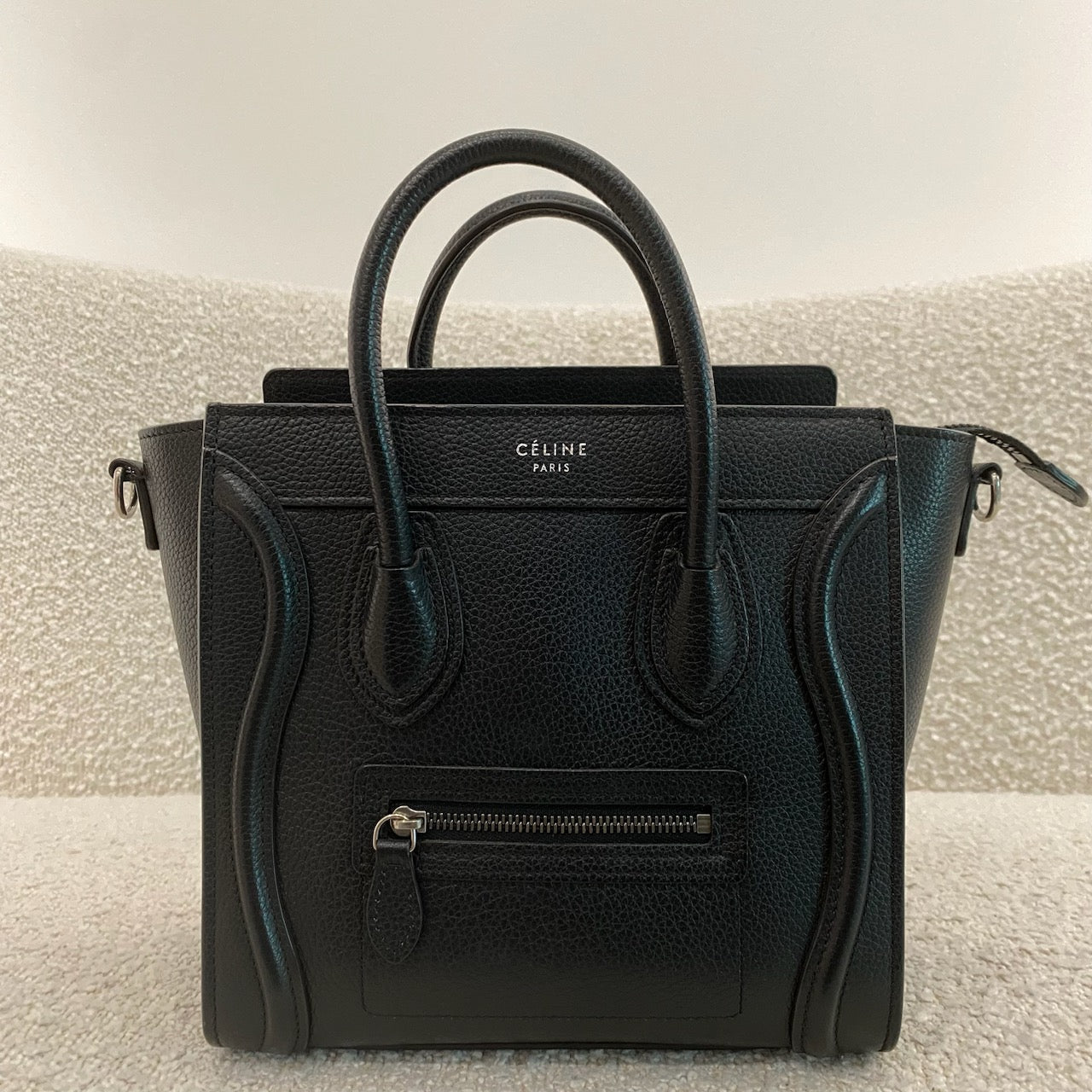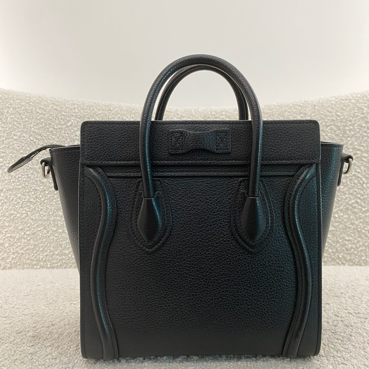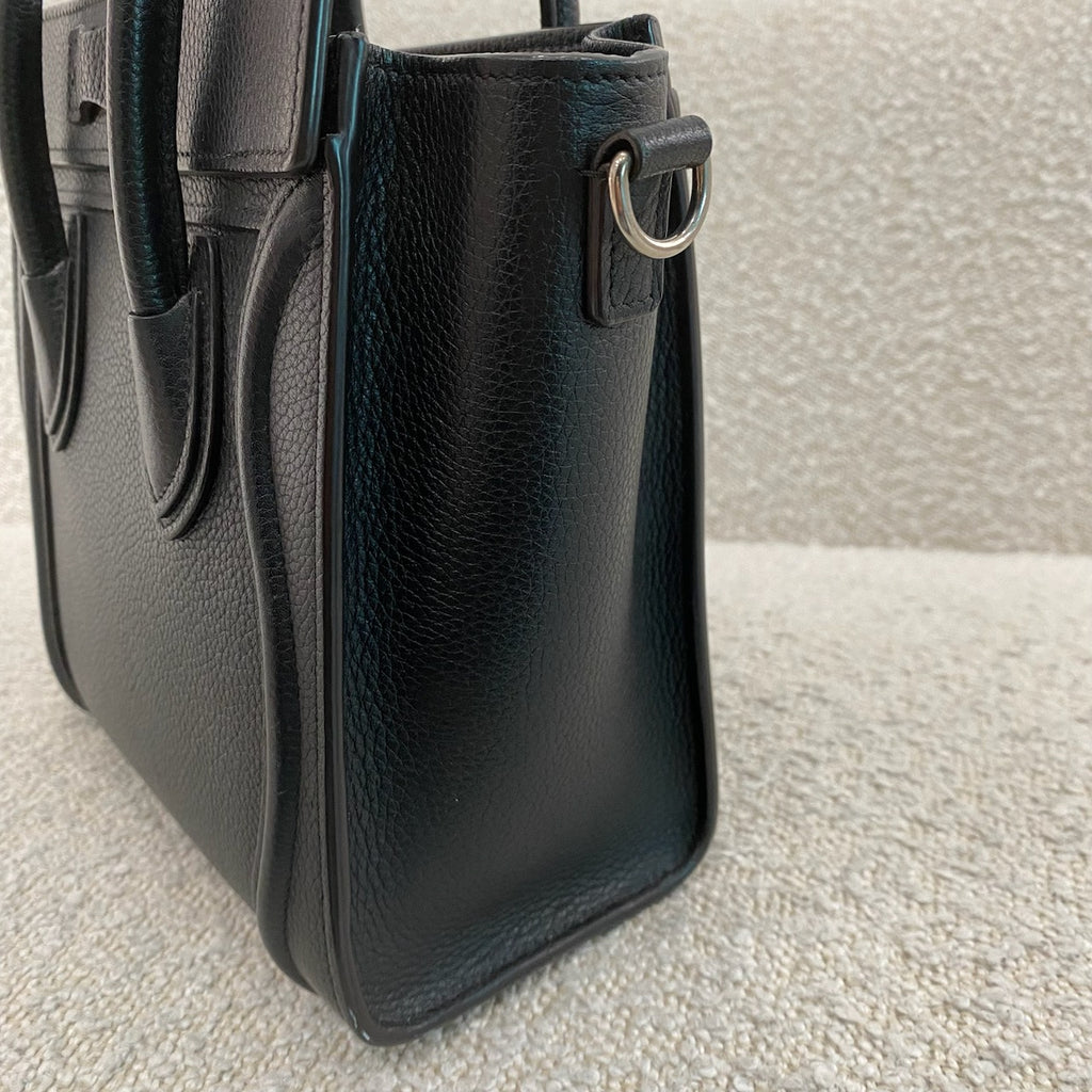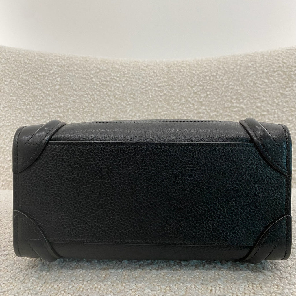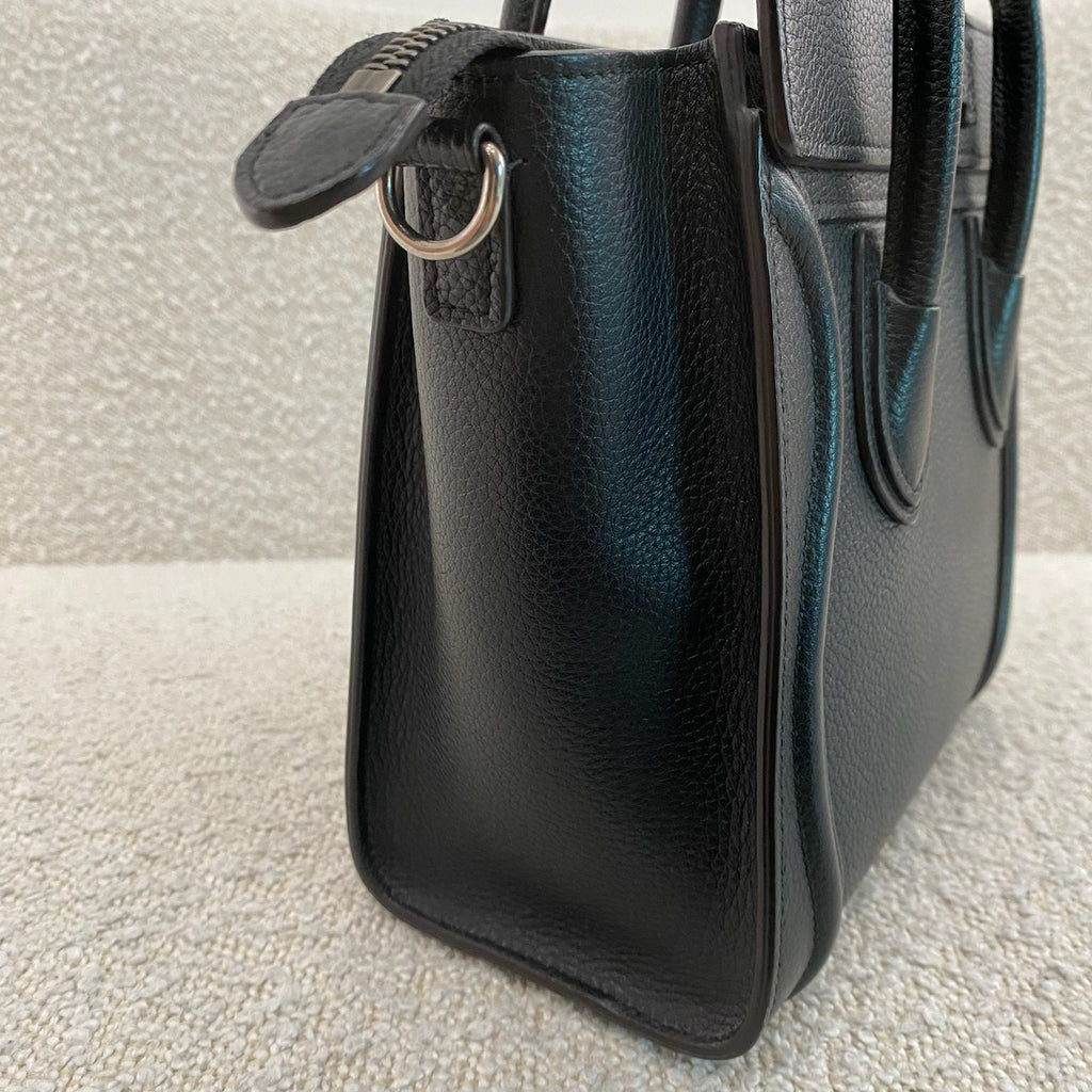 Pre-owned Celine Nano Leather Luggage Tote in Black