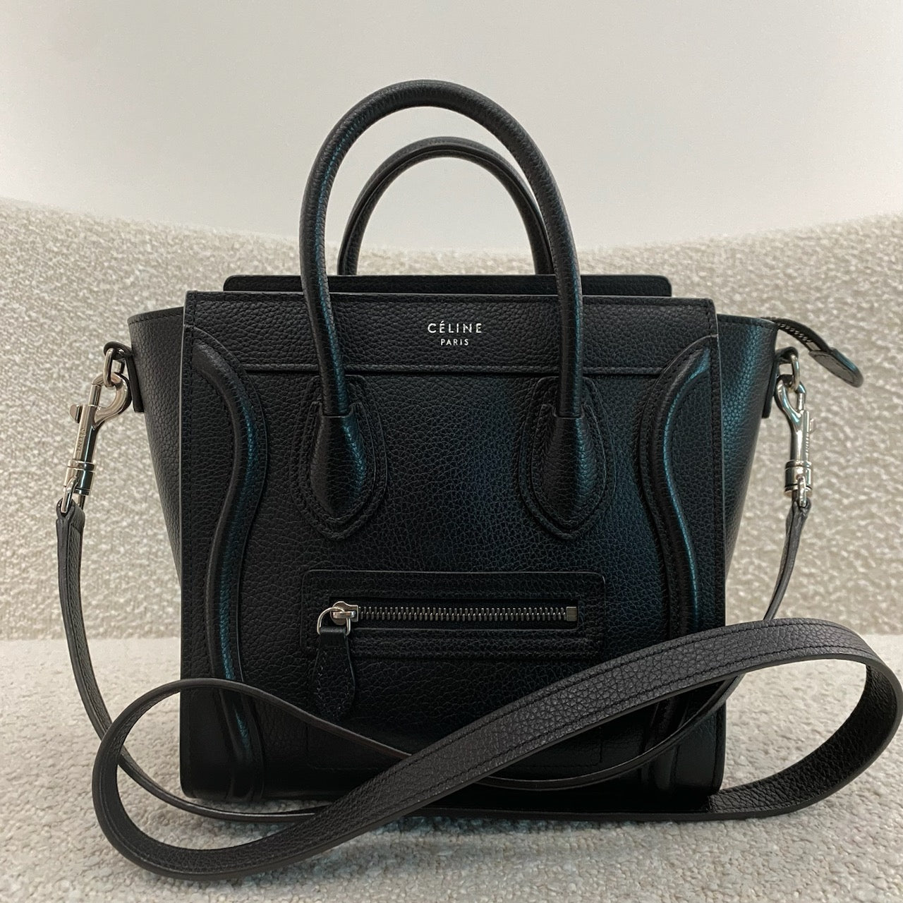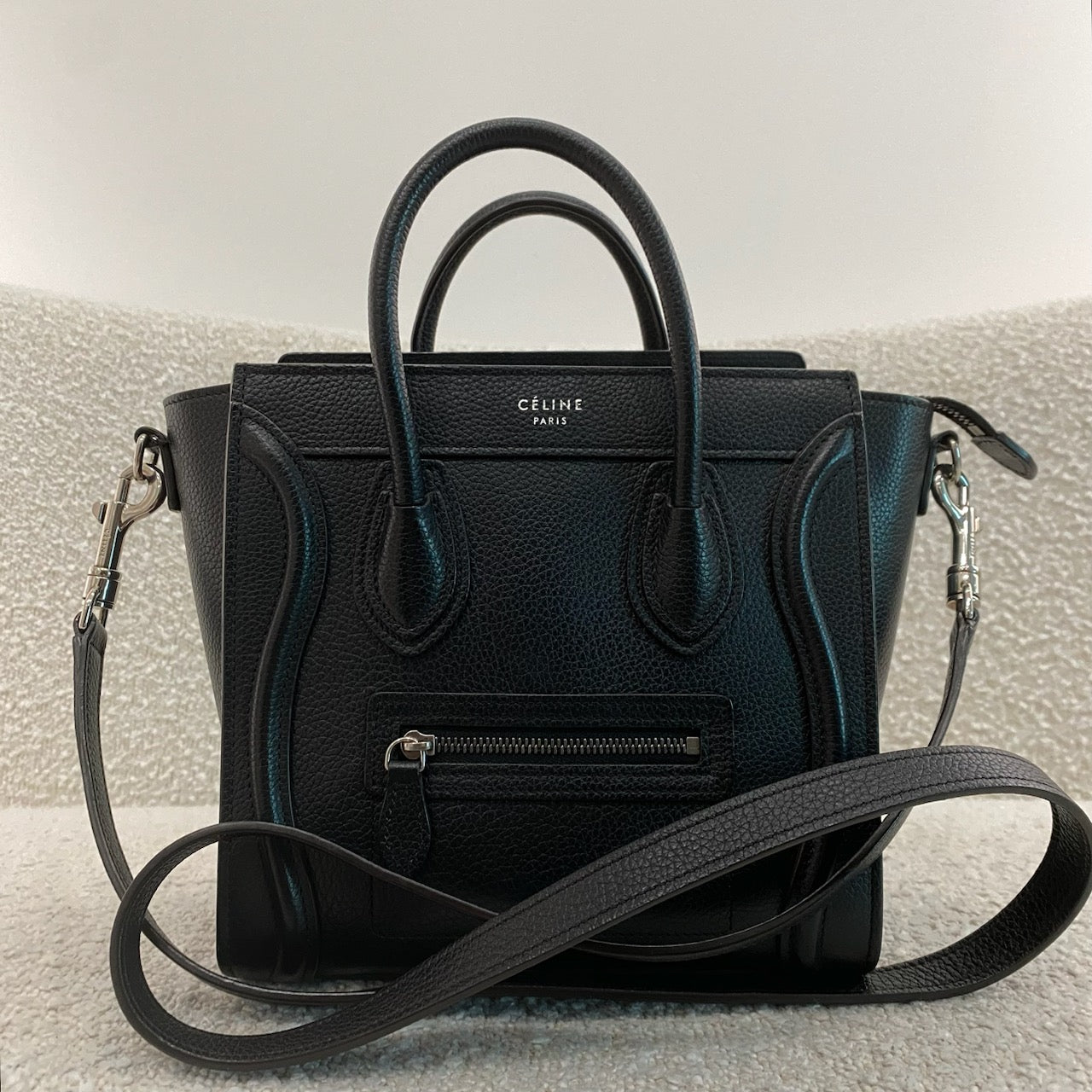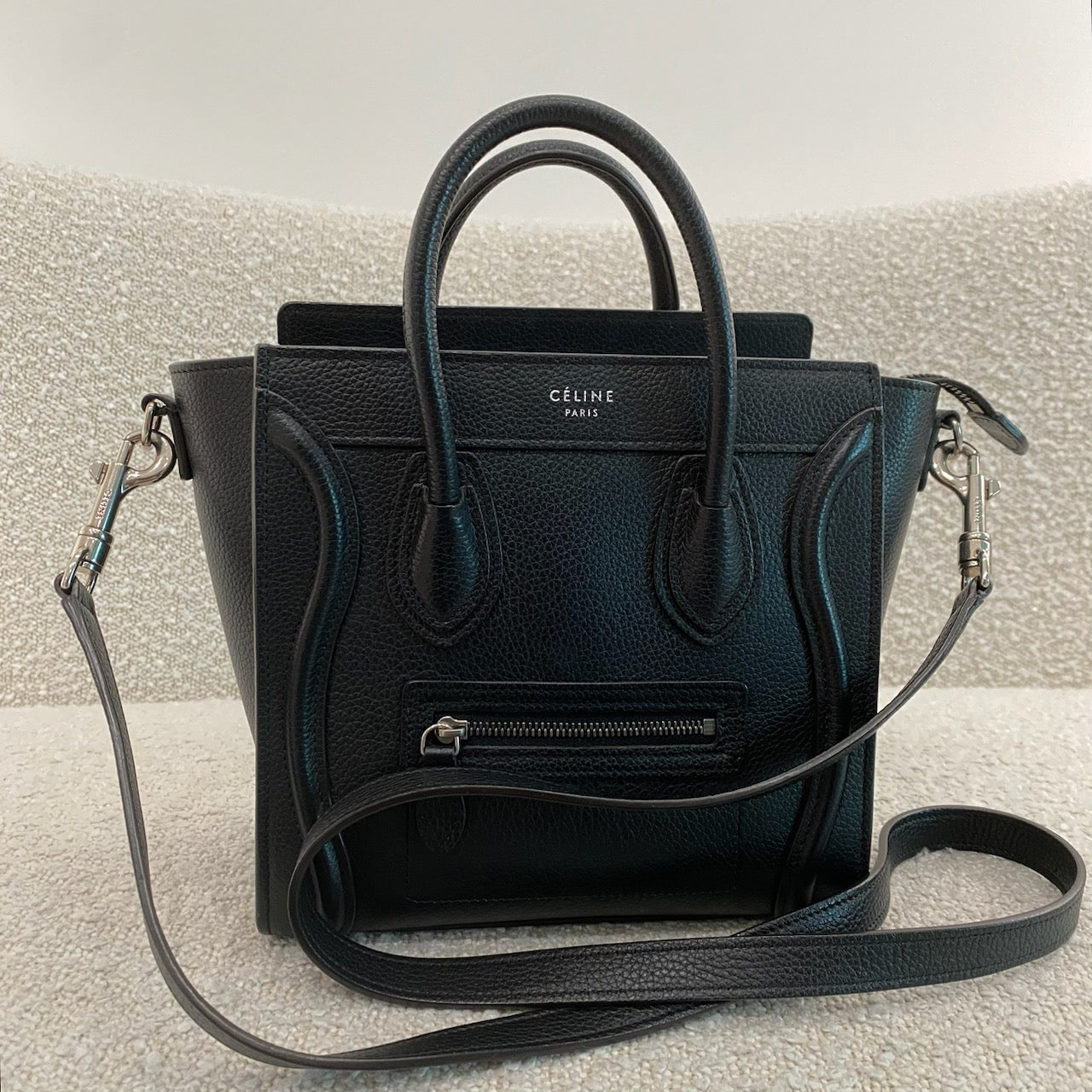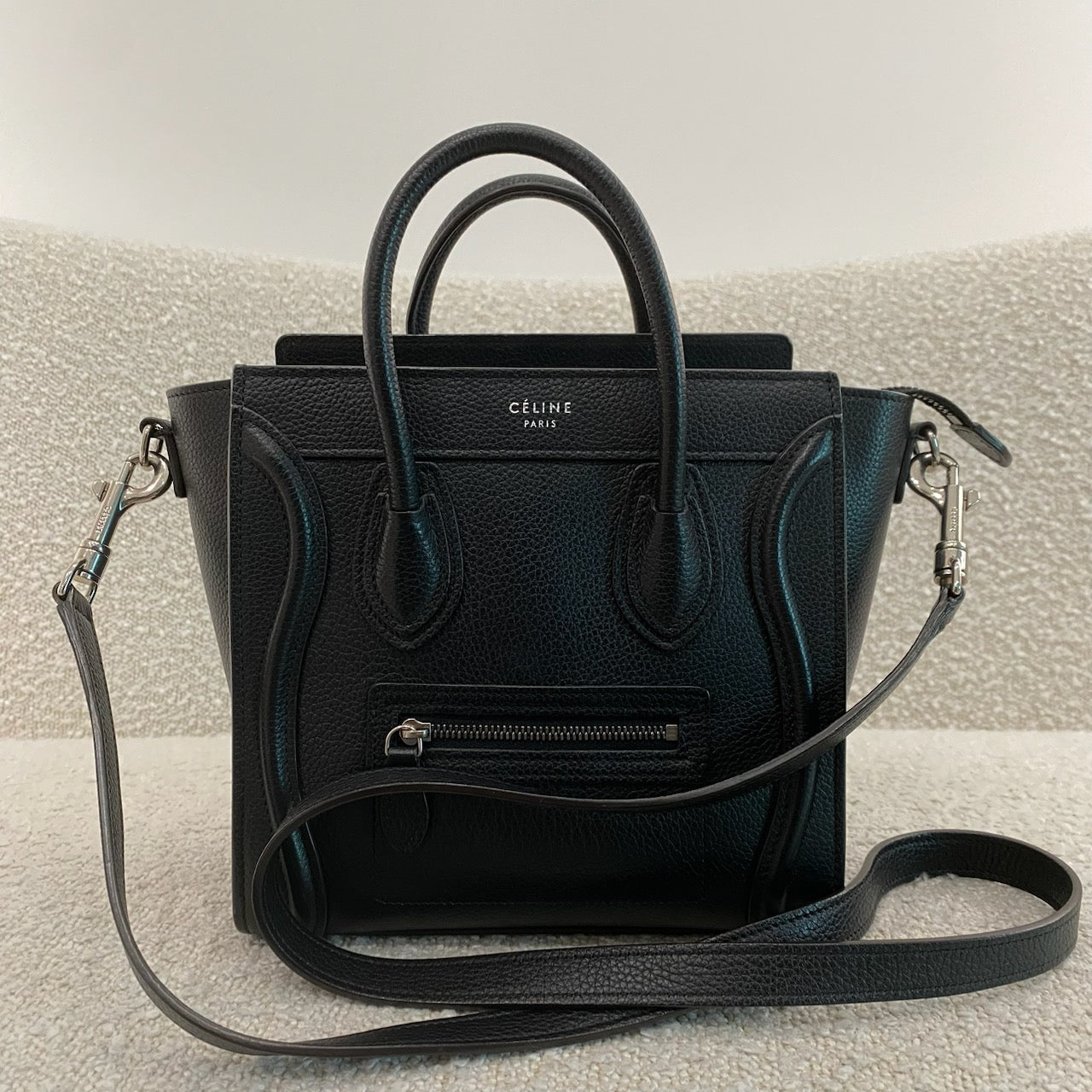 Pre-owned Celine Nano Leather Luggage Tote in Black