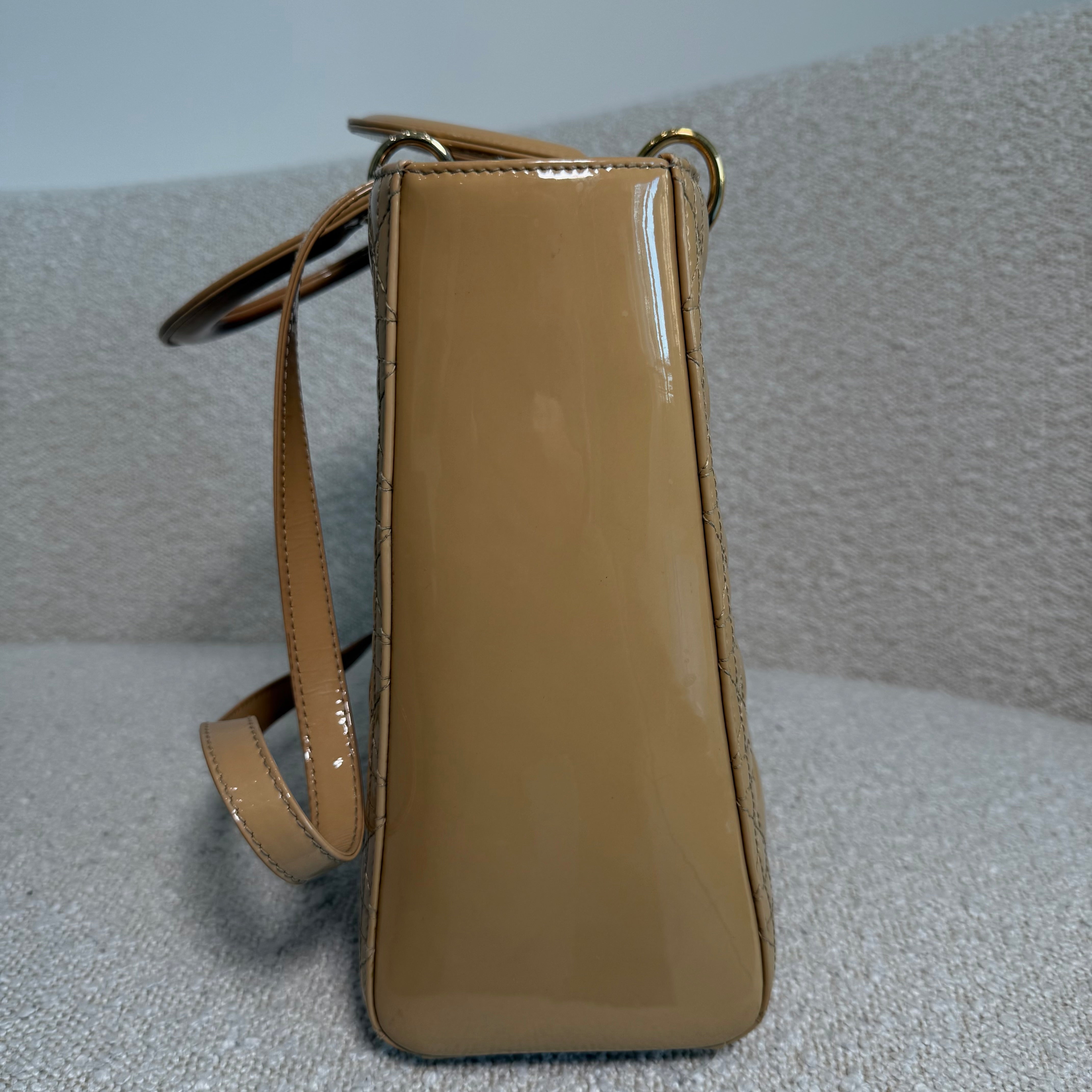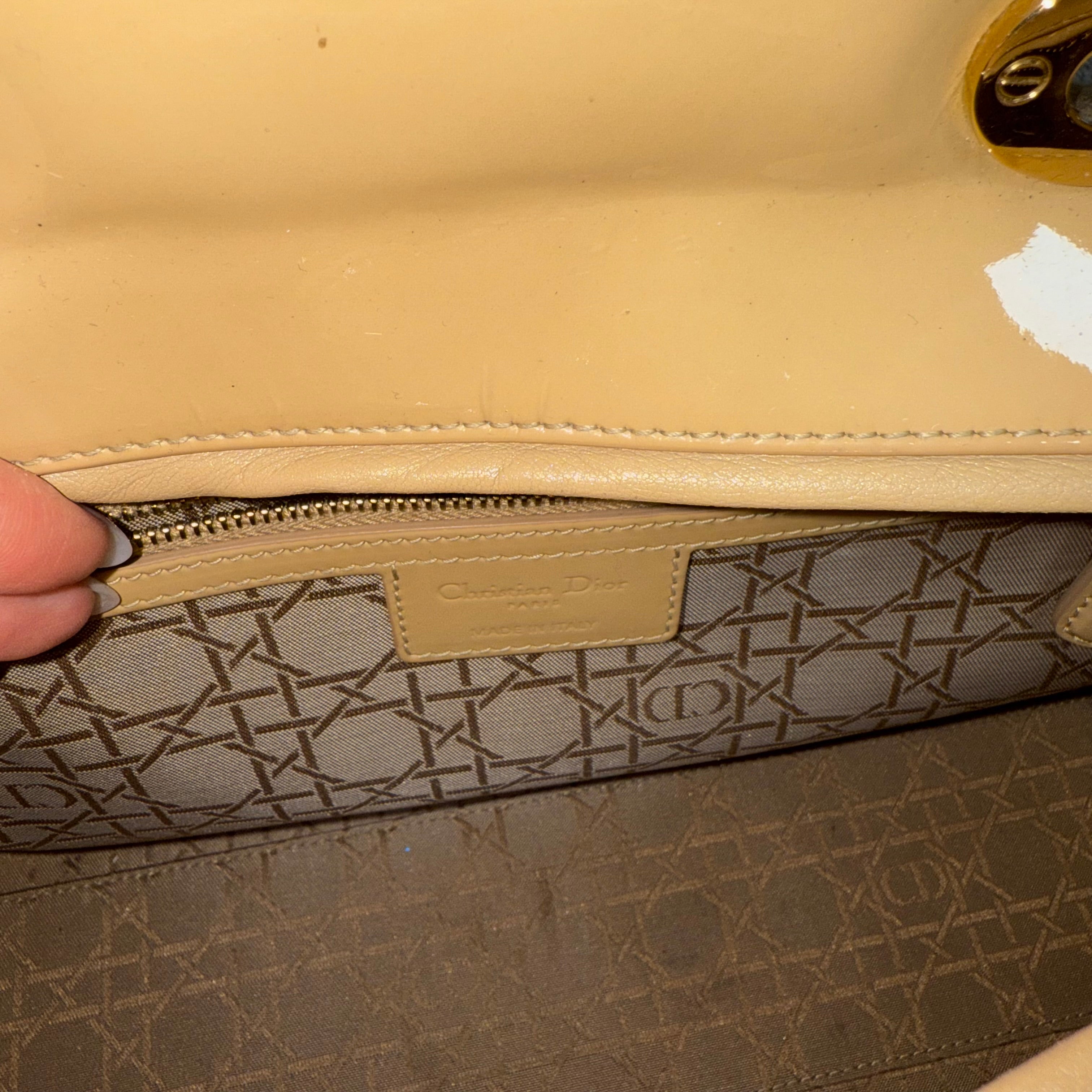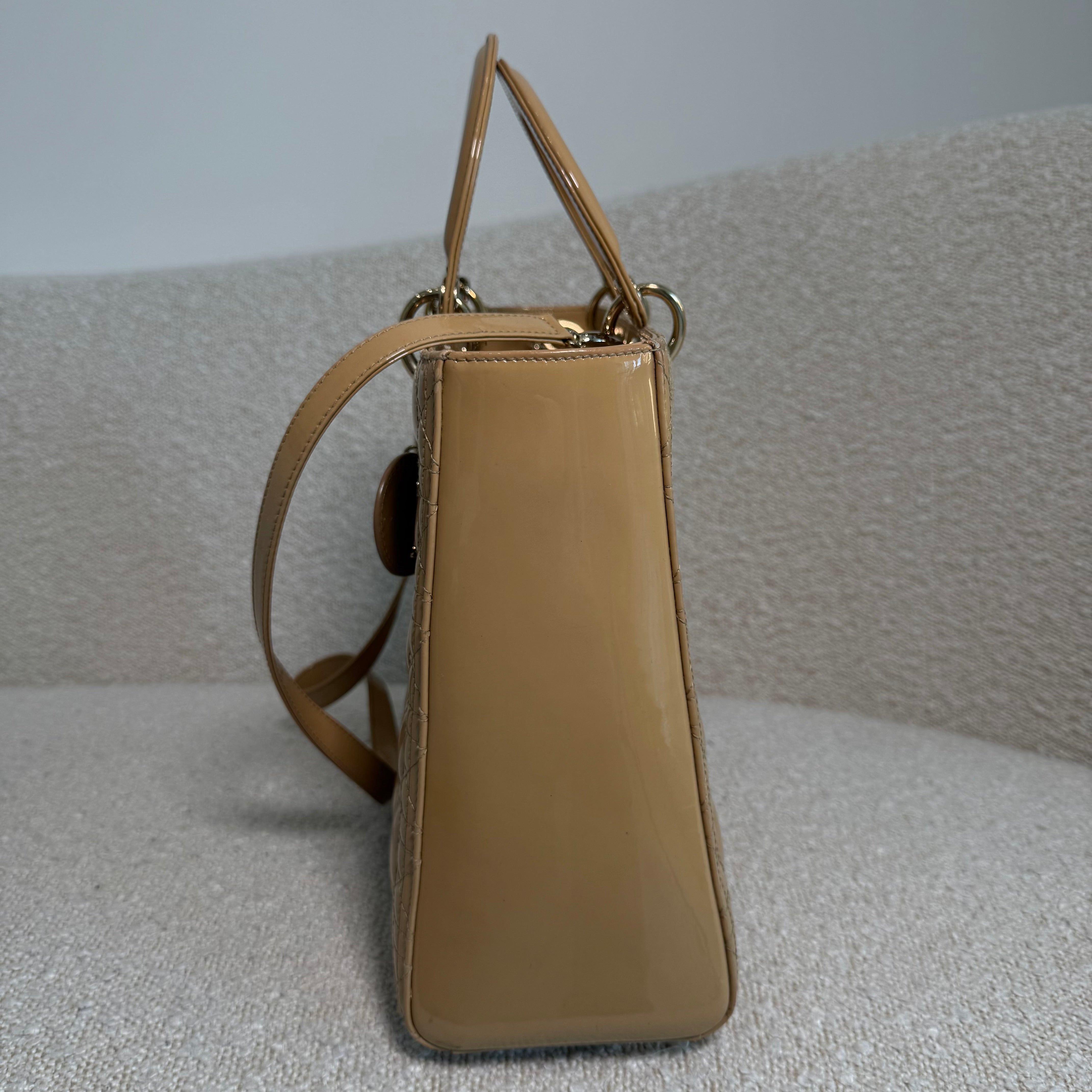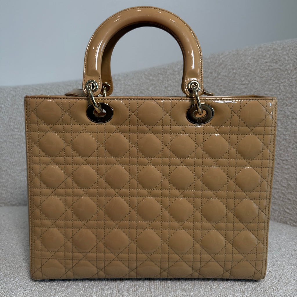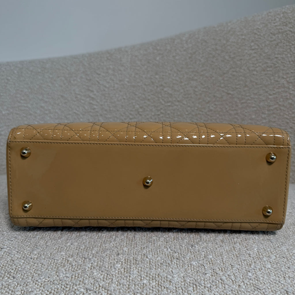 Pre-owned Dior Large Lady Dior Bag Beige Patent Gold HDW