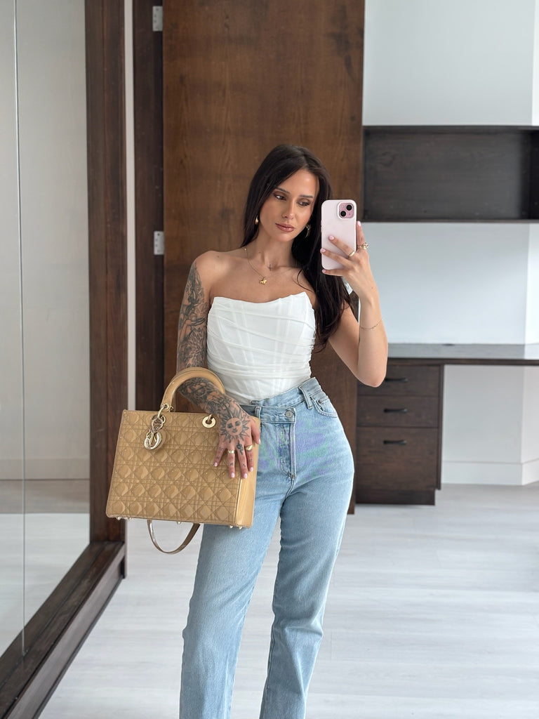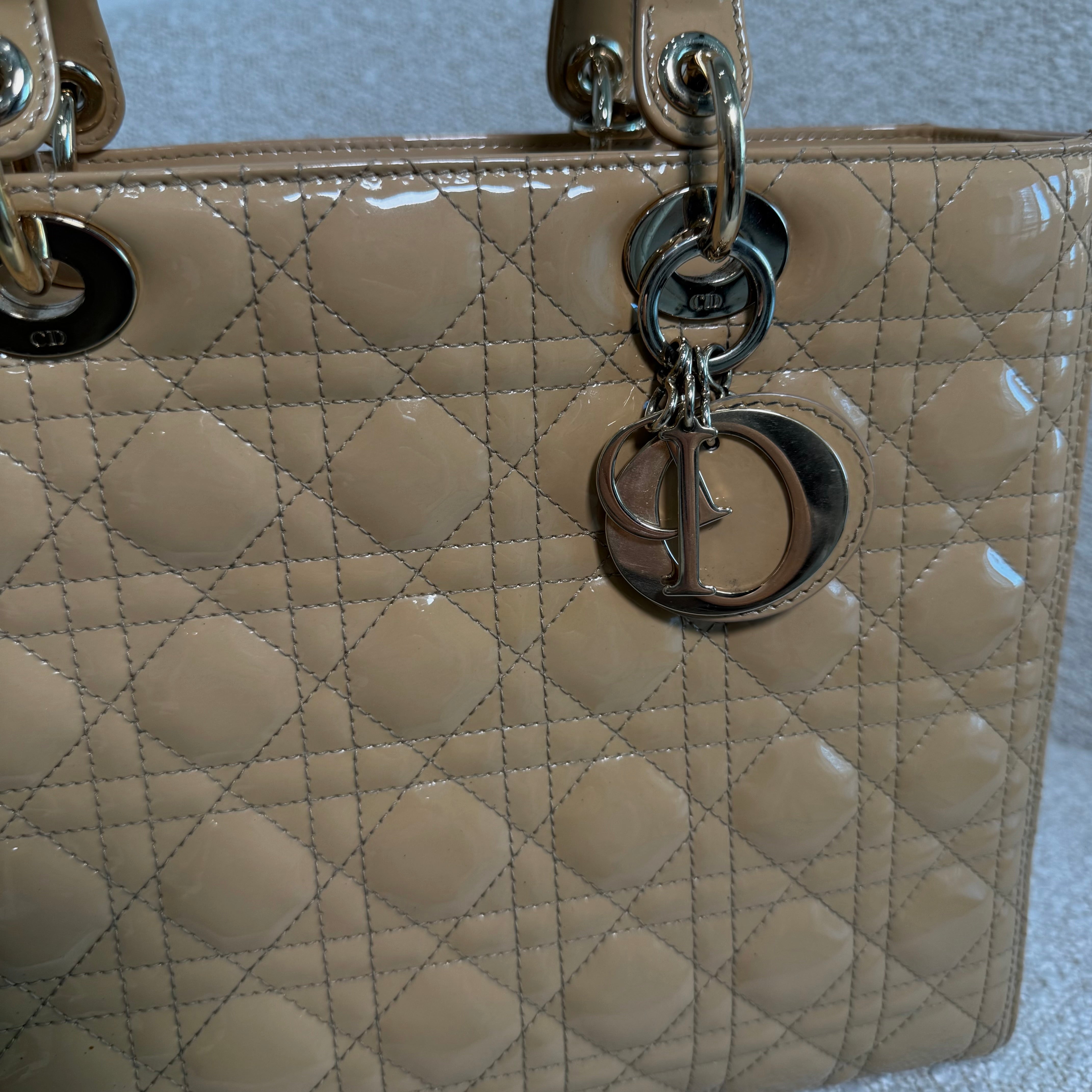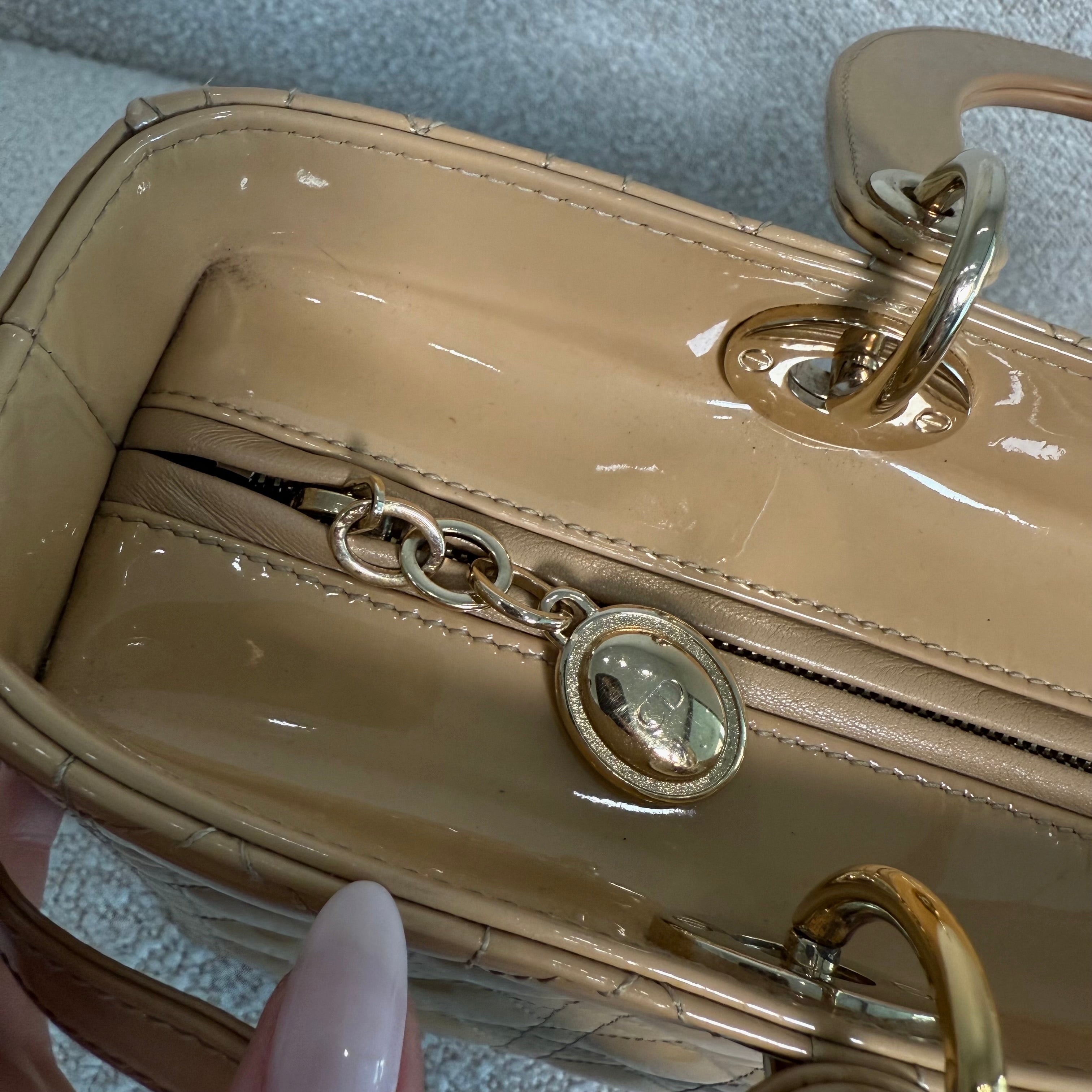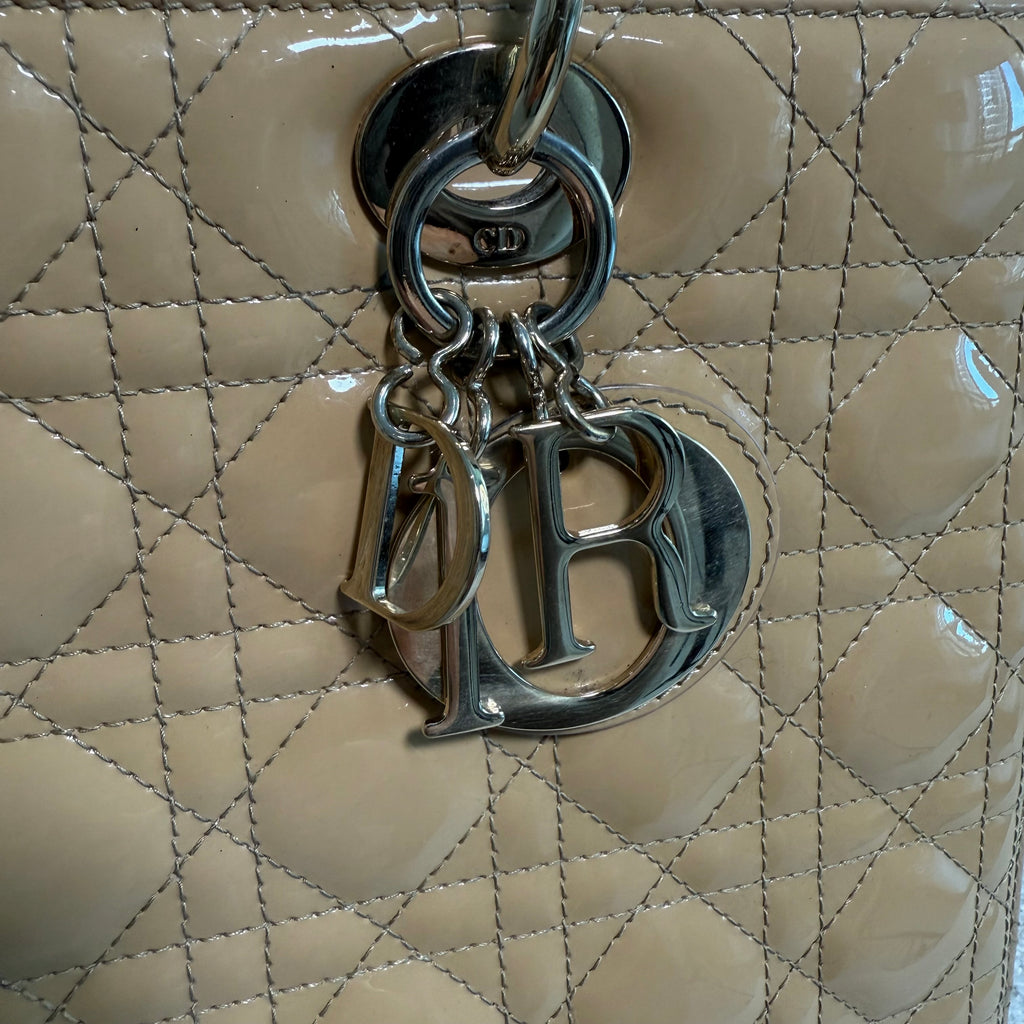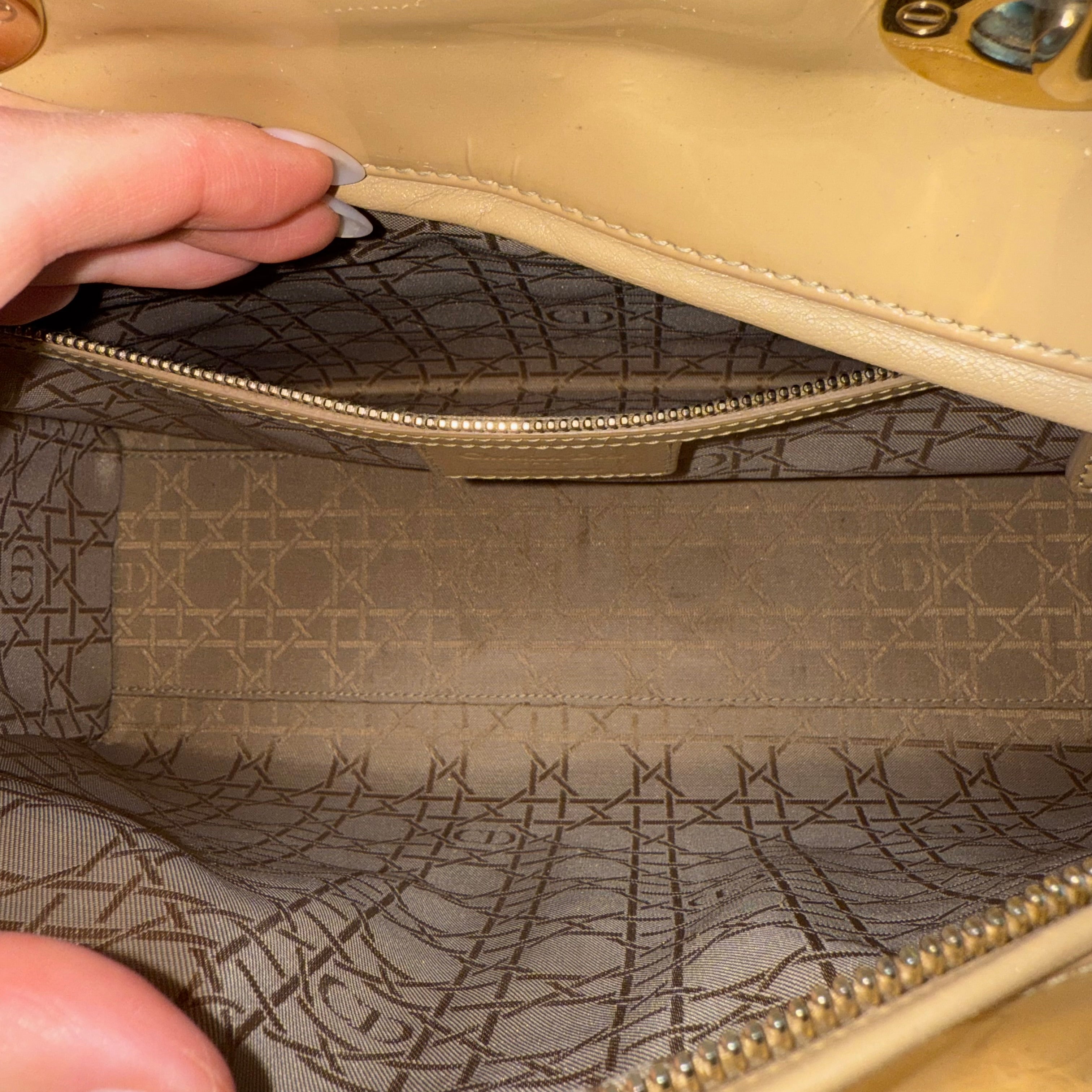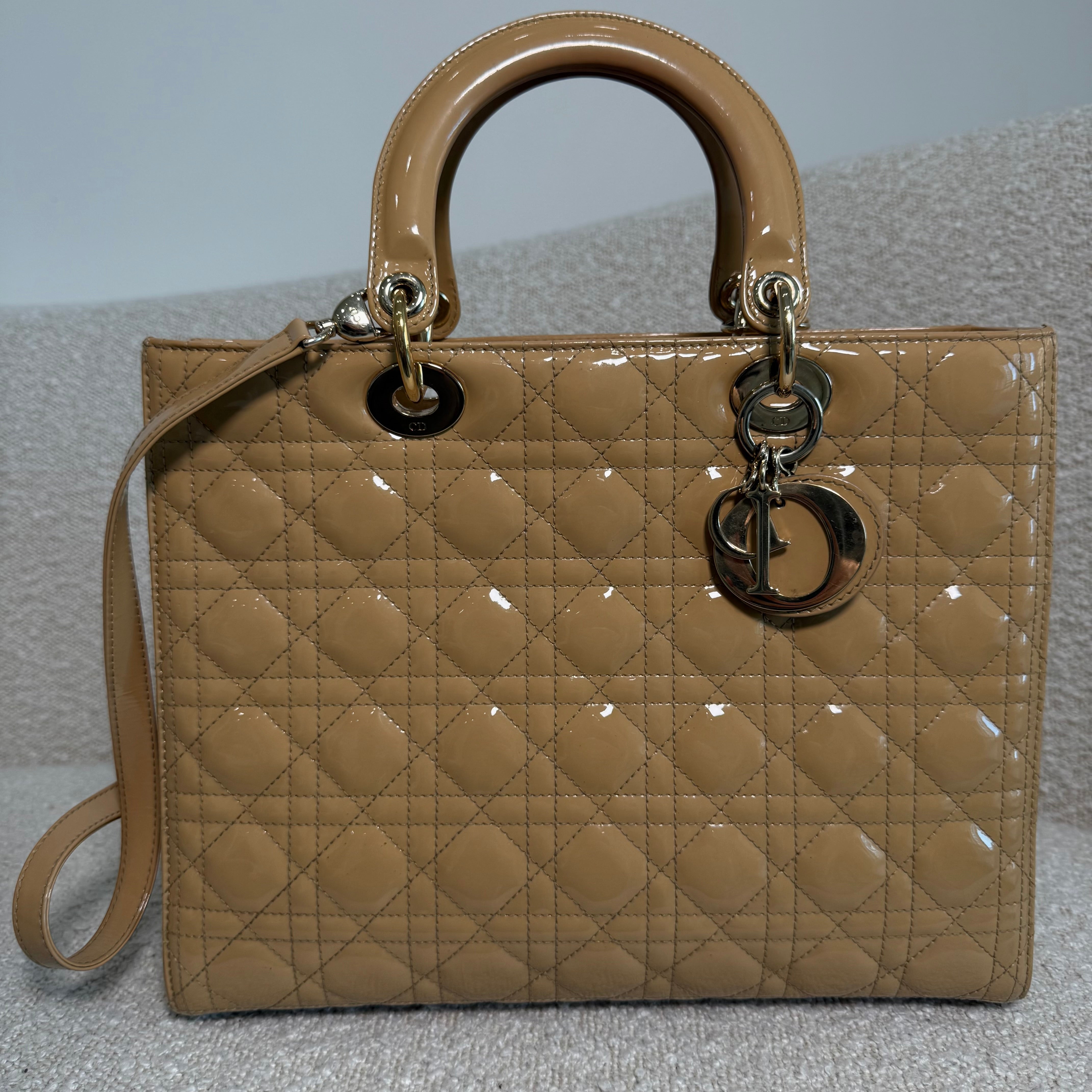 Pre-owned Dior Large Lady Dior Bag Beige Patent Gold HDW