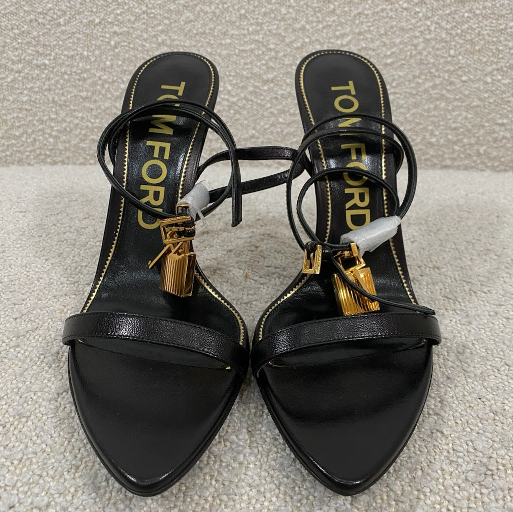 Pre-owned Tom Ford Black Padlock Heeled Sandals Size 41