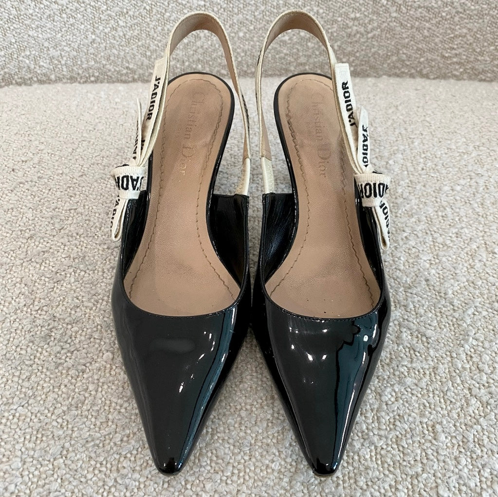 Pre-owned Dior J’adior Kitten Heels Black Patent 36