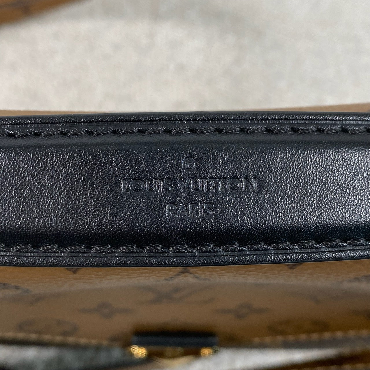 Monogram and reverse monogram coated canvas. Gold tone hardware.9.8 x 7.5 x 2.8 inches. Strap drop:18.9 inches