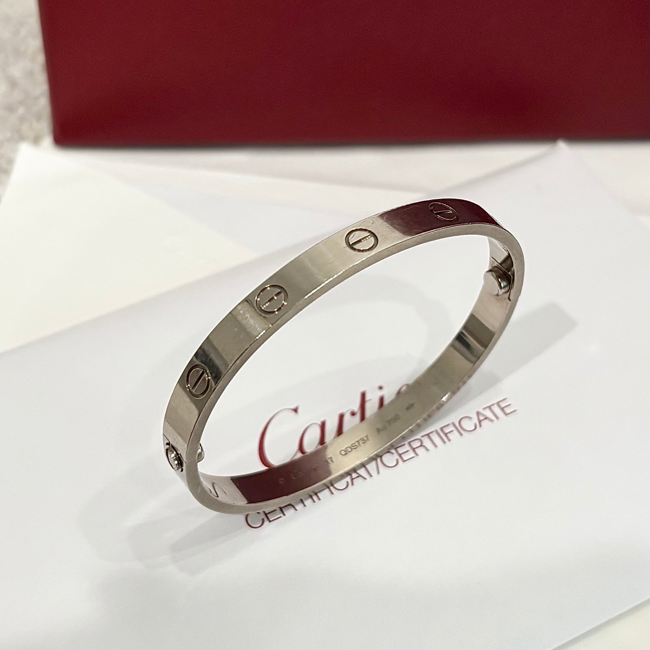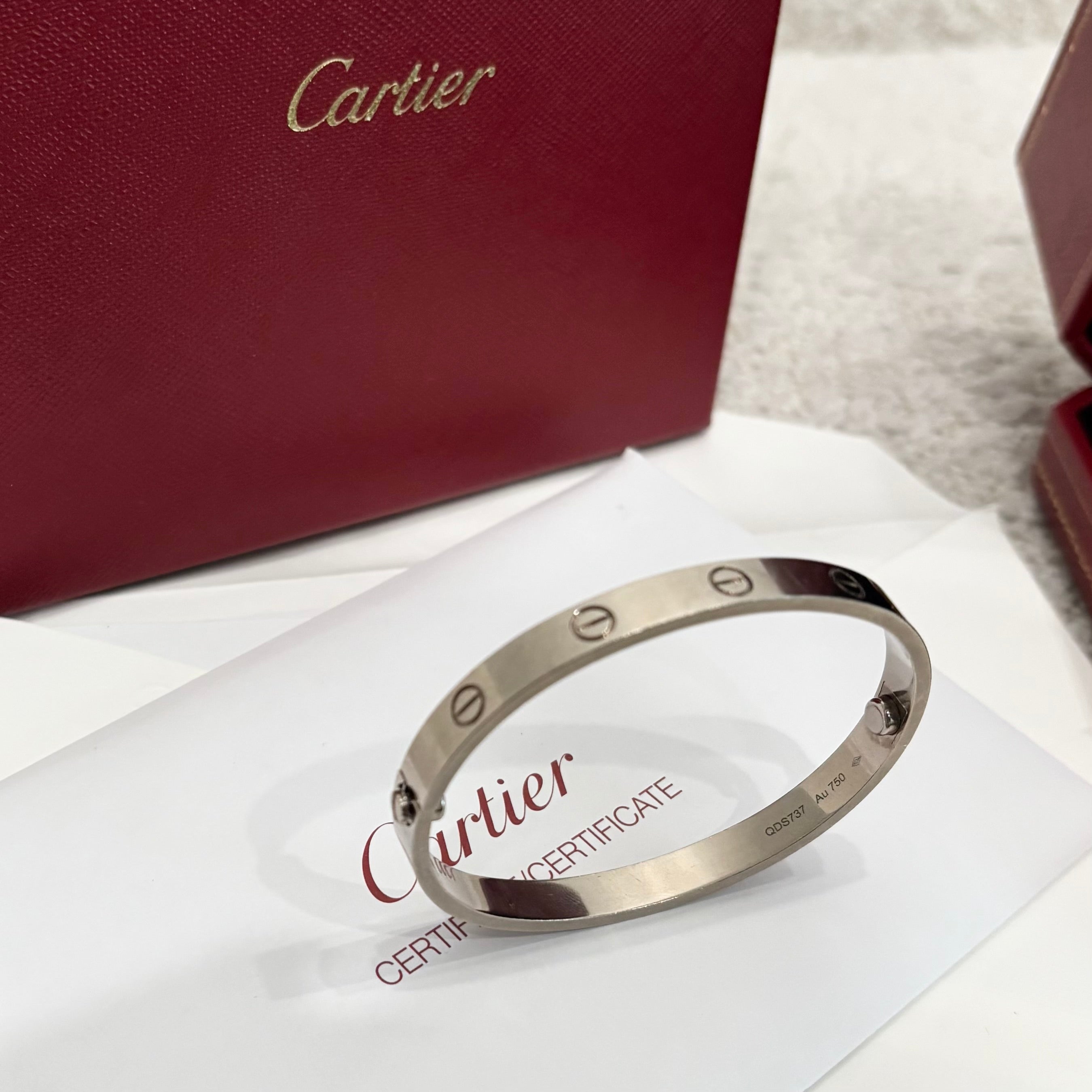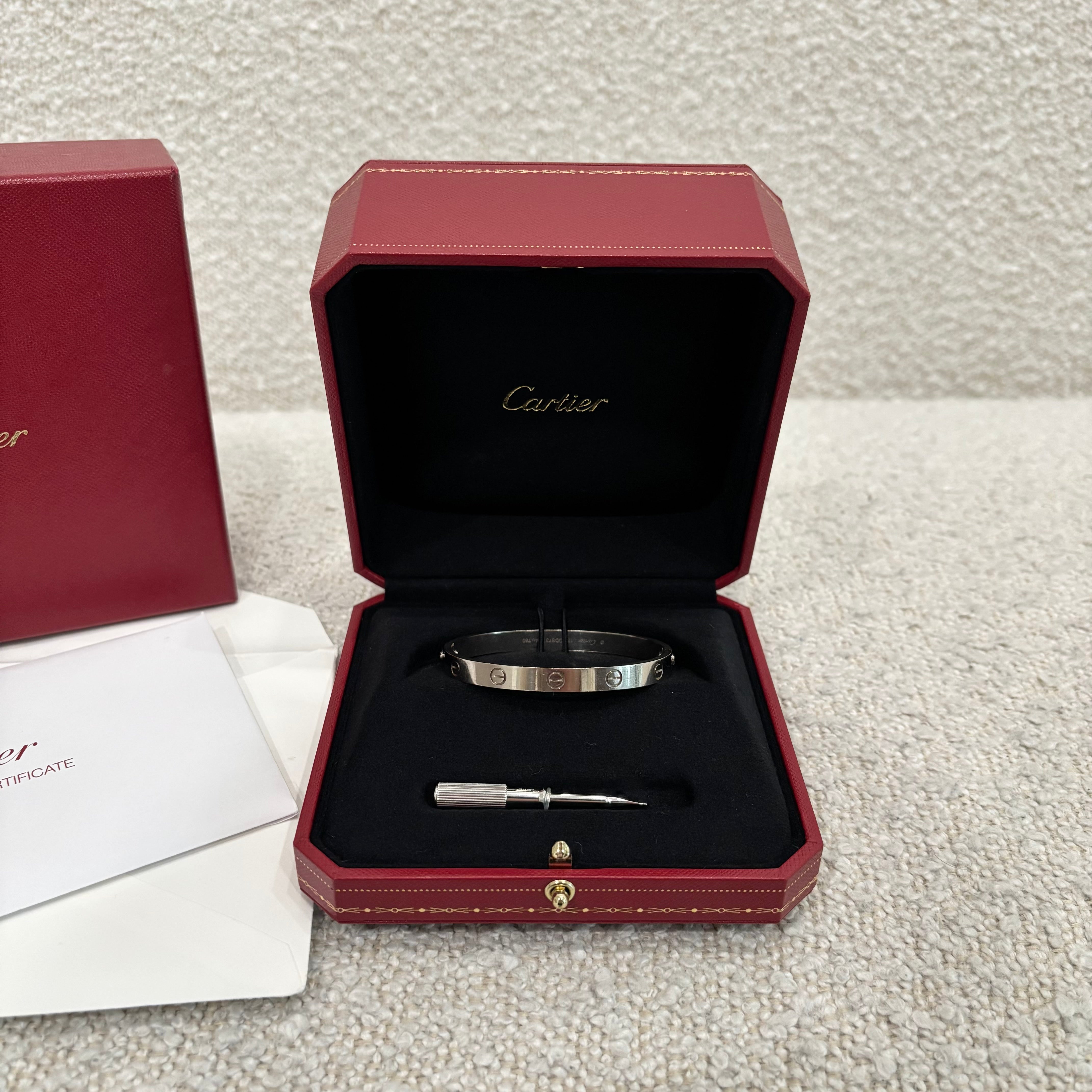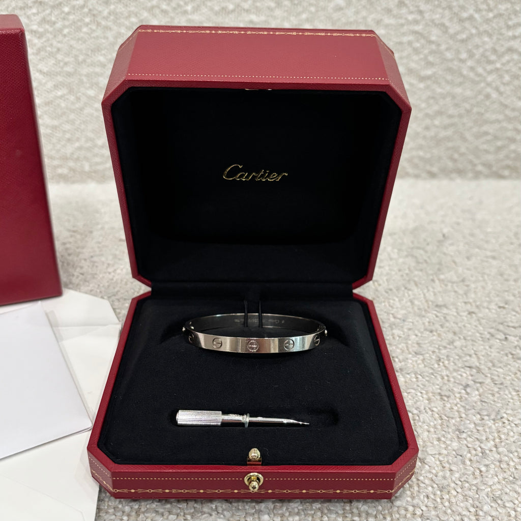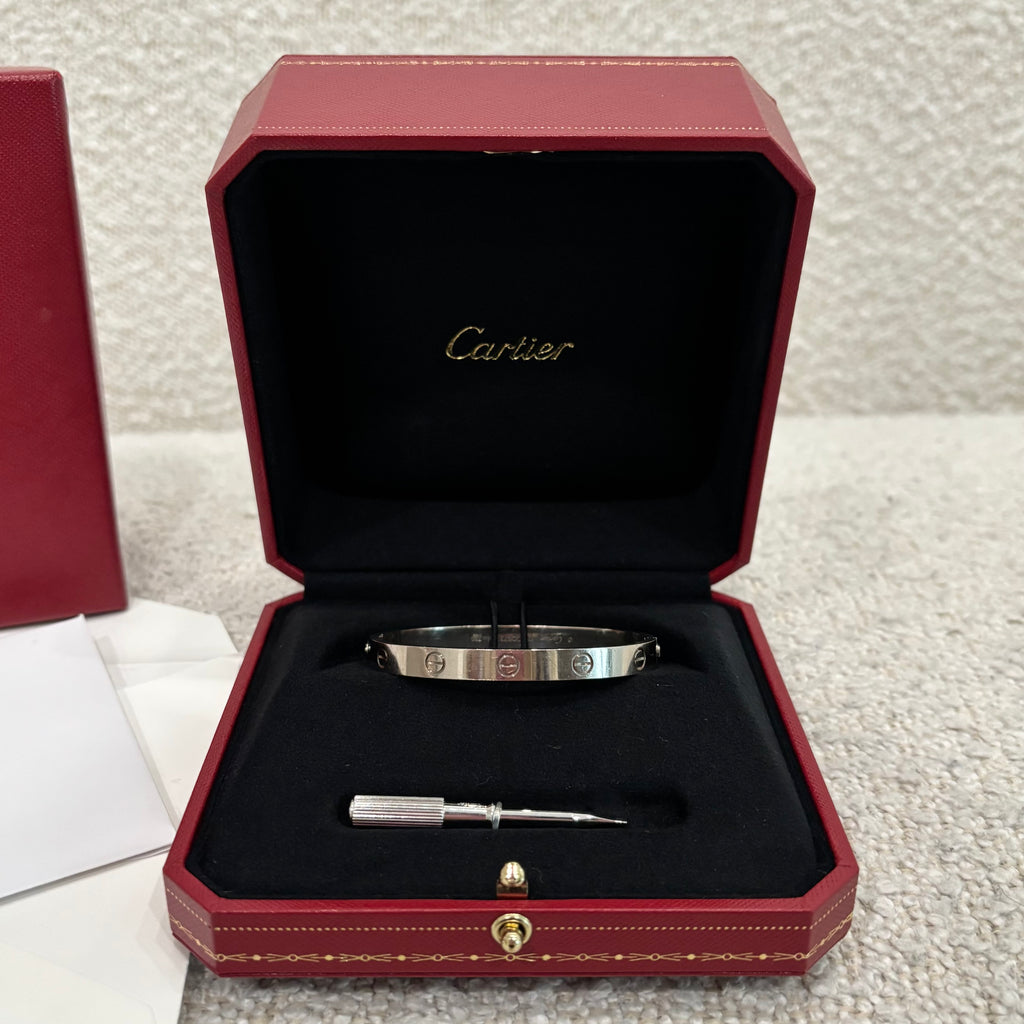 Pre-owned Cartier Love Bracelet White Gold Size 17