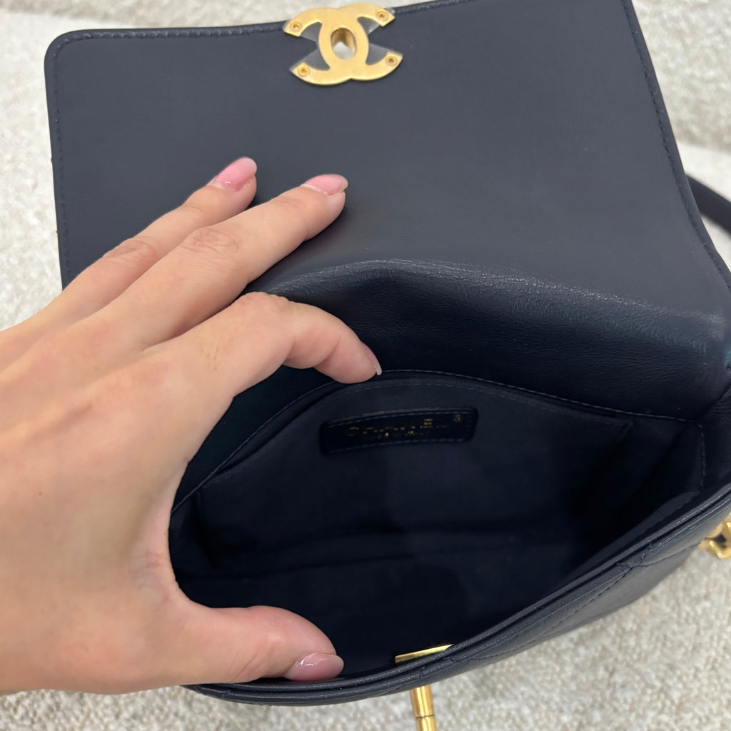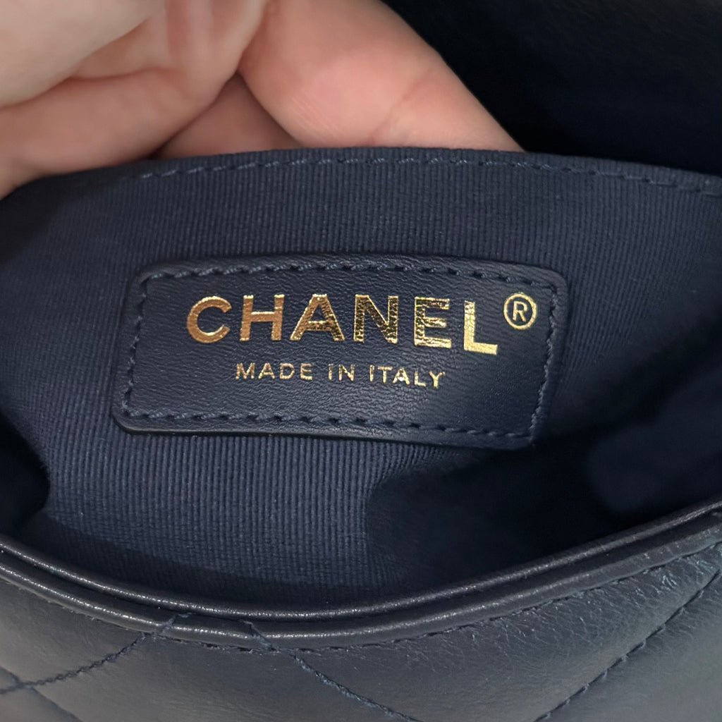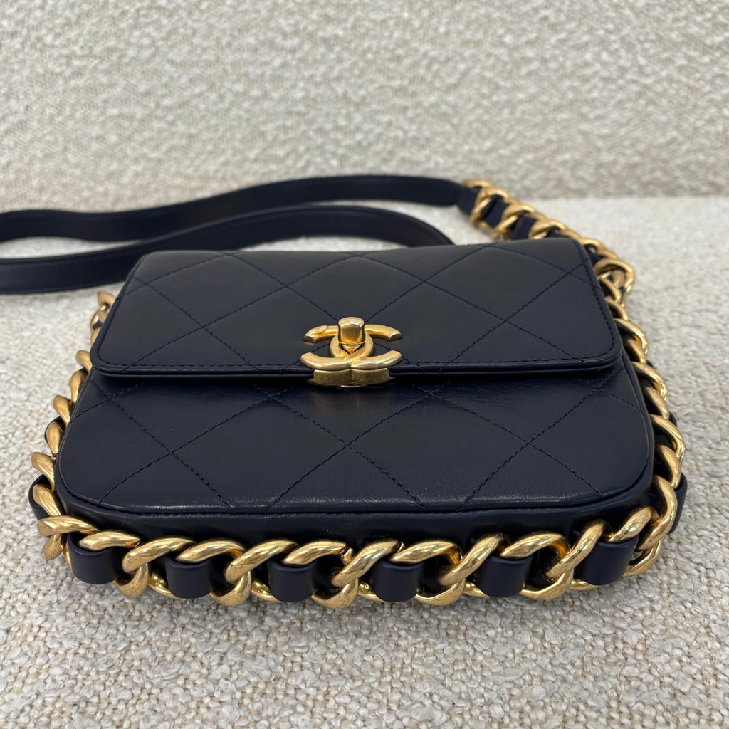 Pre-owned Chanel flap matelassé-quilting chain-strap shoulder bag navy
