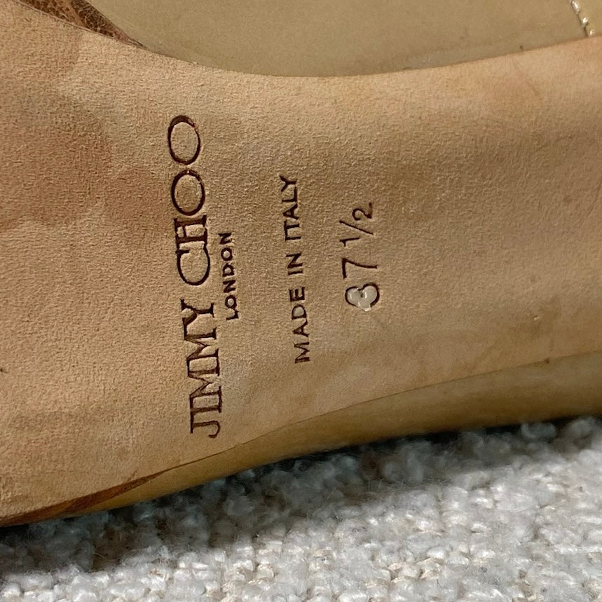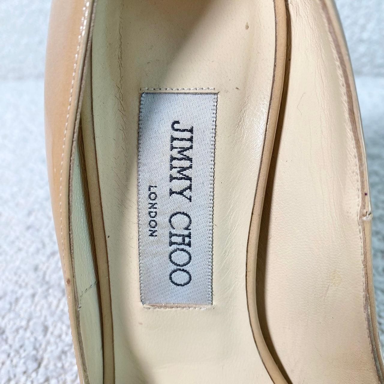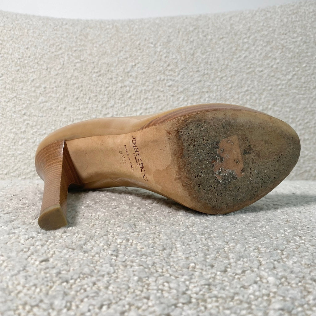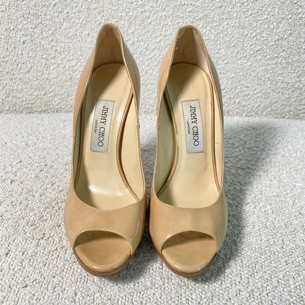 Pre-owned Jimmy Choo Tan Patent Open Toe Platform Heels