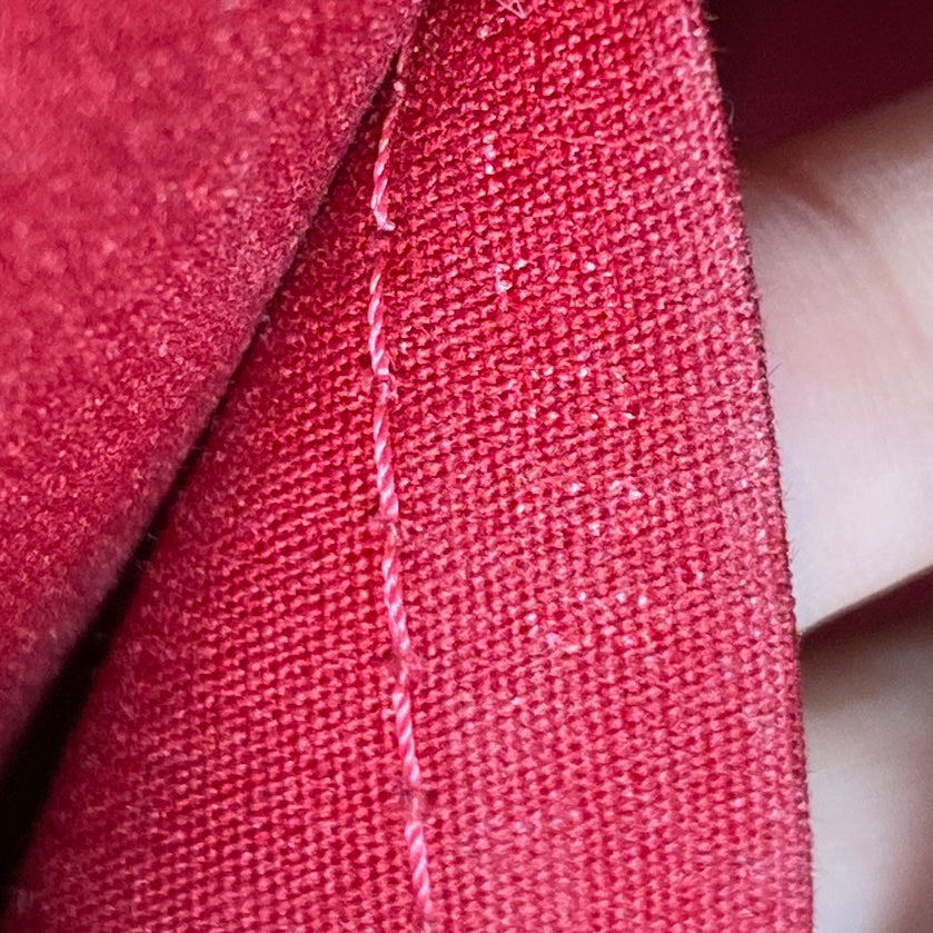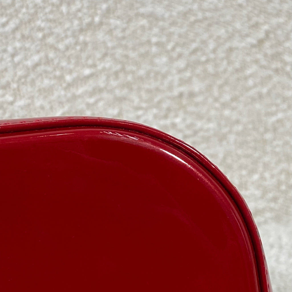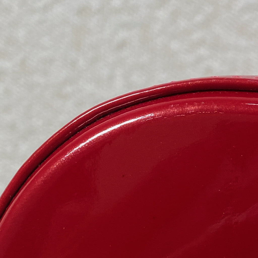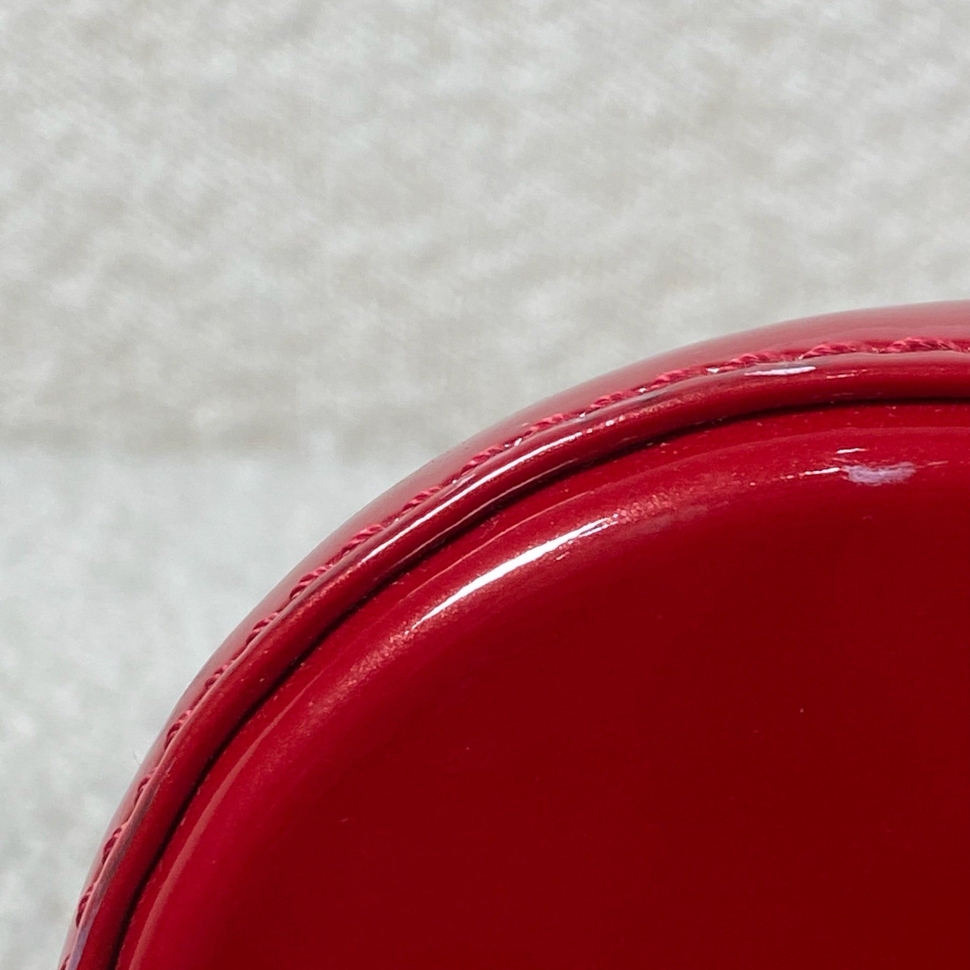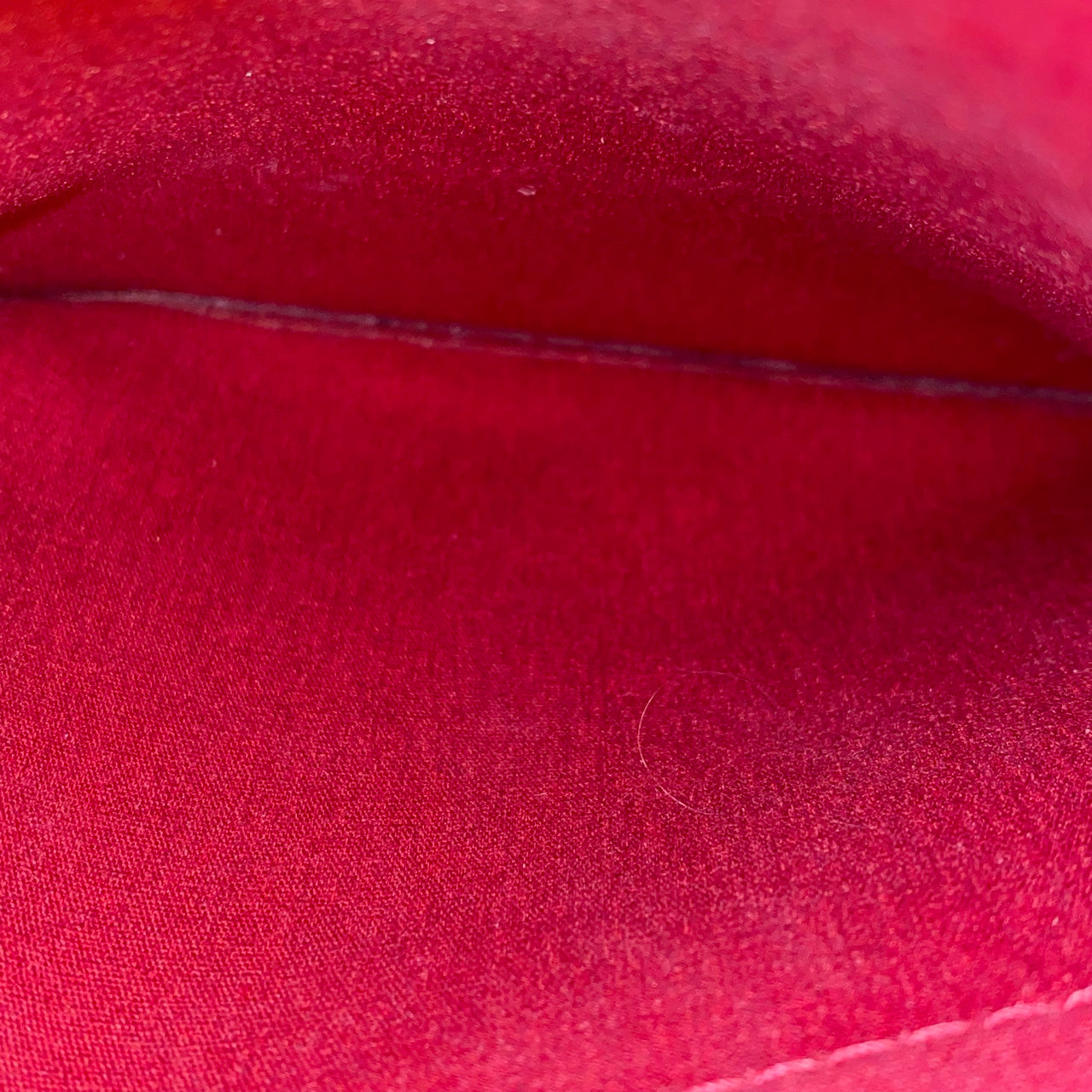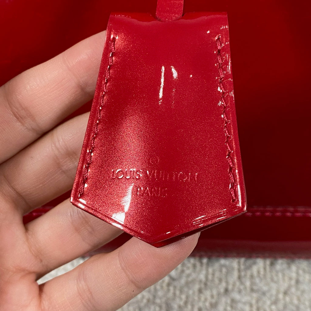 GM size. 15.4 x 11.8 x 7.5 inches. FL5008. Red vernis leather, gold tone hardware.