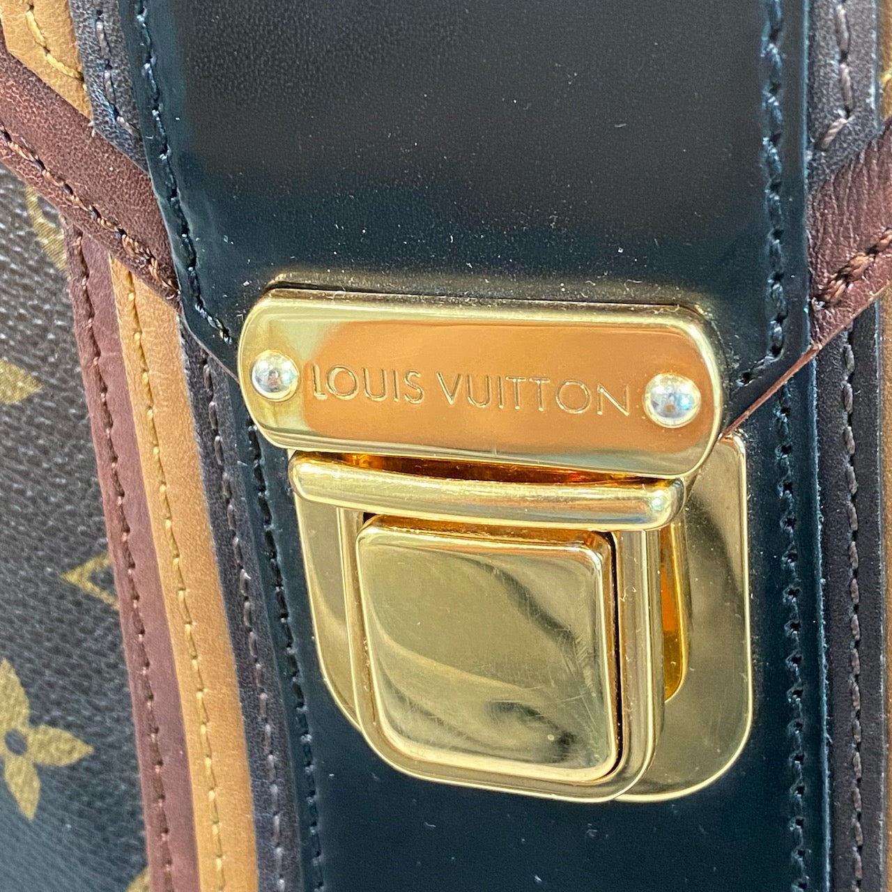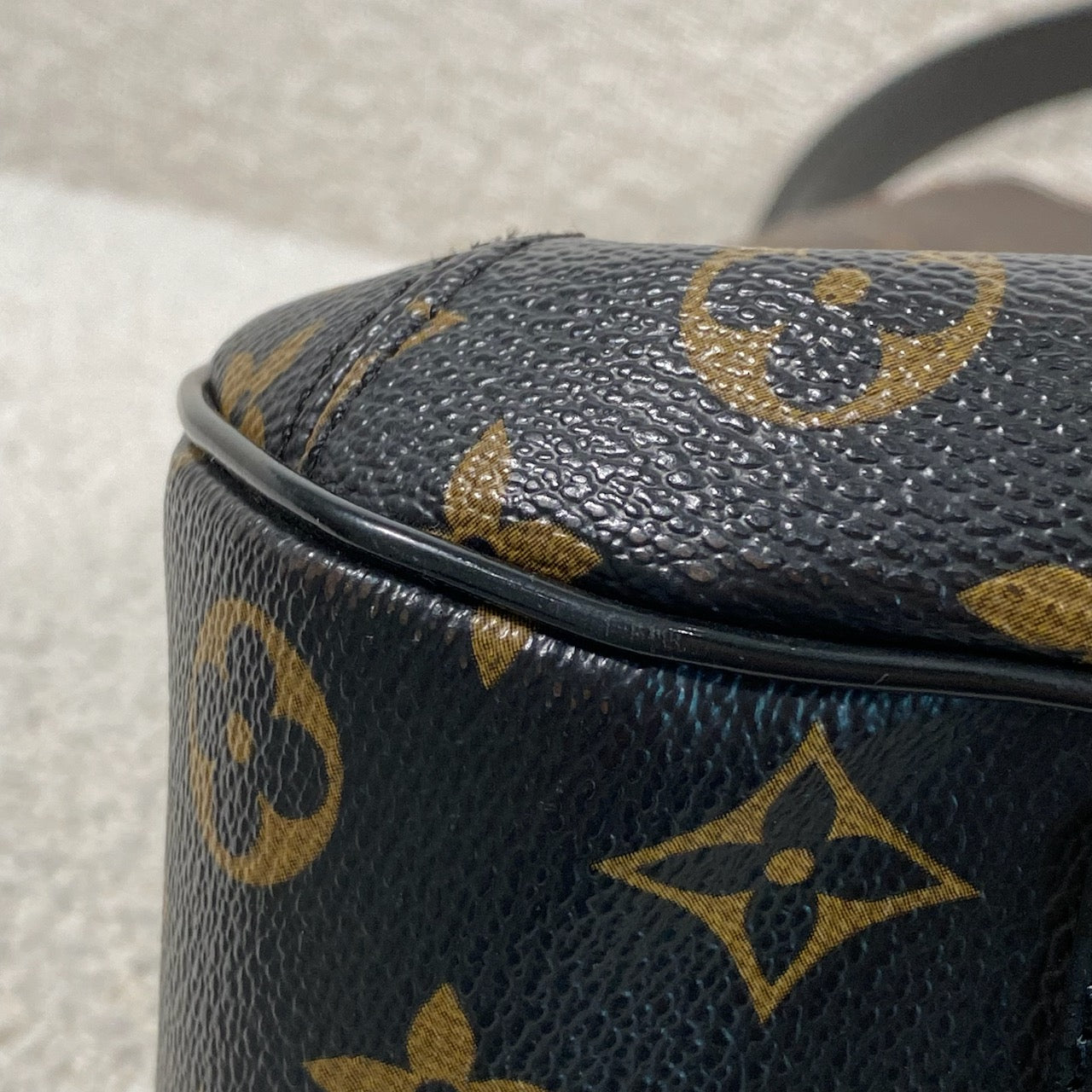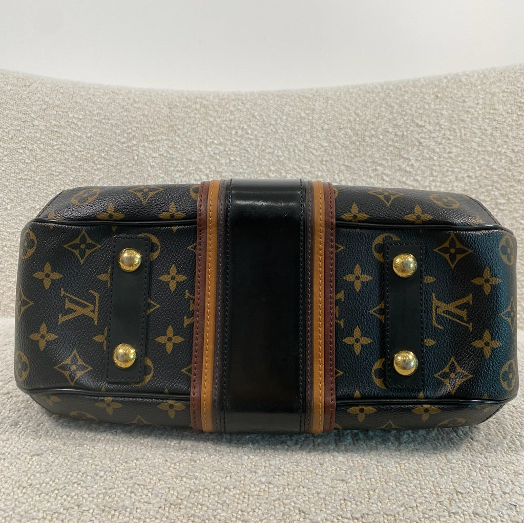 Length: 13in Width: 6in Height: 13.5in Bag depth: 12in Handle drop: 10in. Monogram coated canvas. Gold hardware.