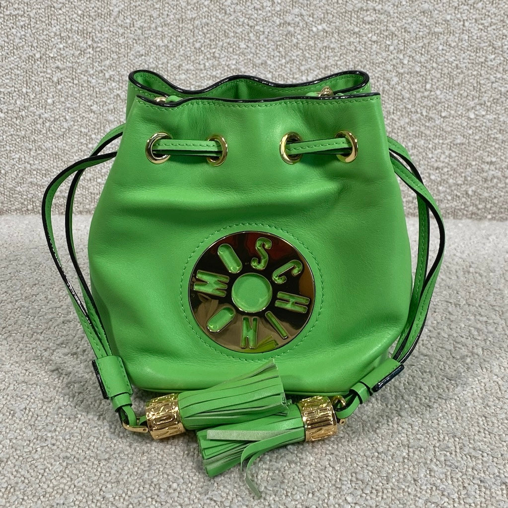 Pre-owned Moschino Green Tassel Logo Bucket Bag