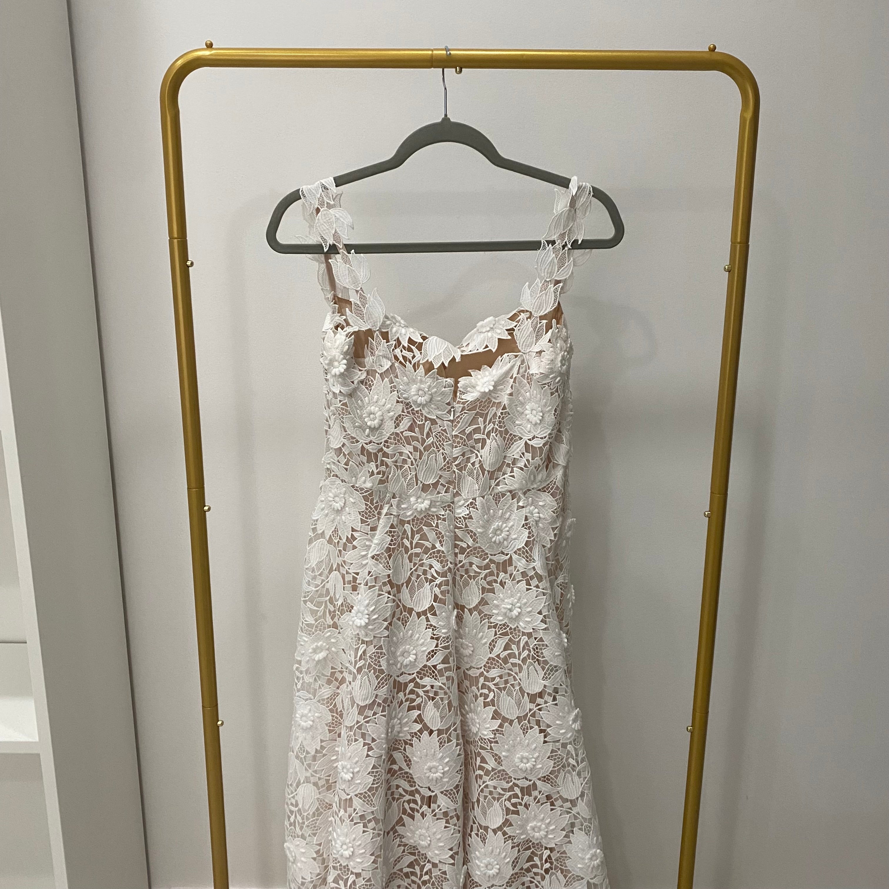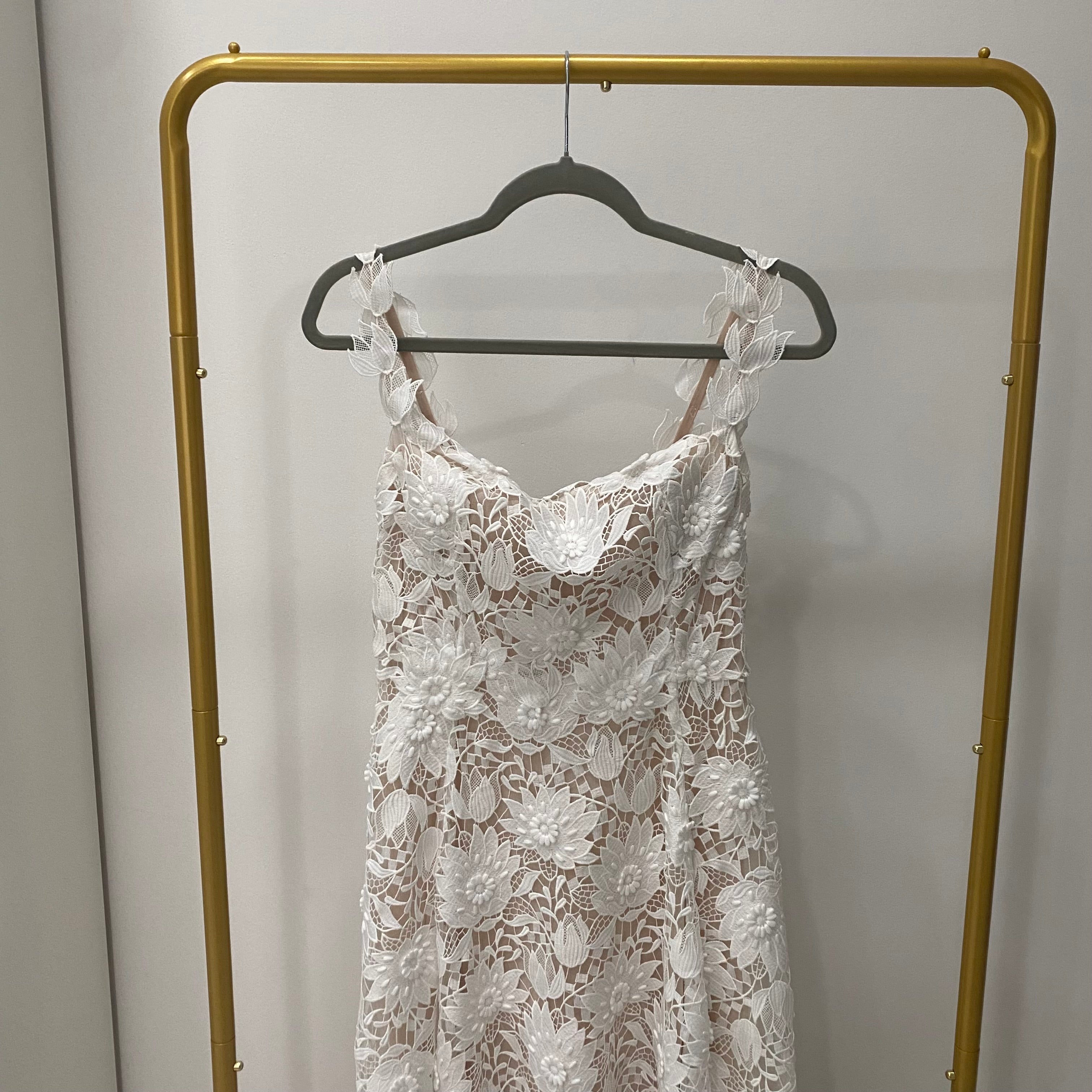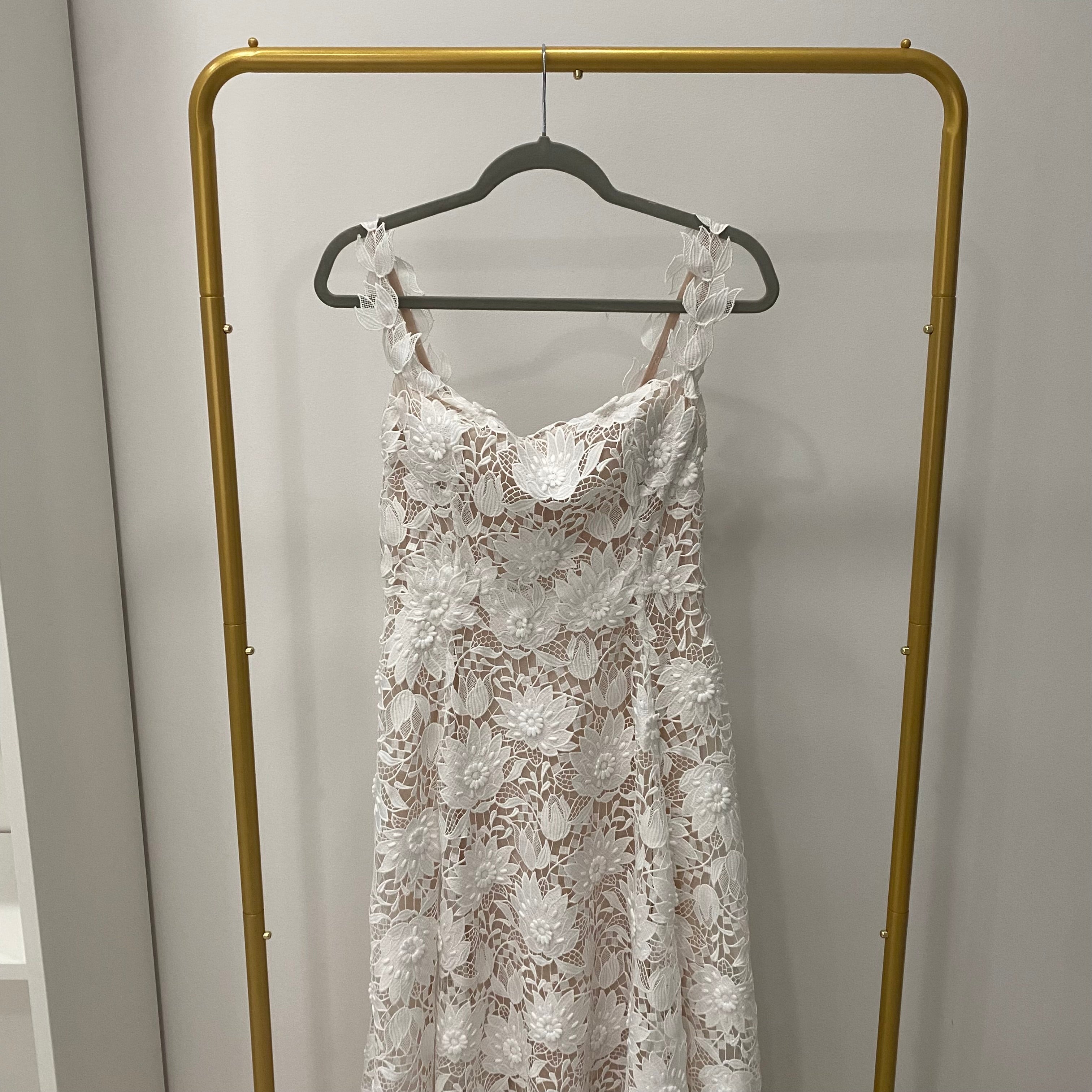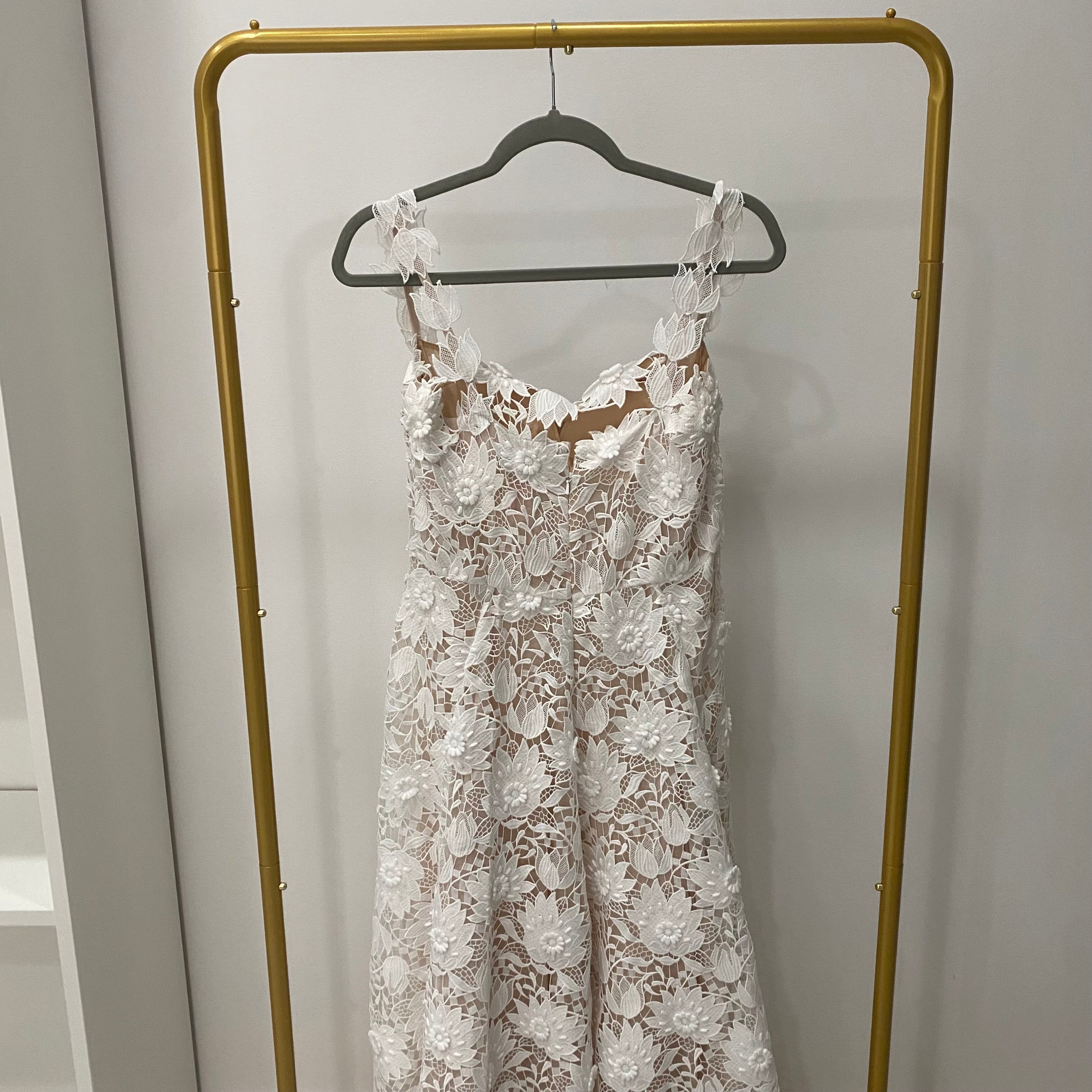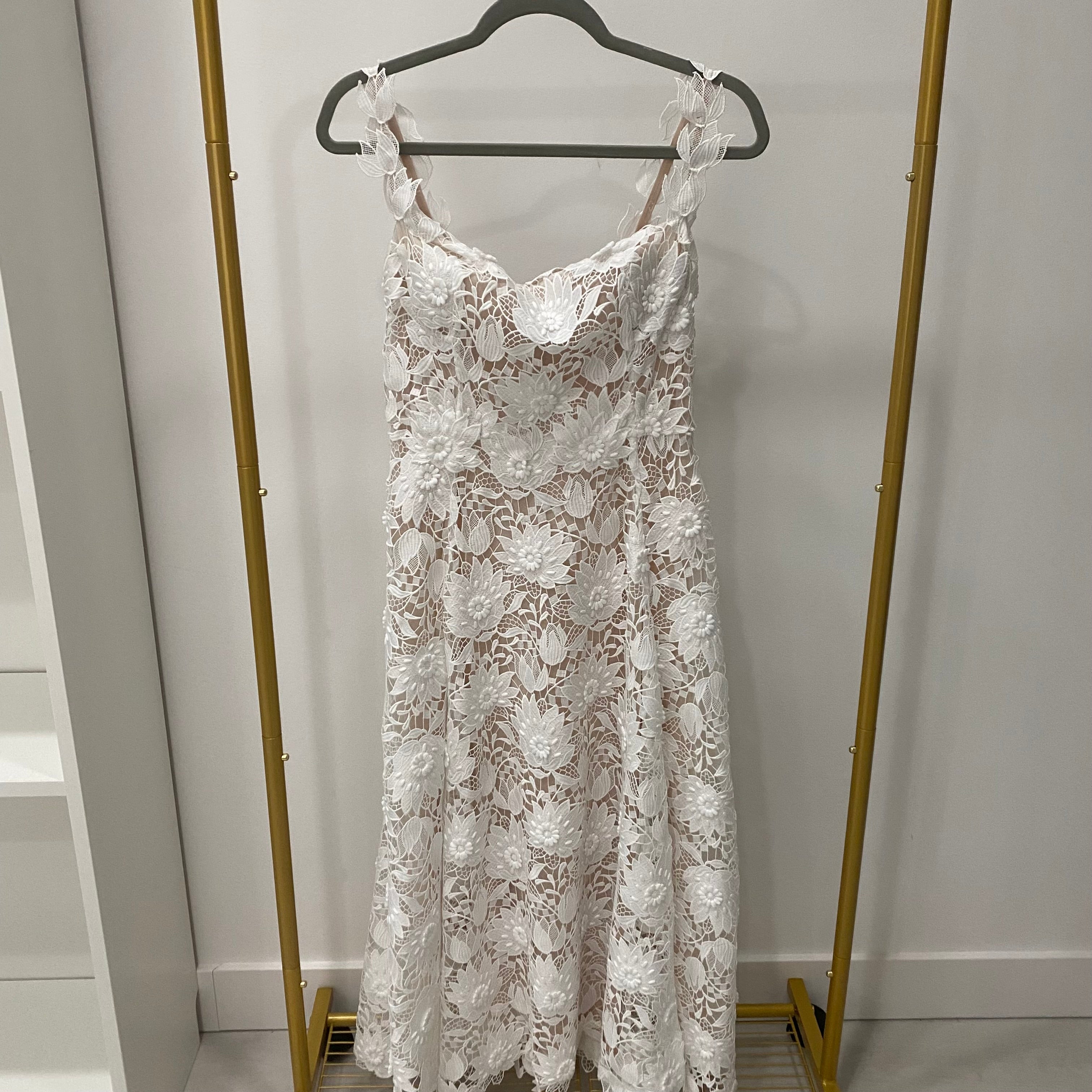 Pre-owned OSCAR DE LA RENTA Women's White Water Lily Guipure Lace Dress Size 8