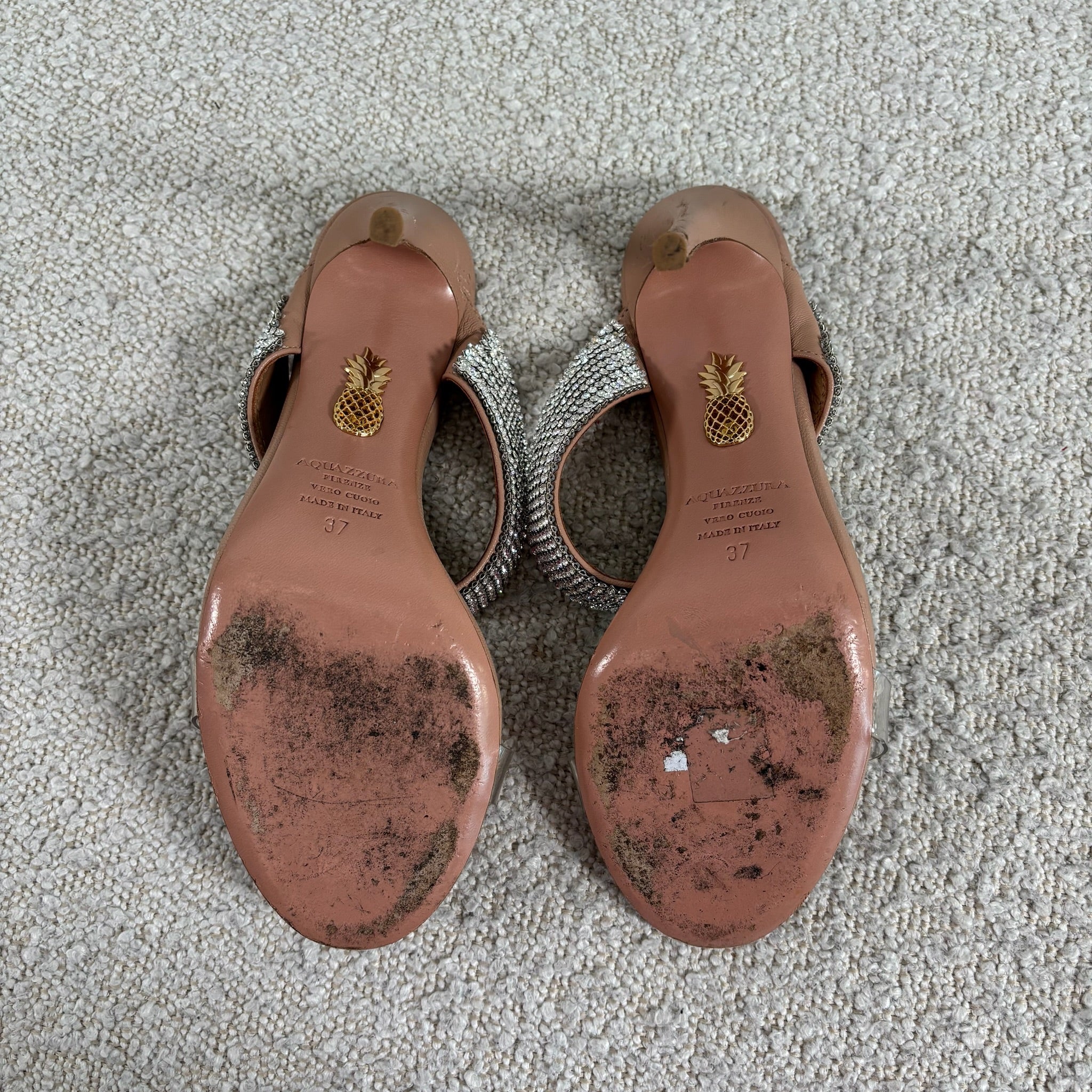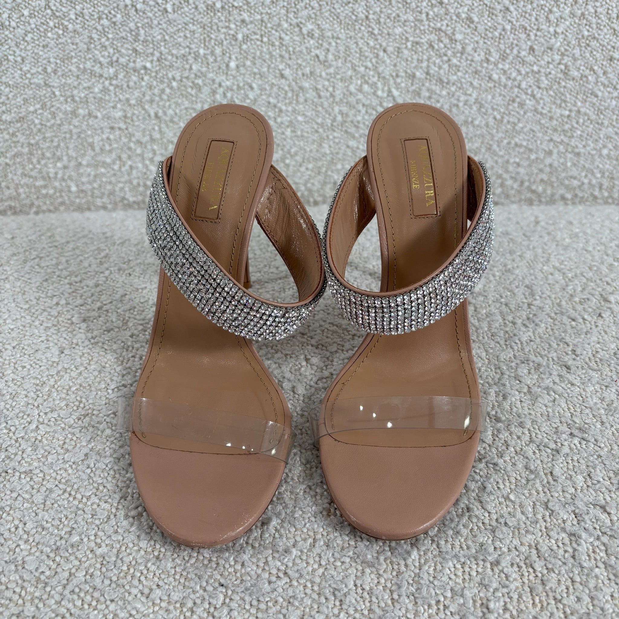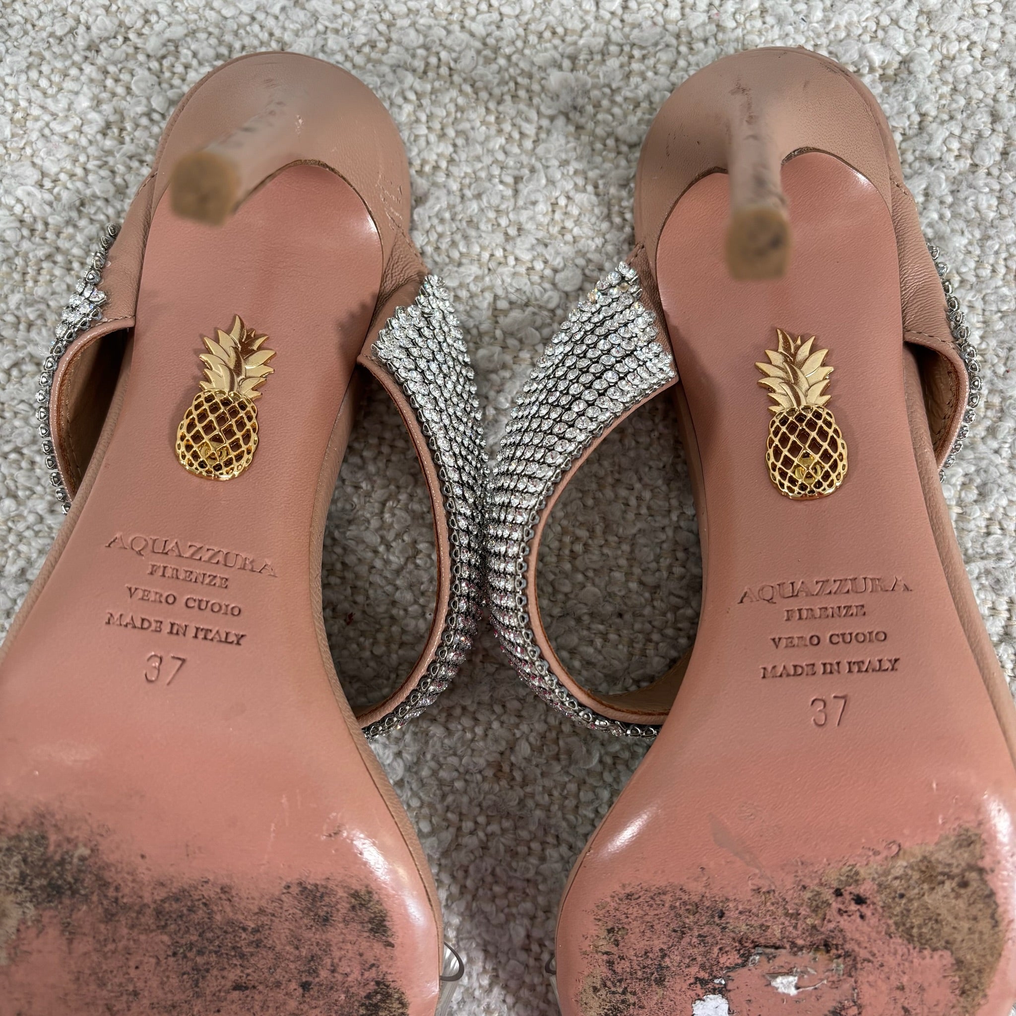 Pre-owned Aquazzura Nude Crystal Embellished Heels Size 37