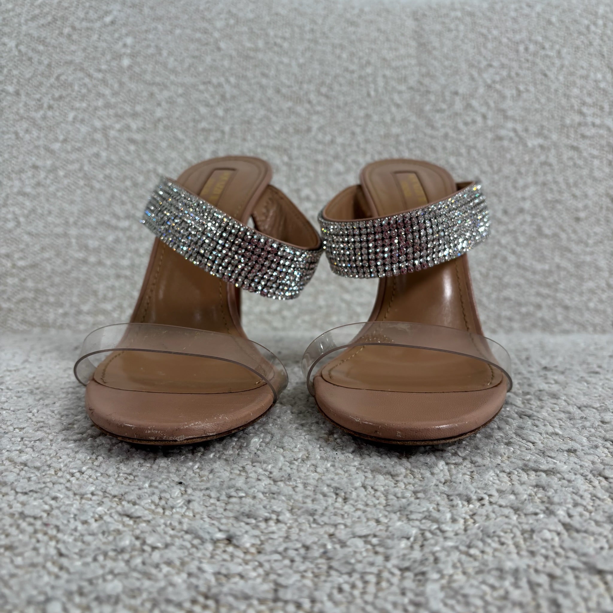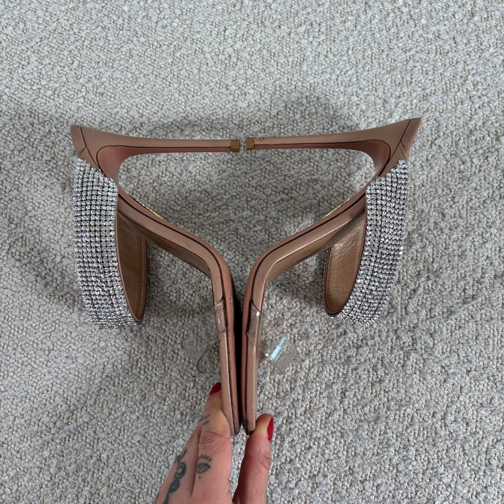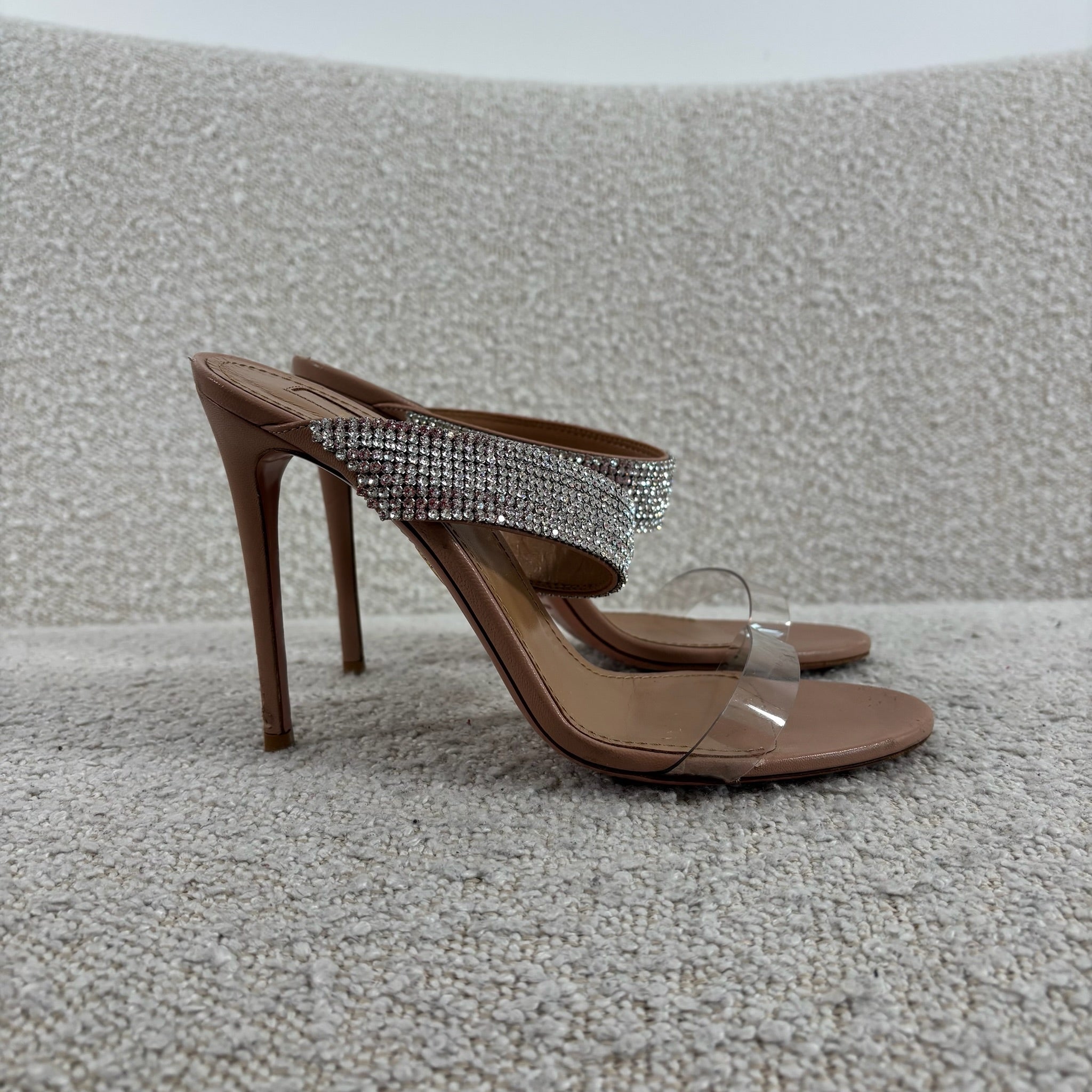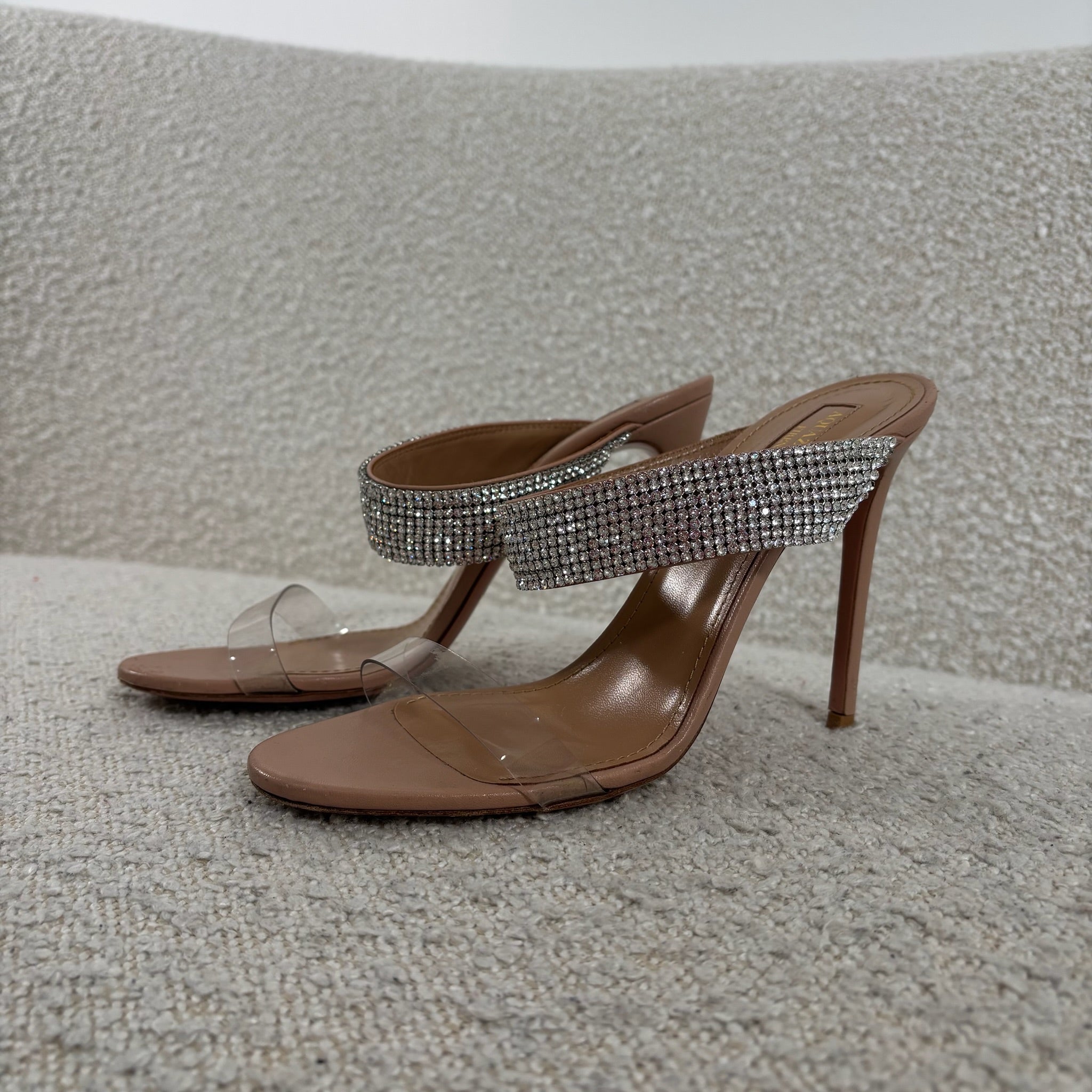 Pre-owned Aquazzura Nude Crystal Embellished Heels Size 37