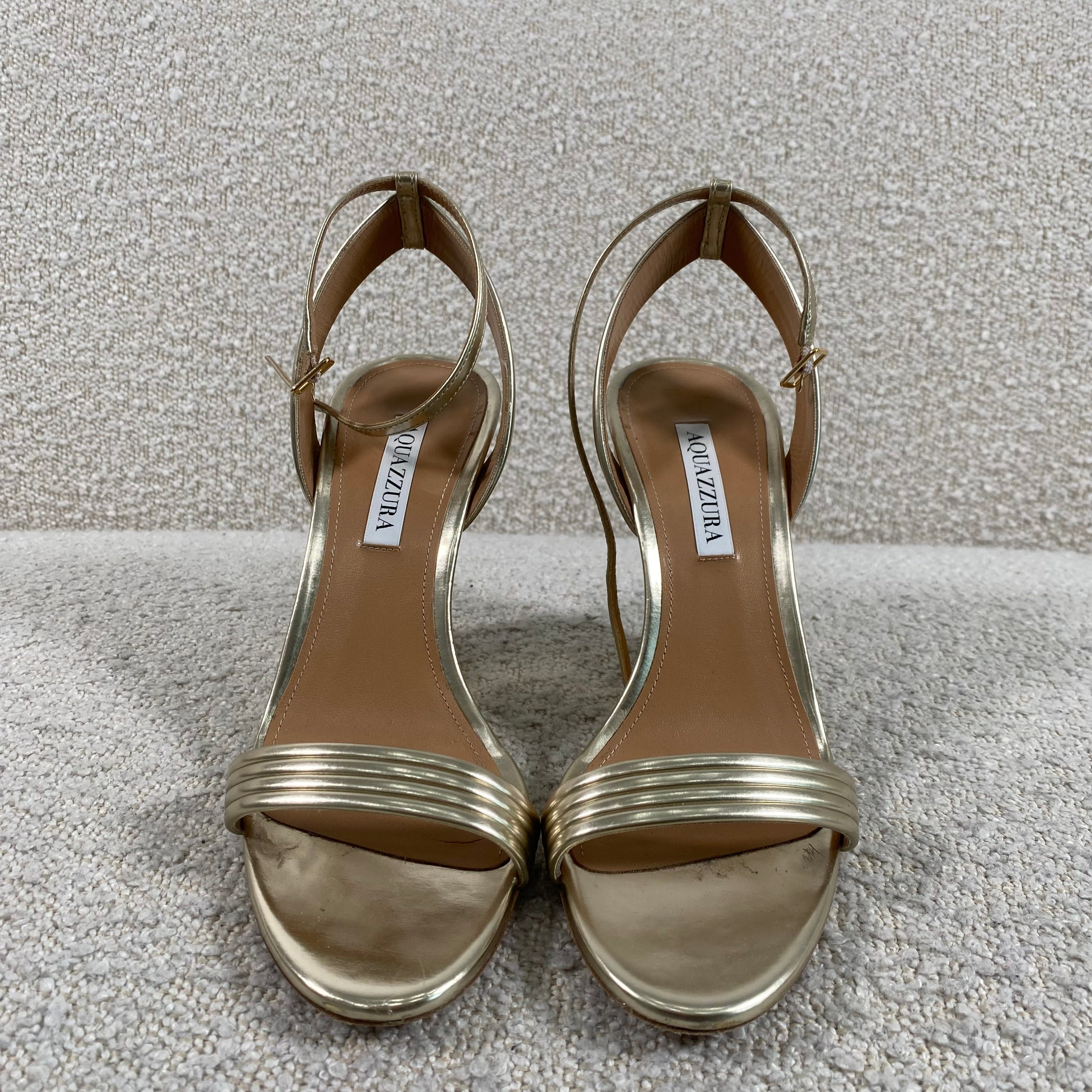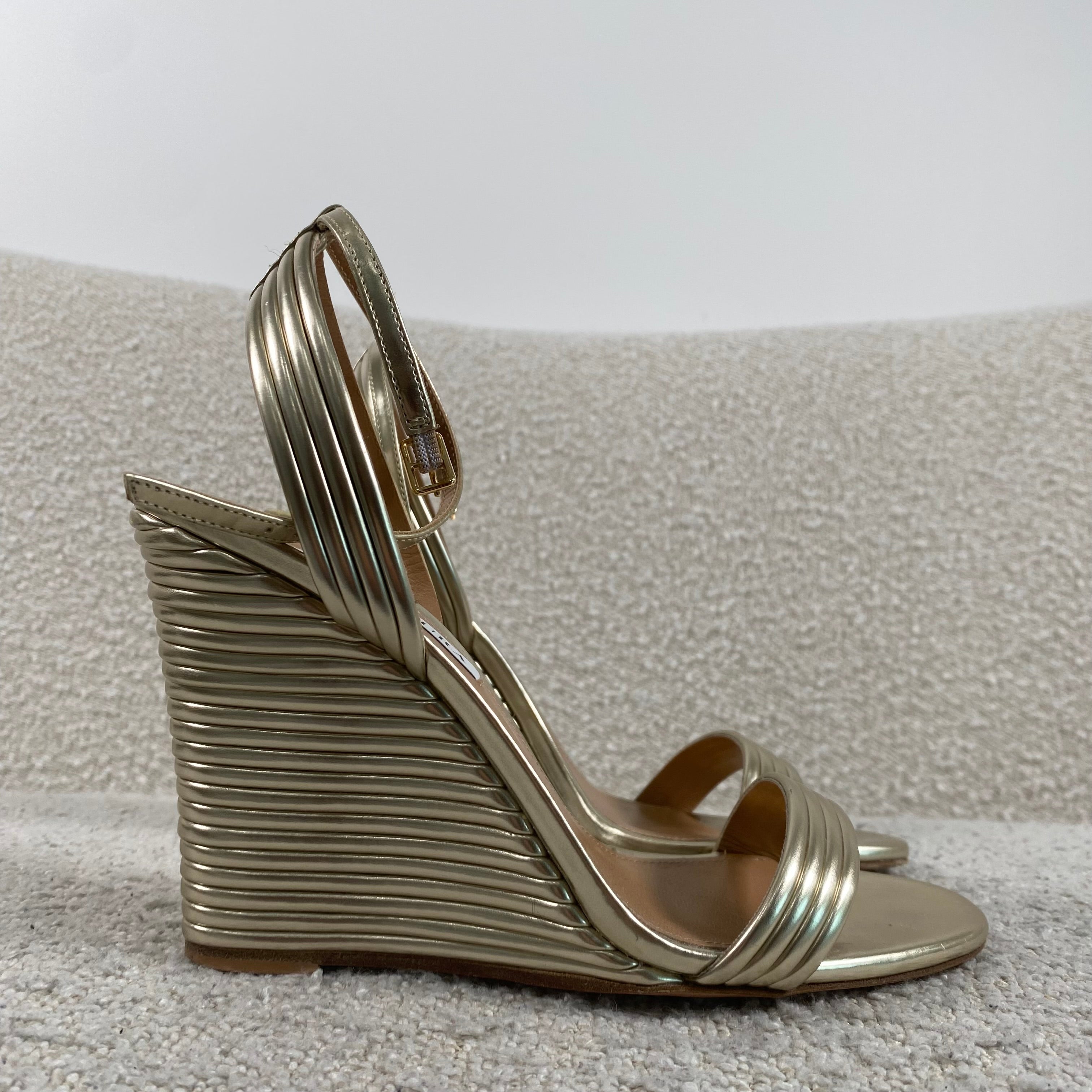 Pre-owned Aquazzura Wow 95 Wedge Sandals 38 Gold