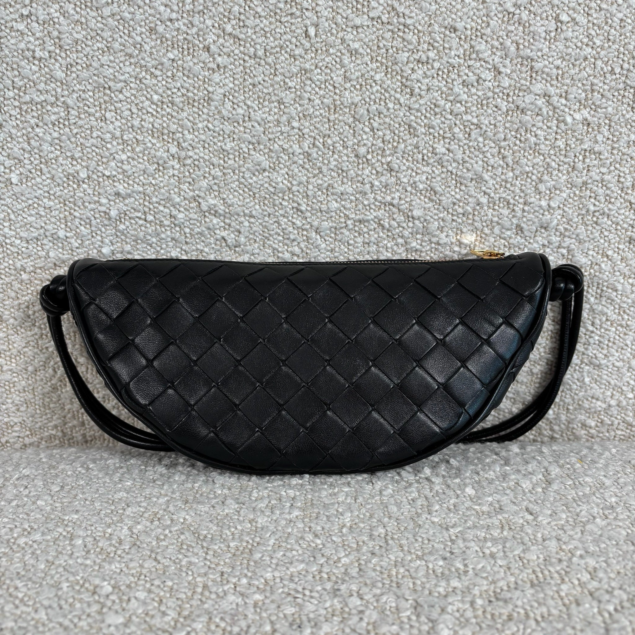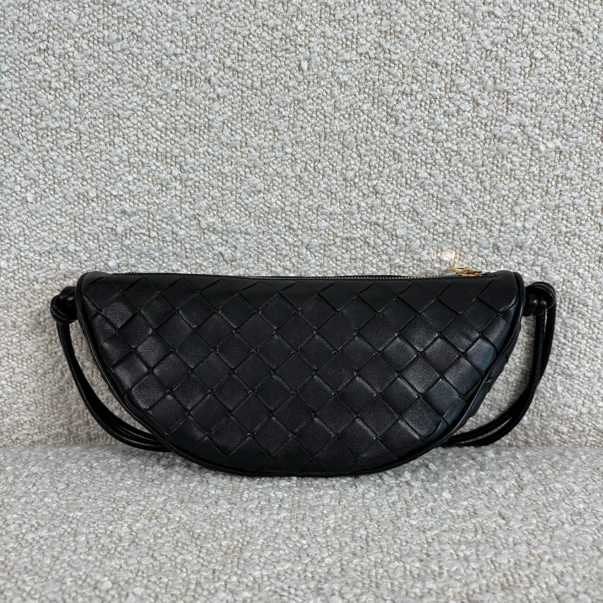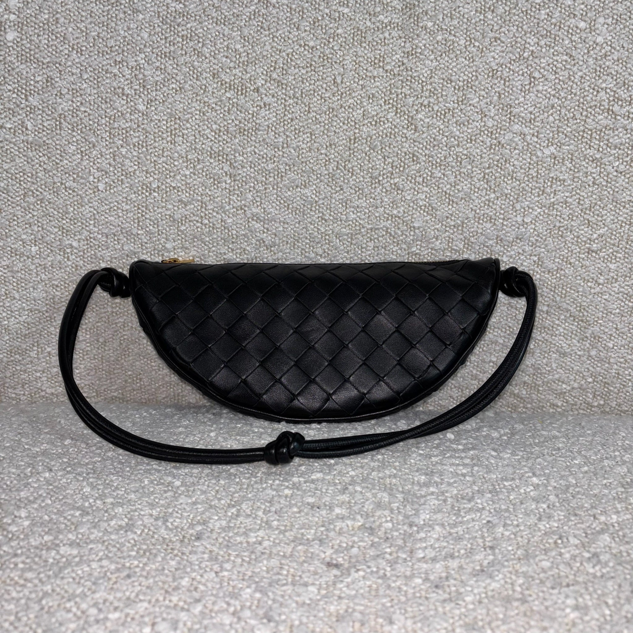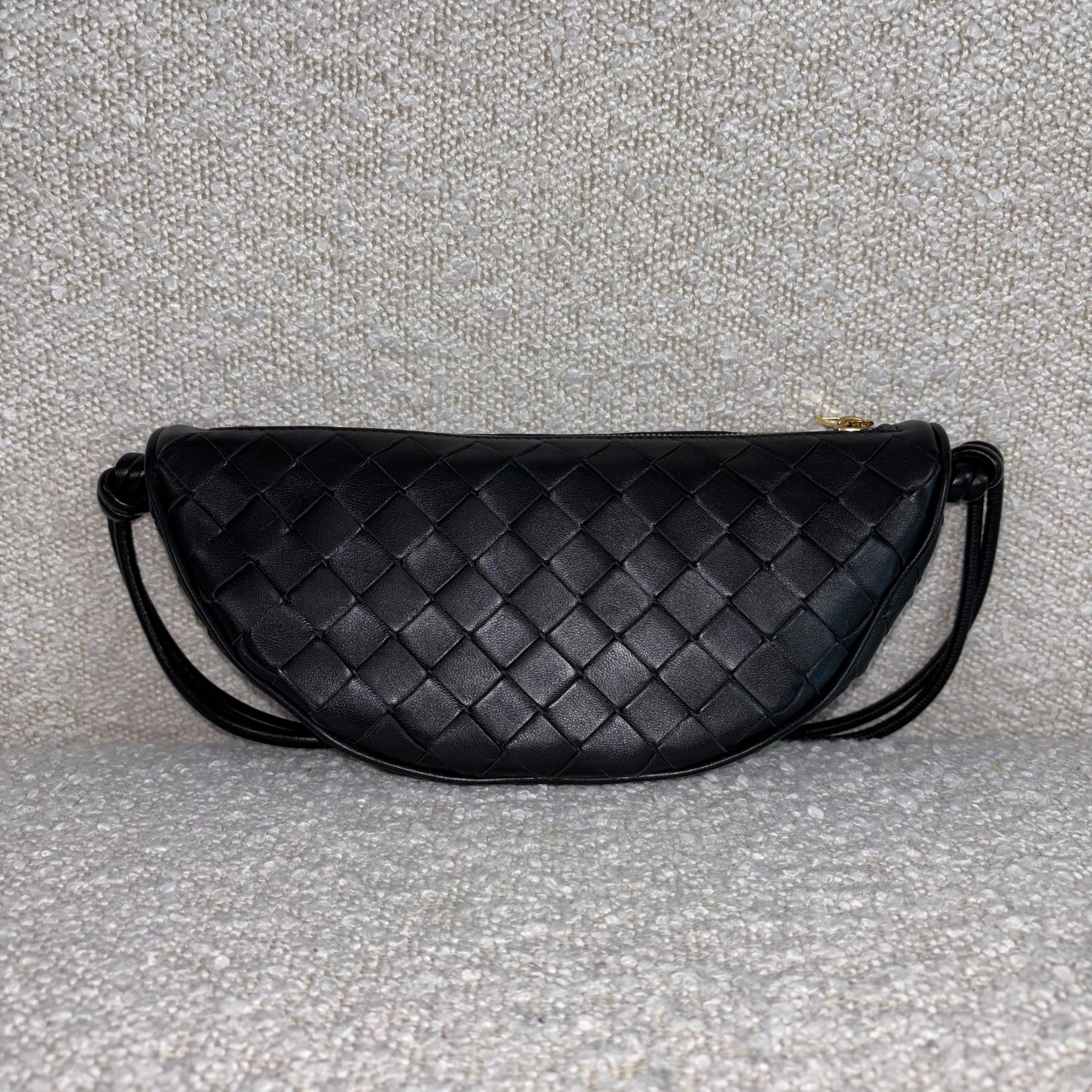 Crafted in black Intrecciato leather with gold-tone hardware.