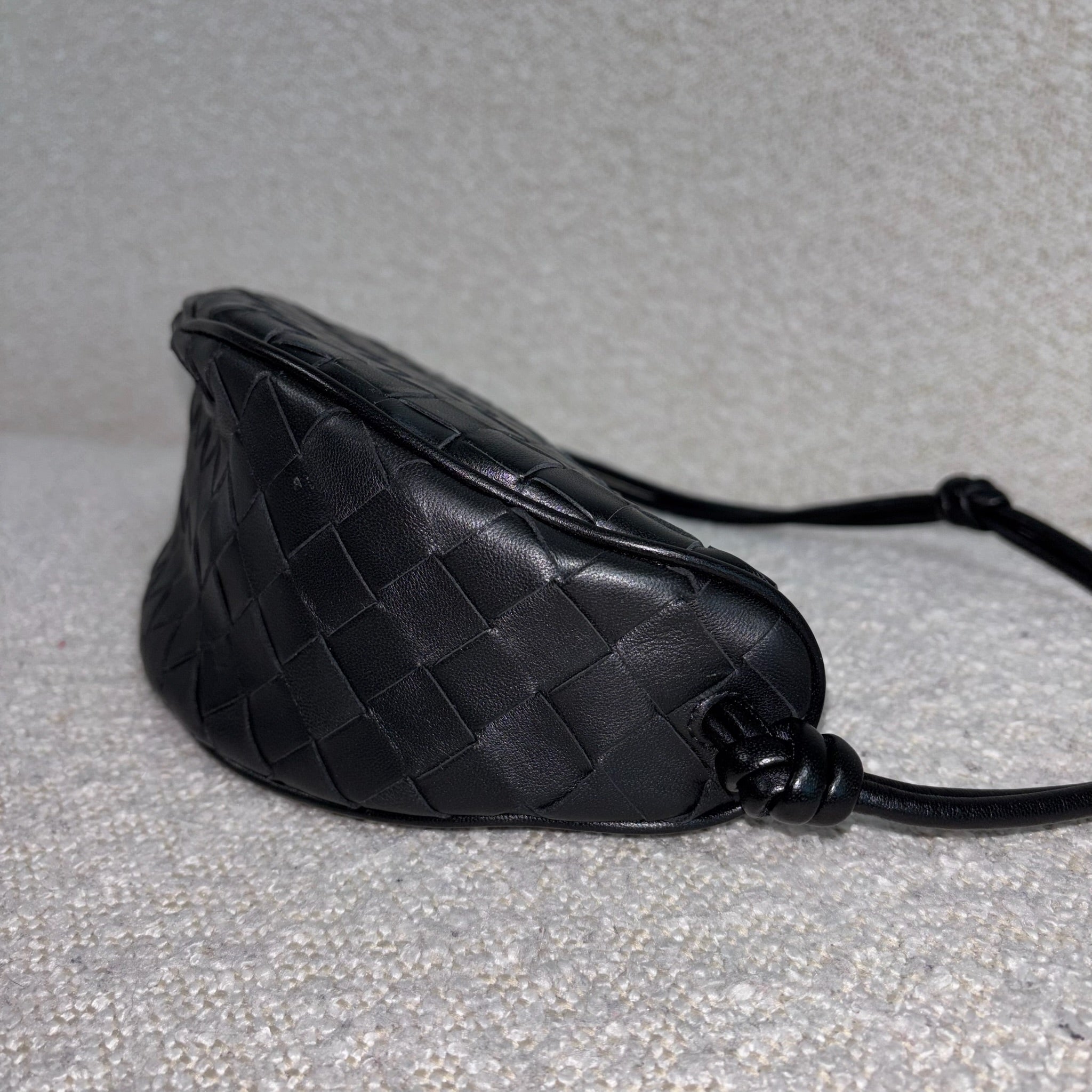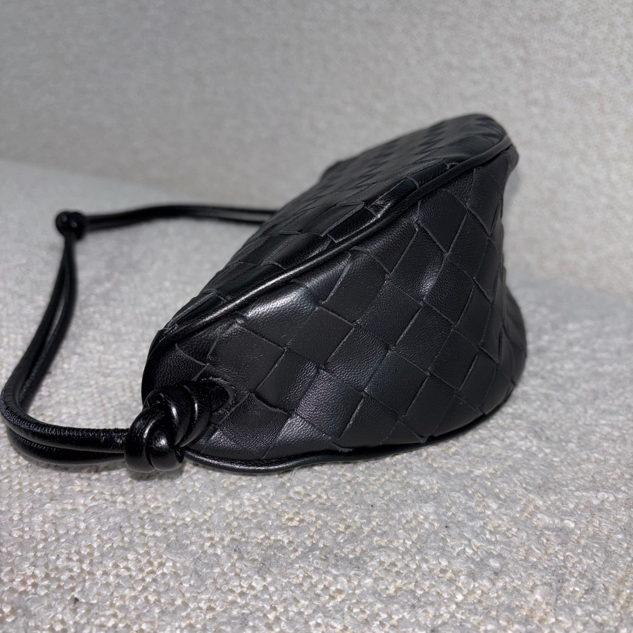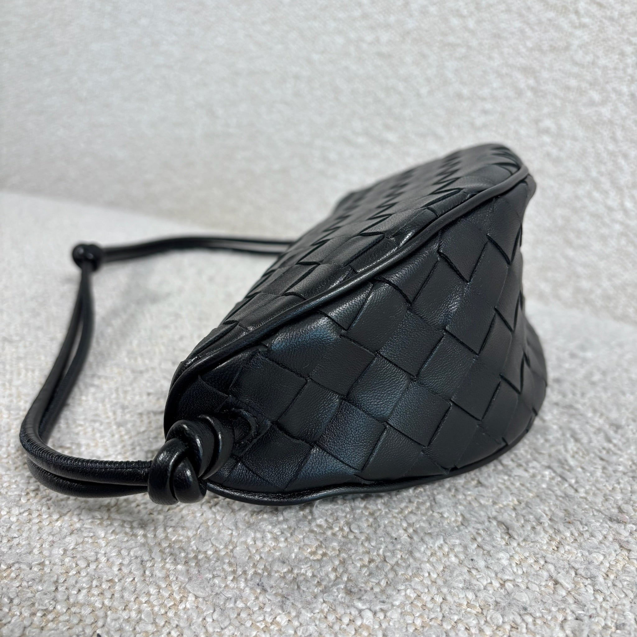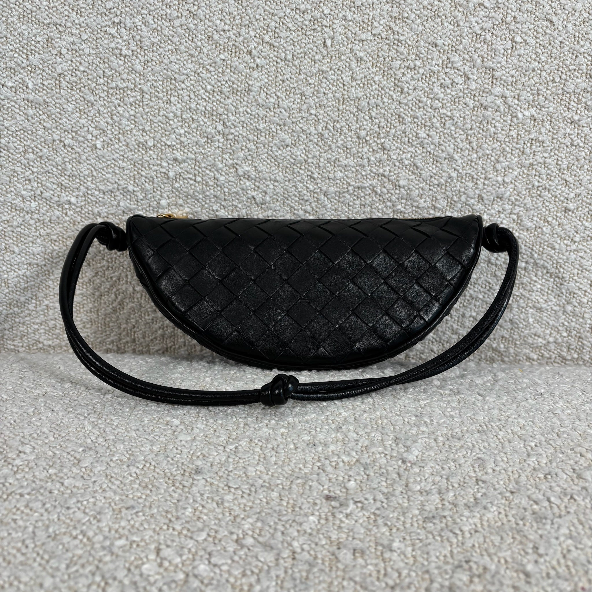 Crafted in black Intrecciato leather with gold-tone hardware.