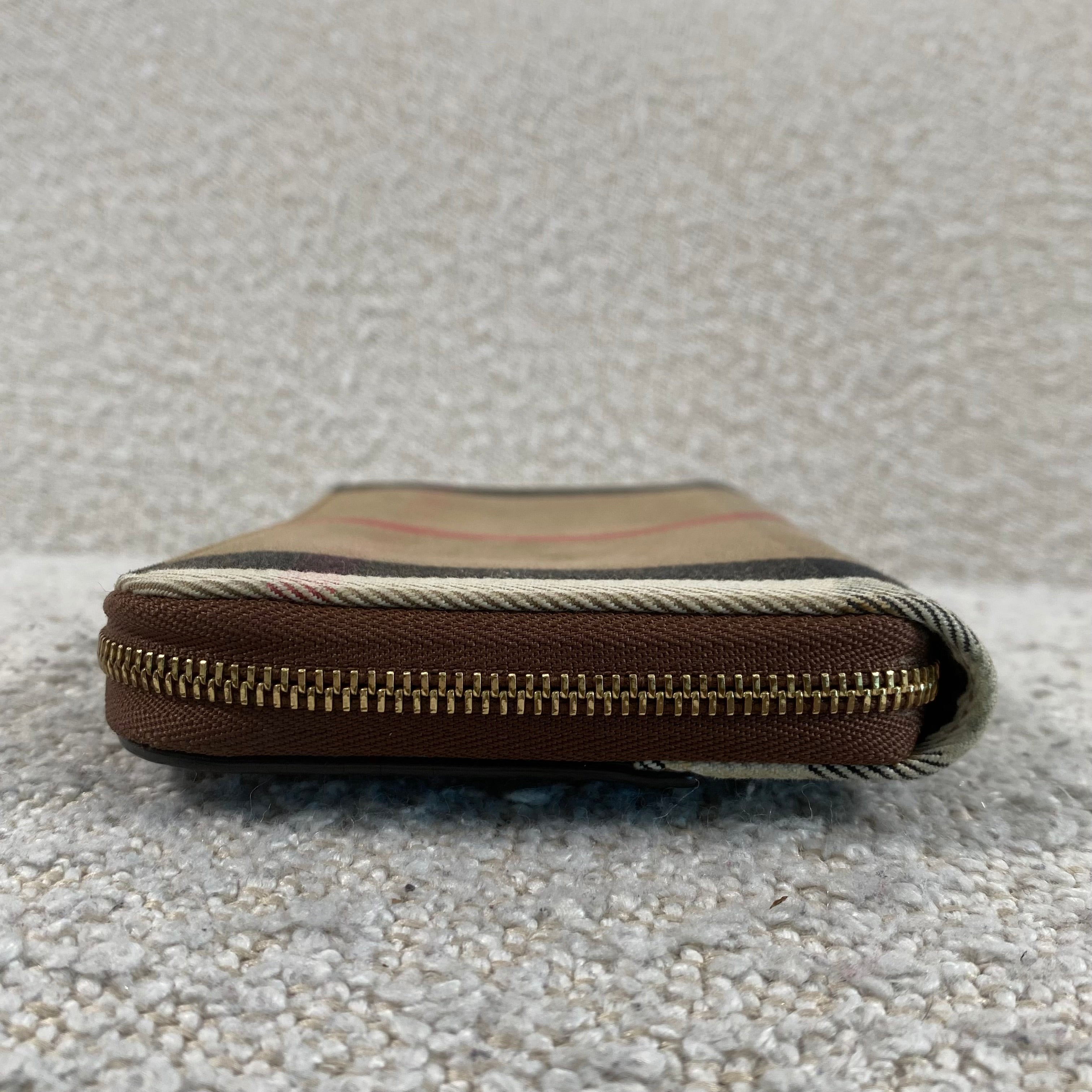 Pre-owned Burberry Check Zip Around Wallet