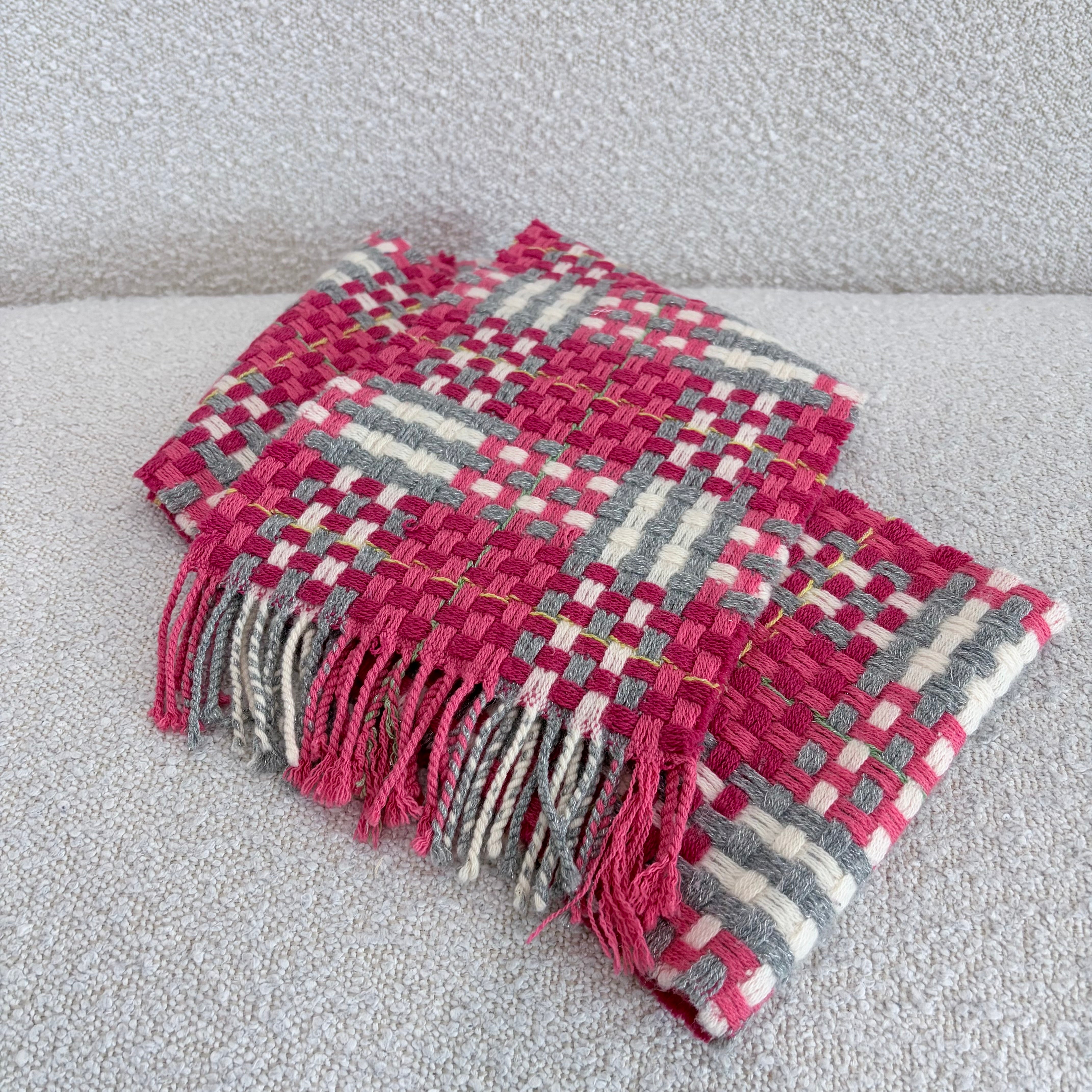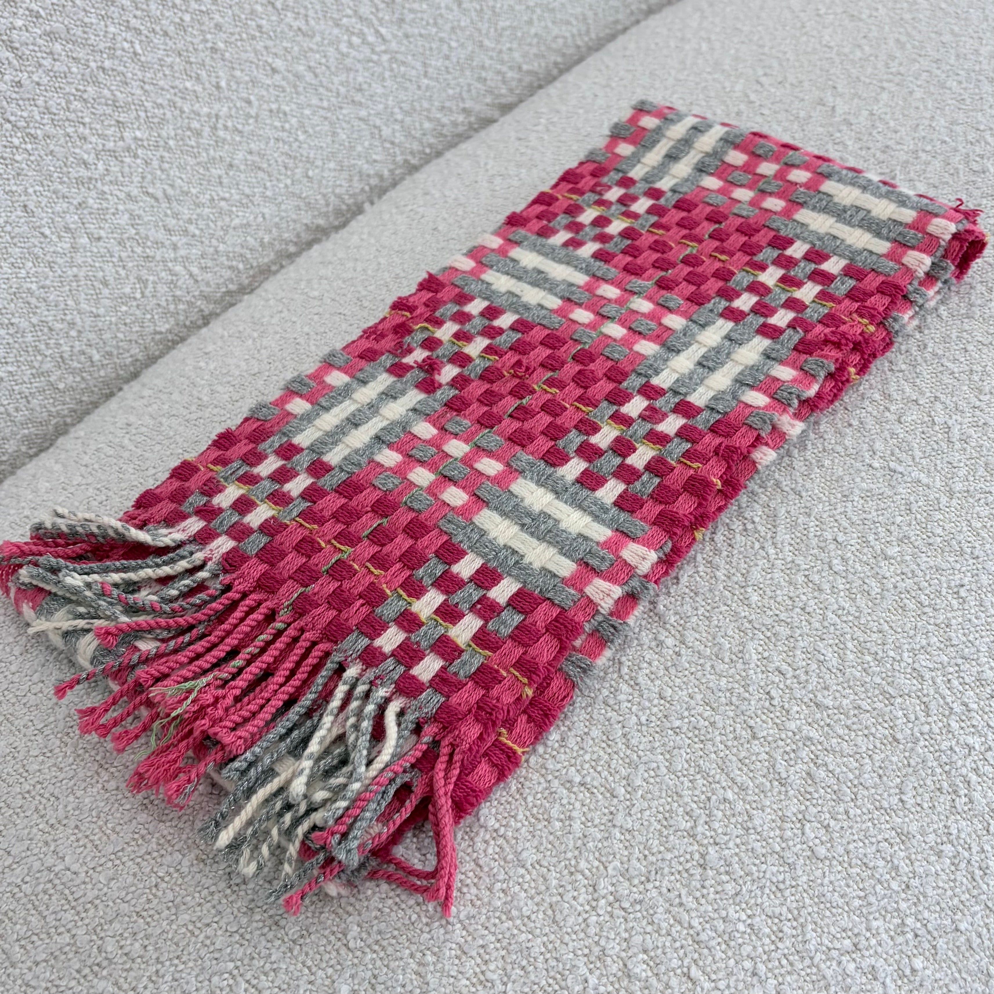 Pre-owned Burberry woven multicolour basket-check fringe scarf