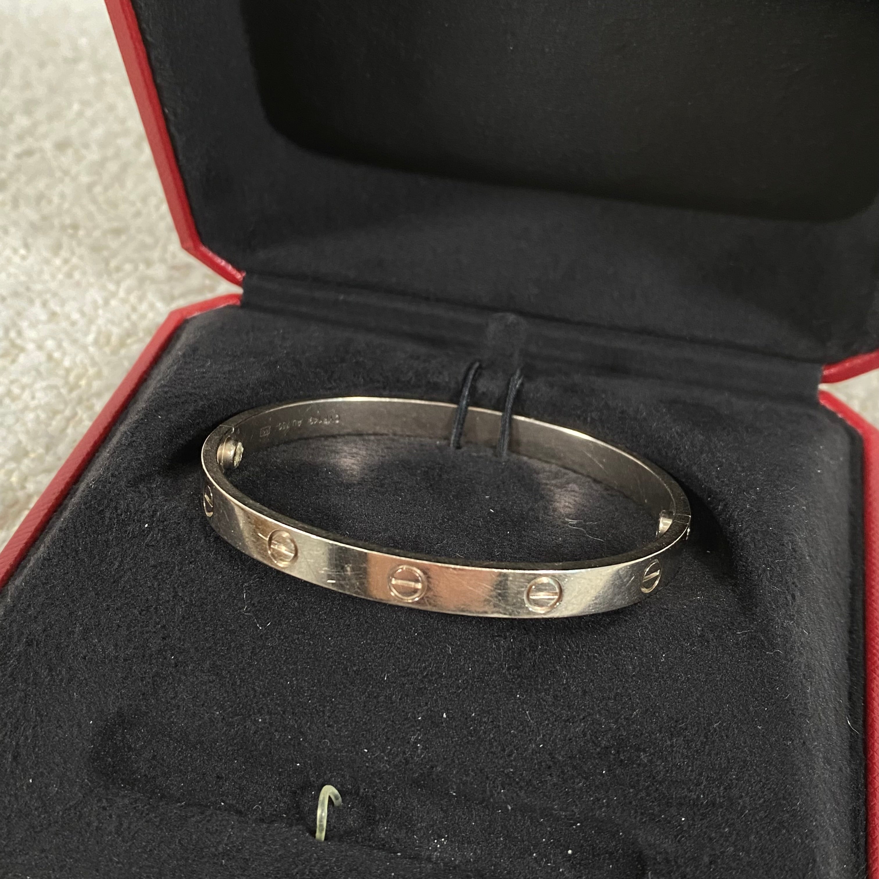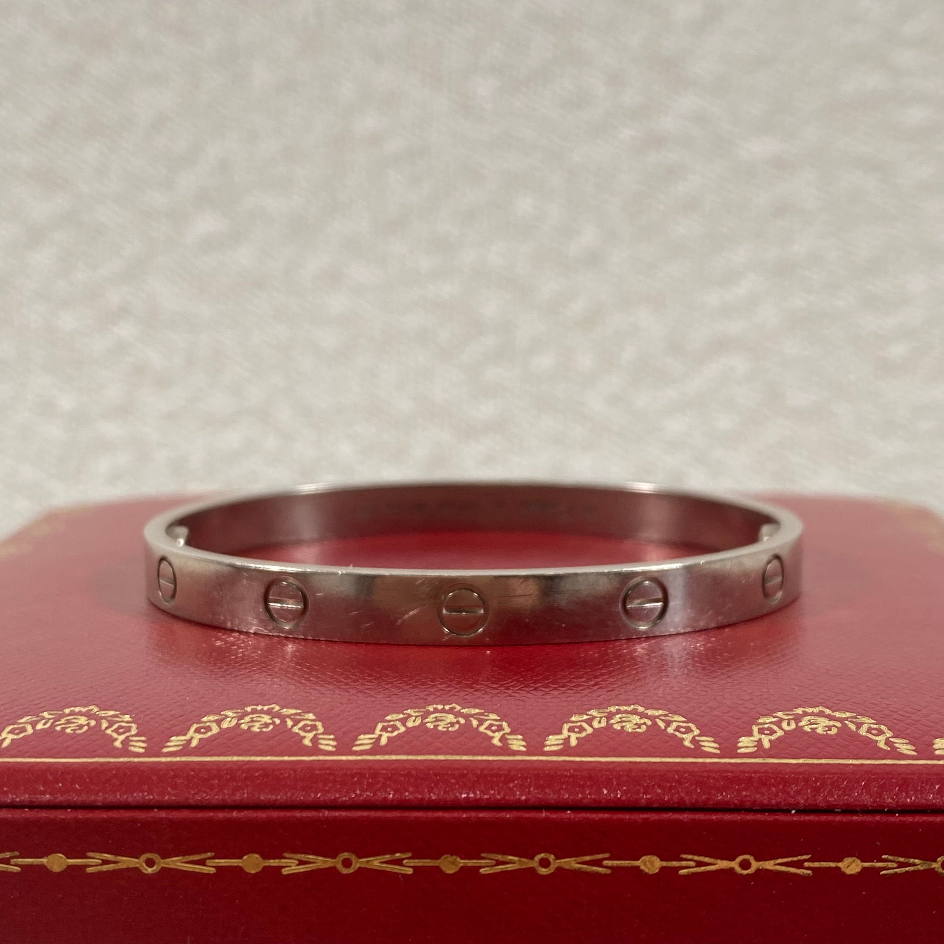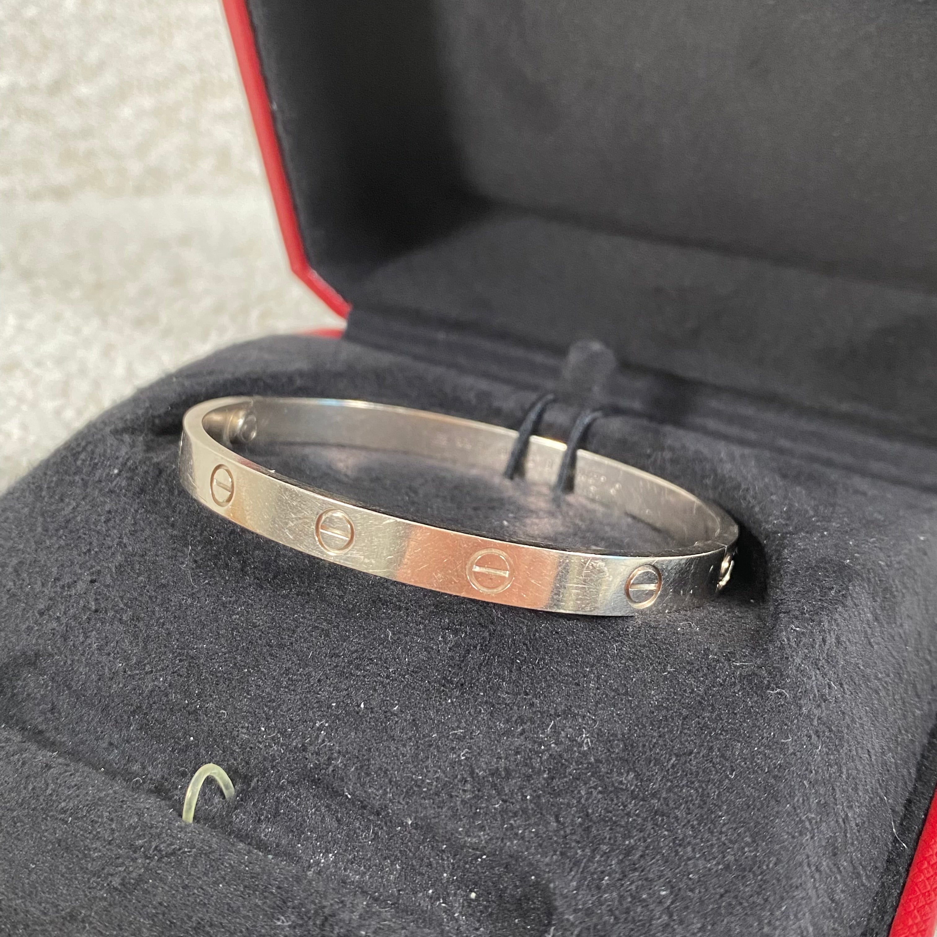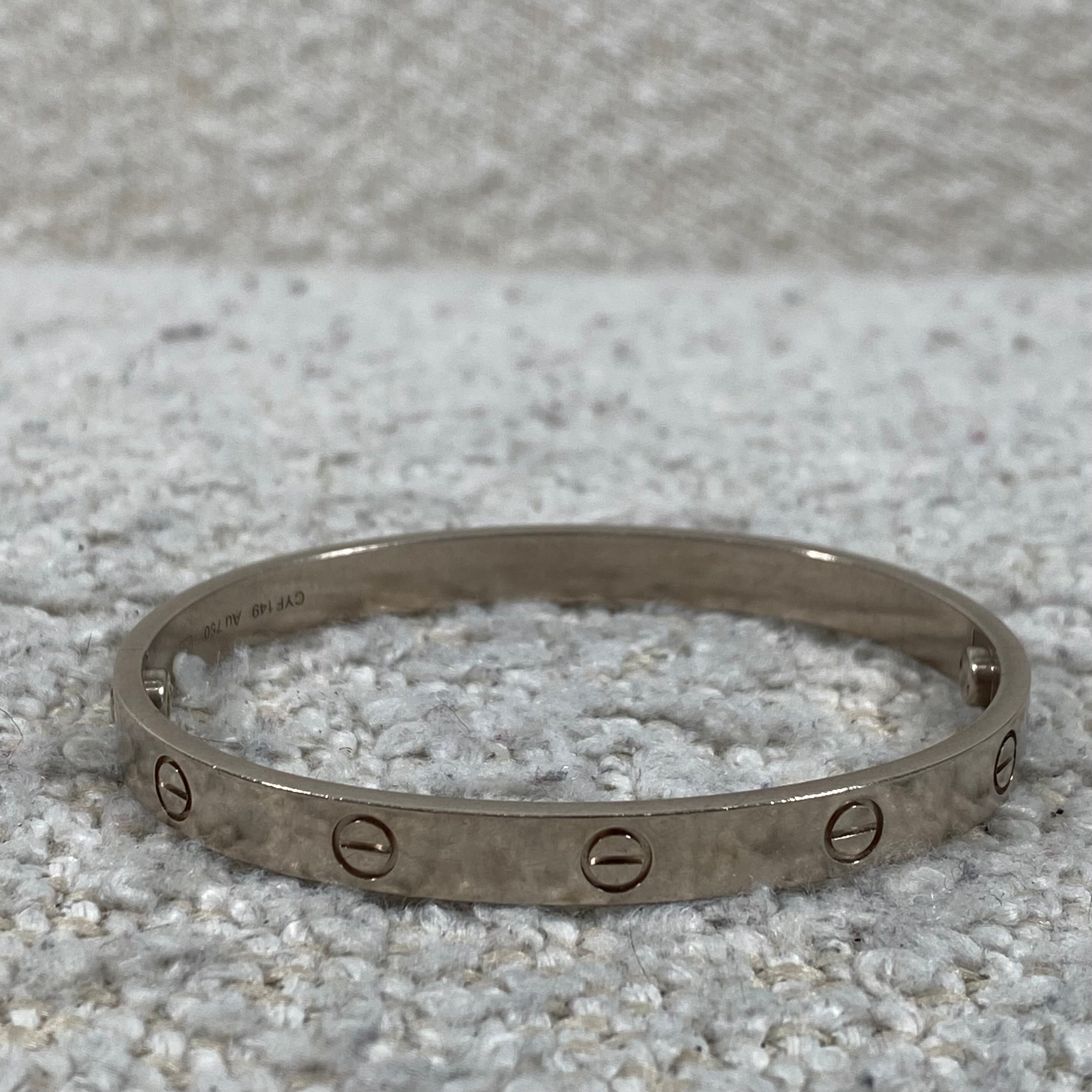Pre-owned Cartier Love Bracelet White Gold Size 18