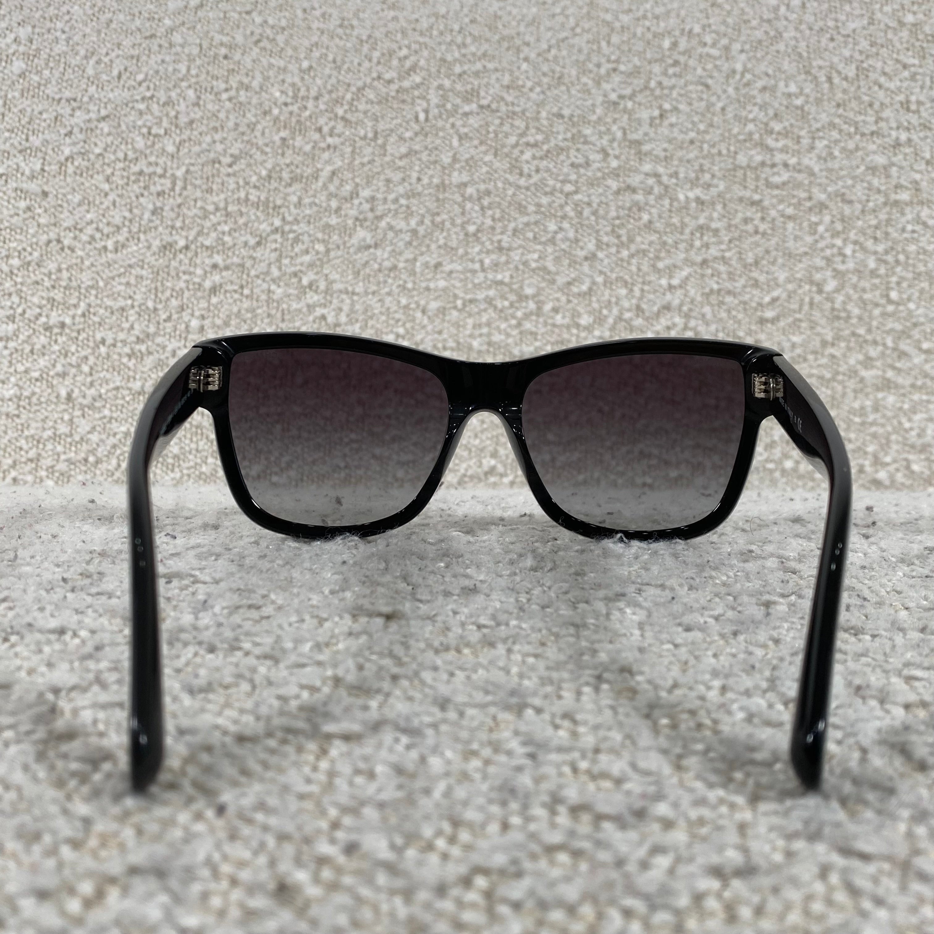 A timeless and versatile pair of designer sunglasses featuring sleek black acetate frames and matching black hardware. A classic silhouette that effortlessly elevates any look while offering everyday wearability.