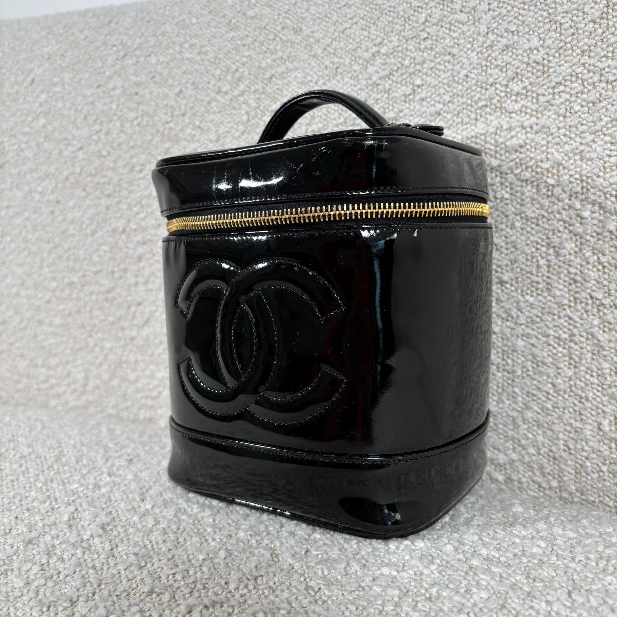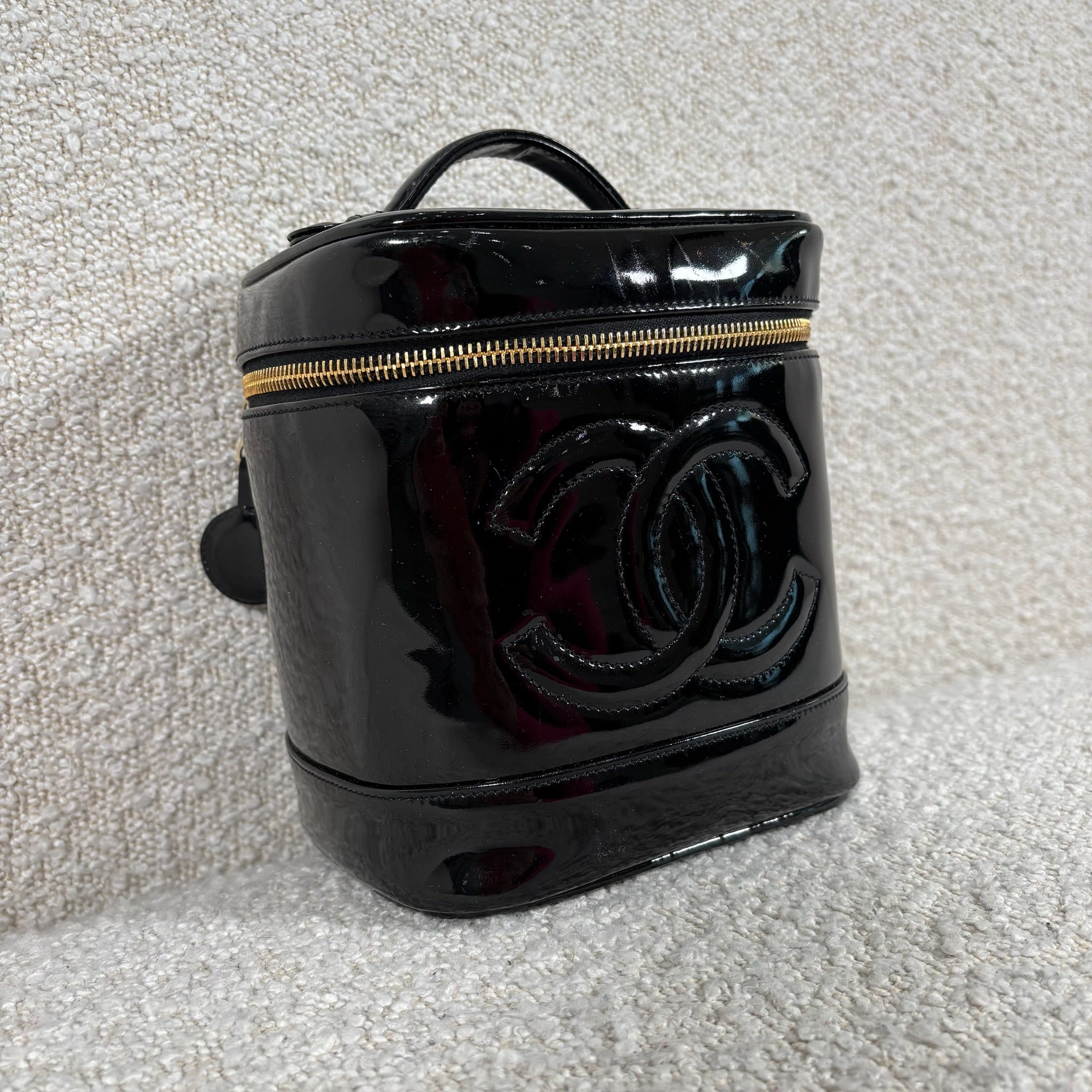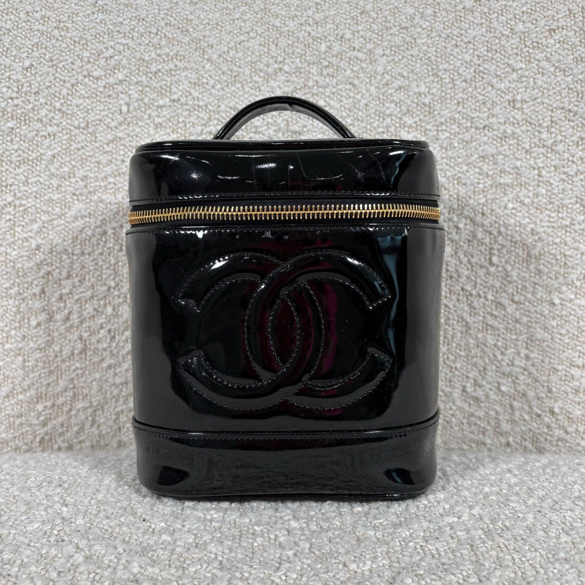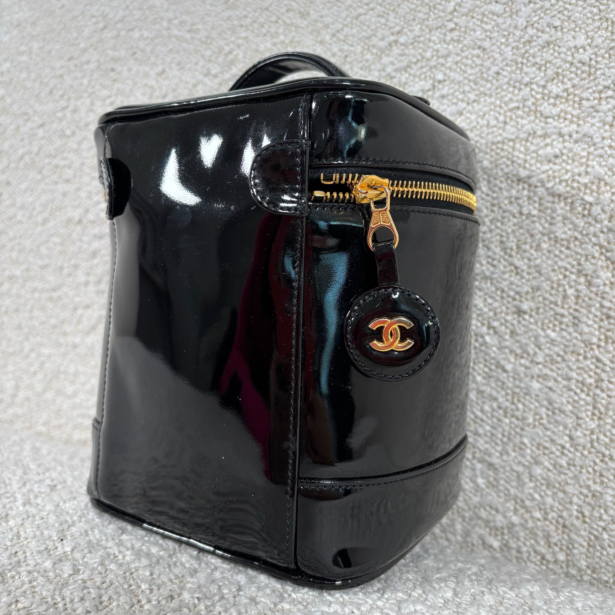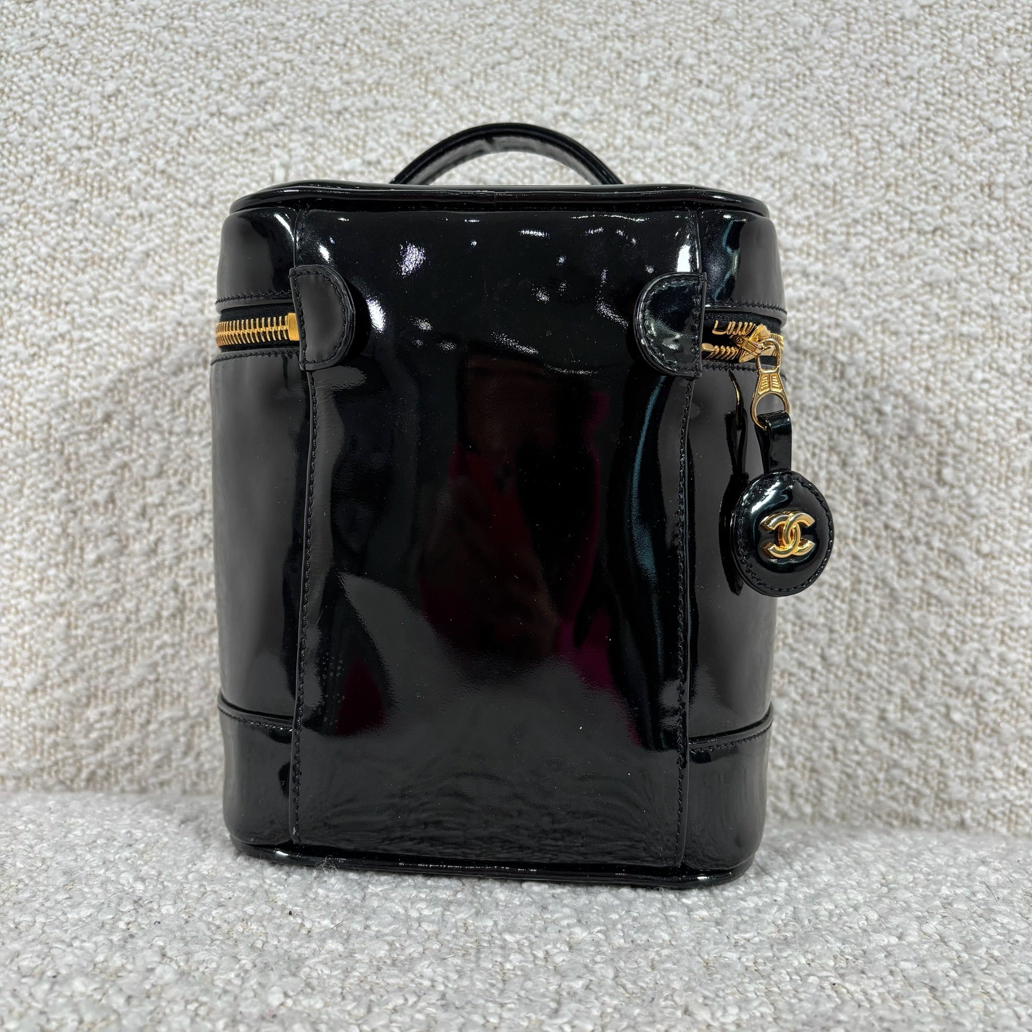 Pre-owned CHANEL Black Patent Leather Vanity Bag