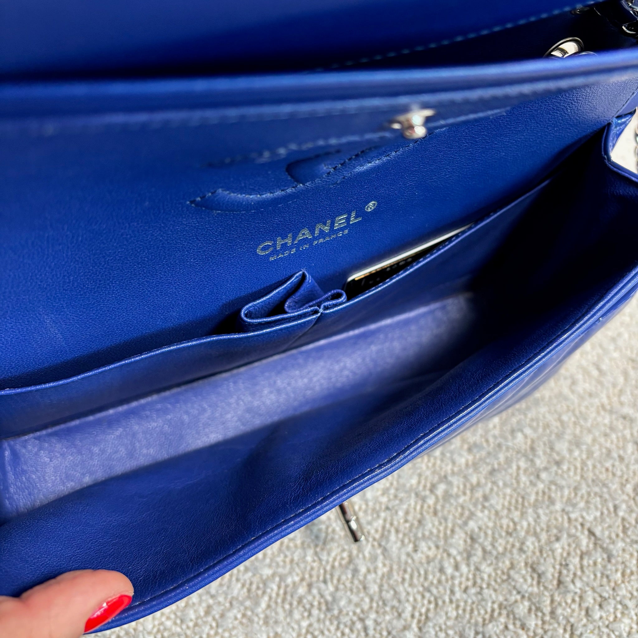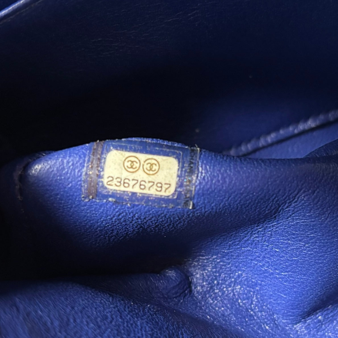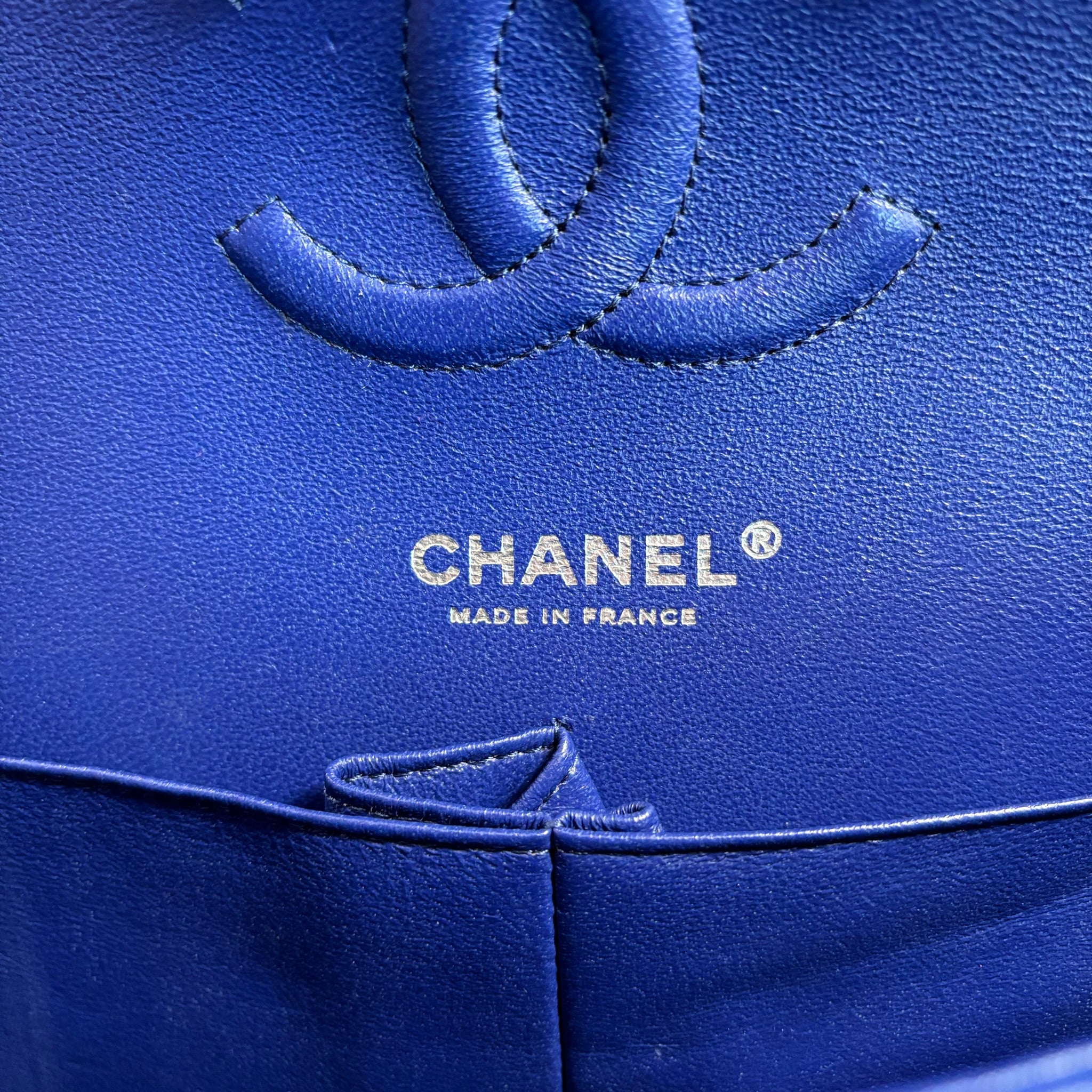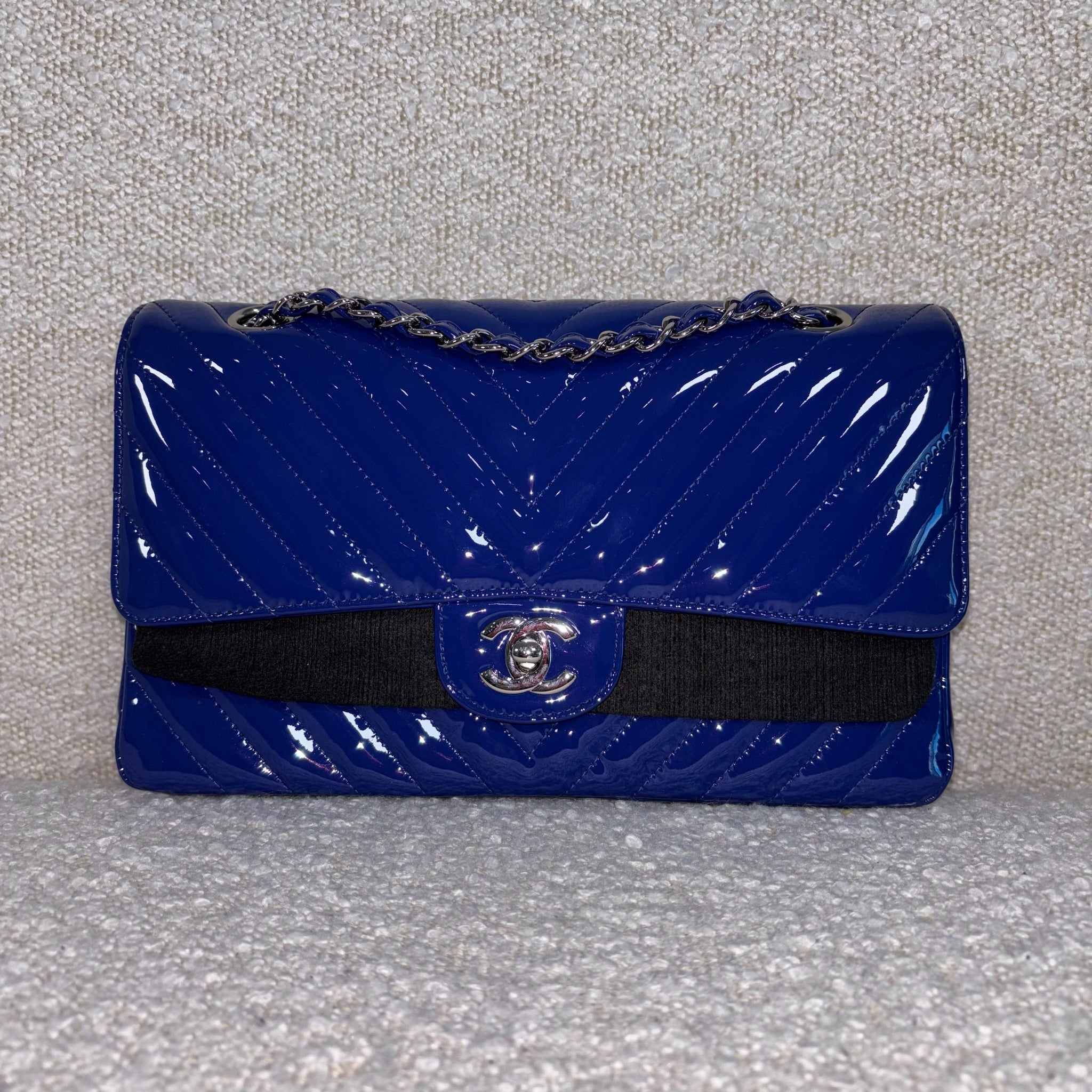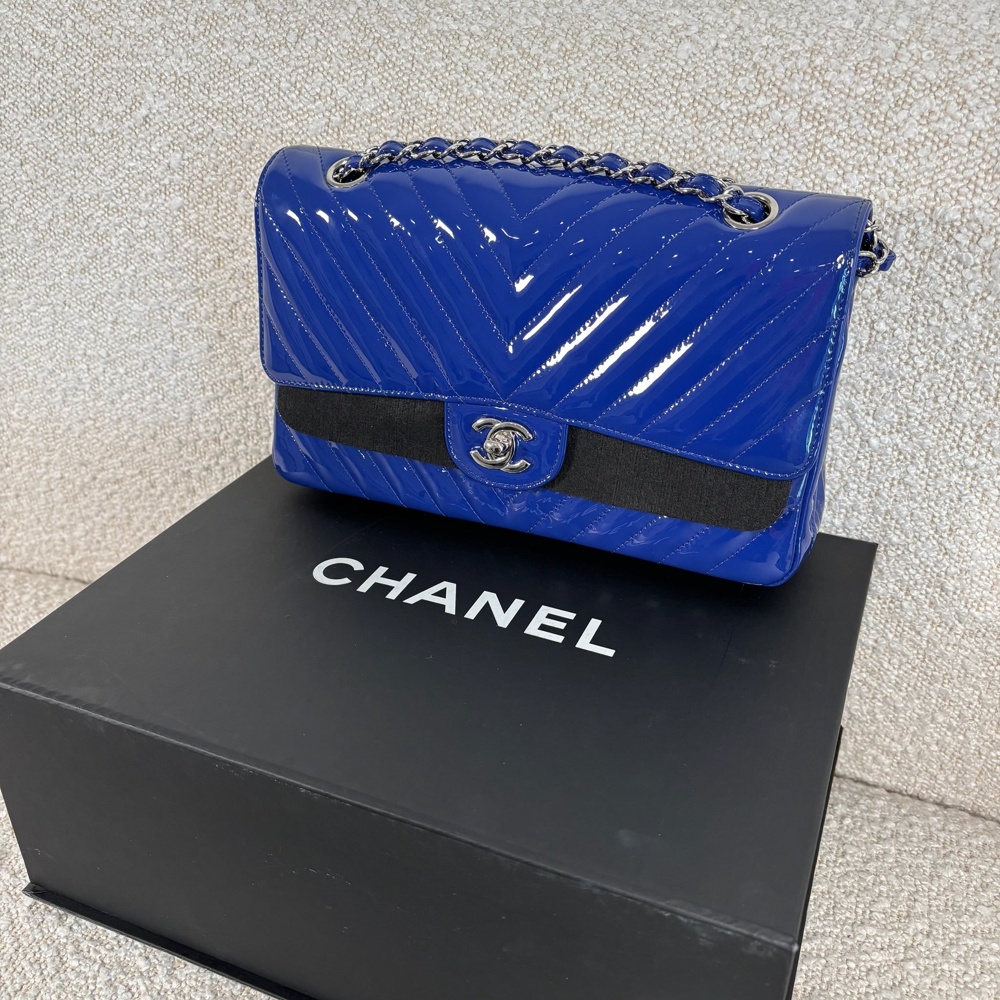 Pre-owned Chanel Classic Flap Chevron Blue Patent Leather Medium
