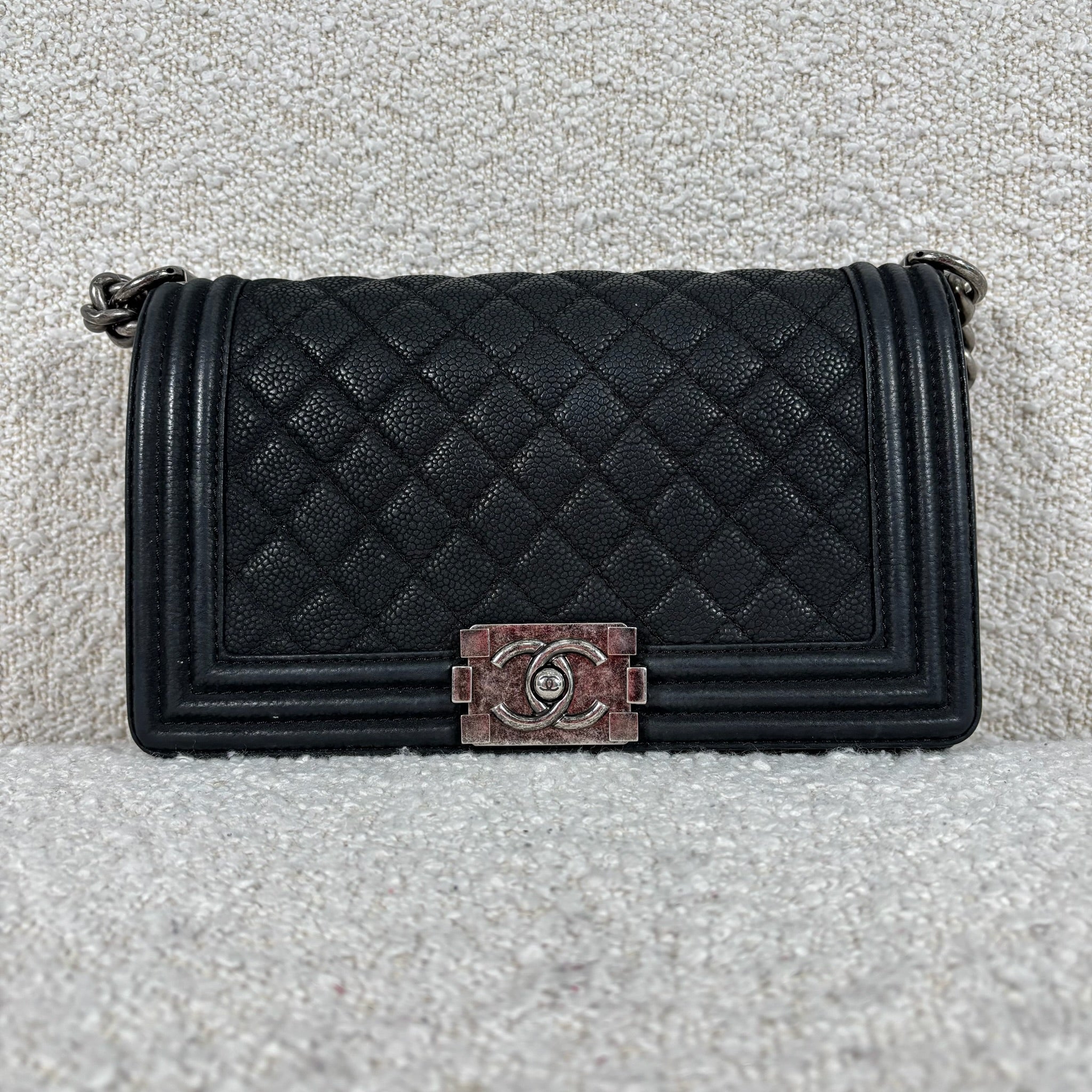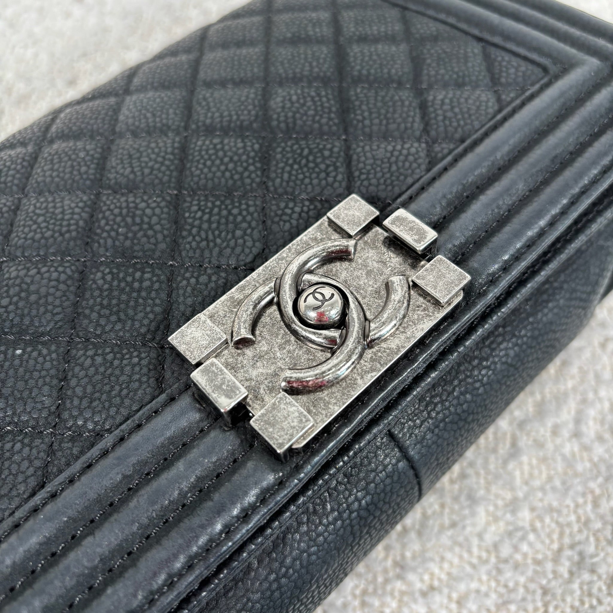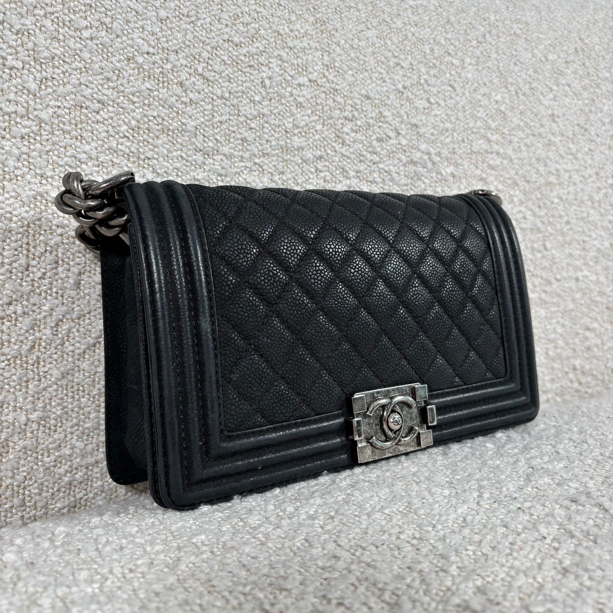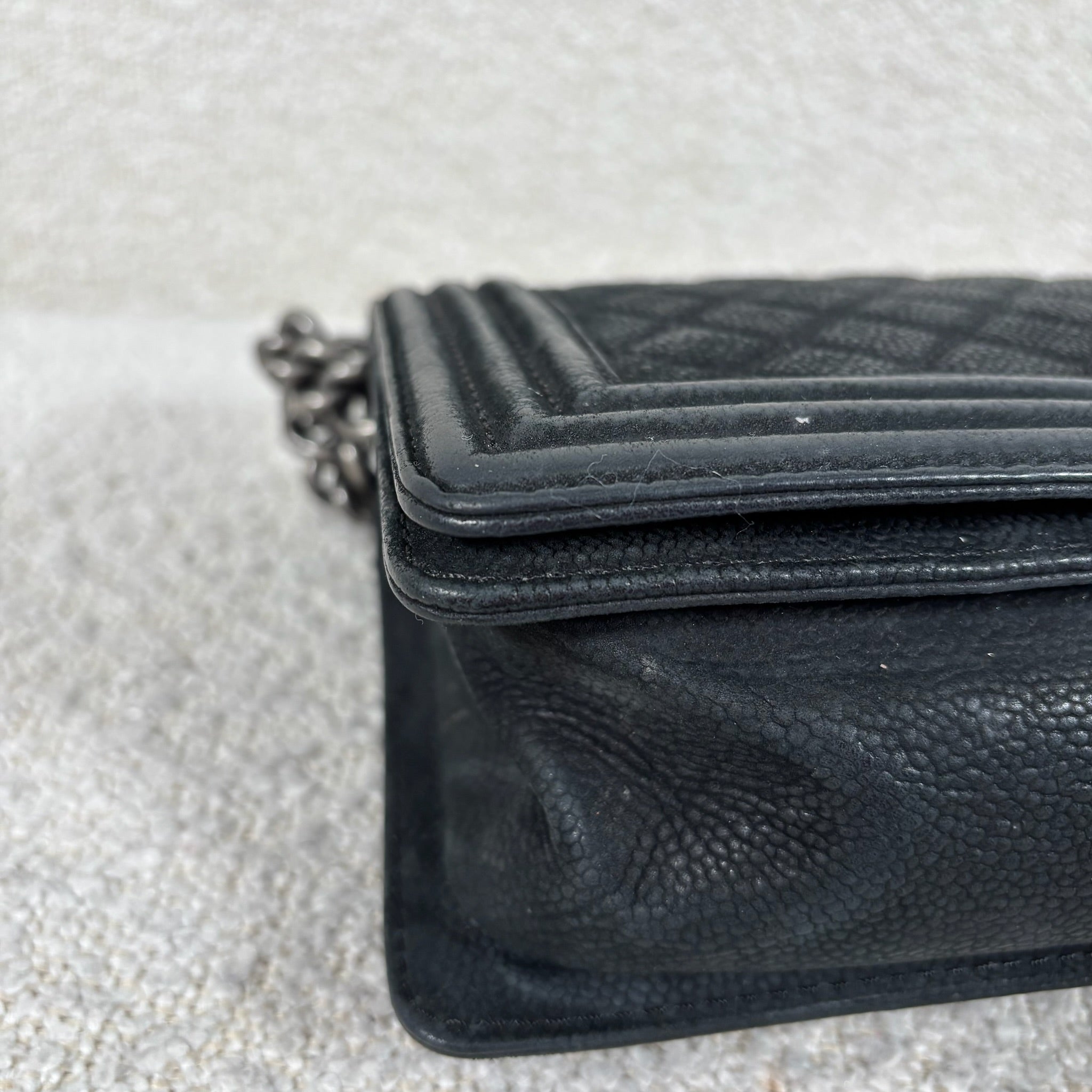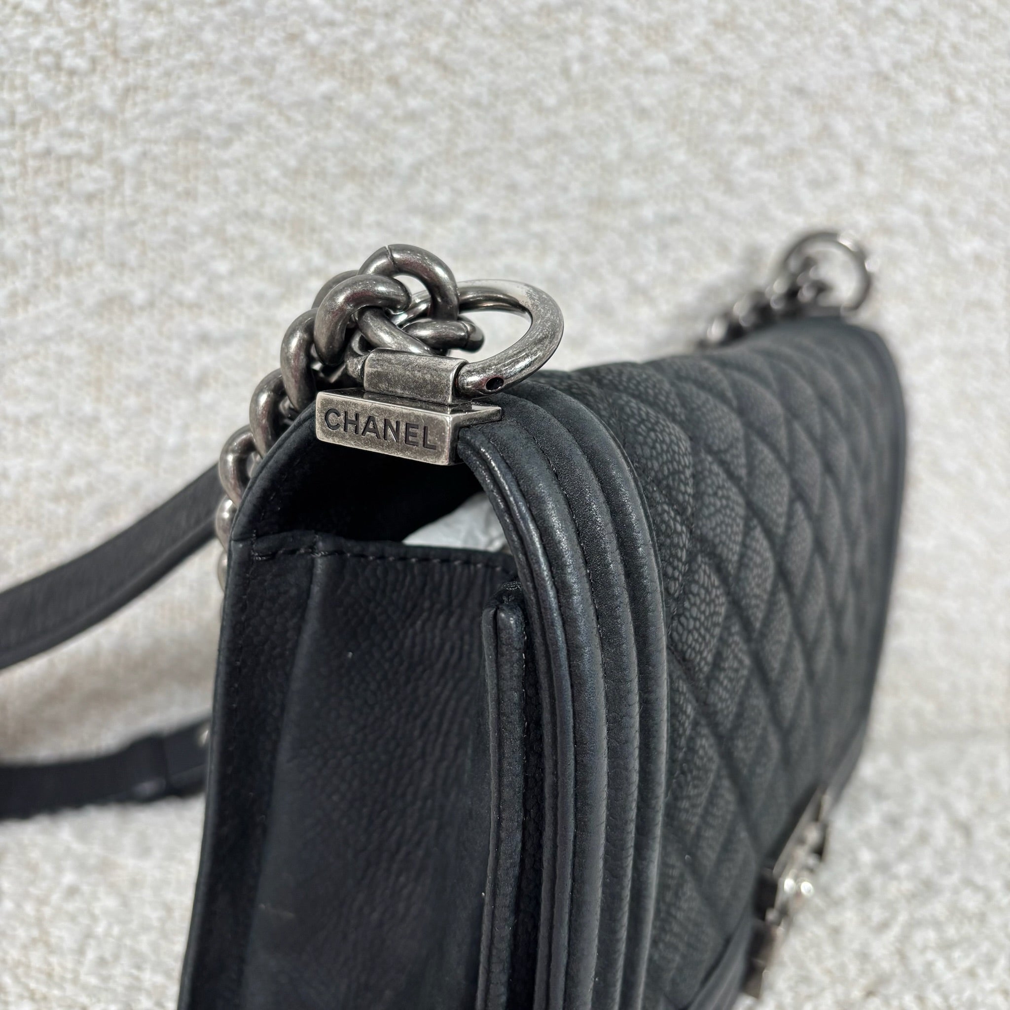 Pre-owned Chanel Matte Black Caviar Boy Bag