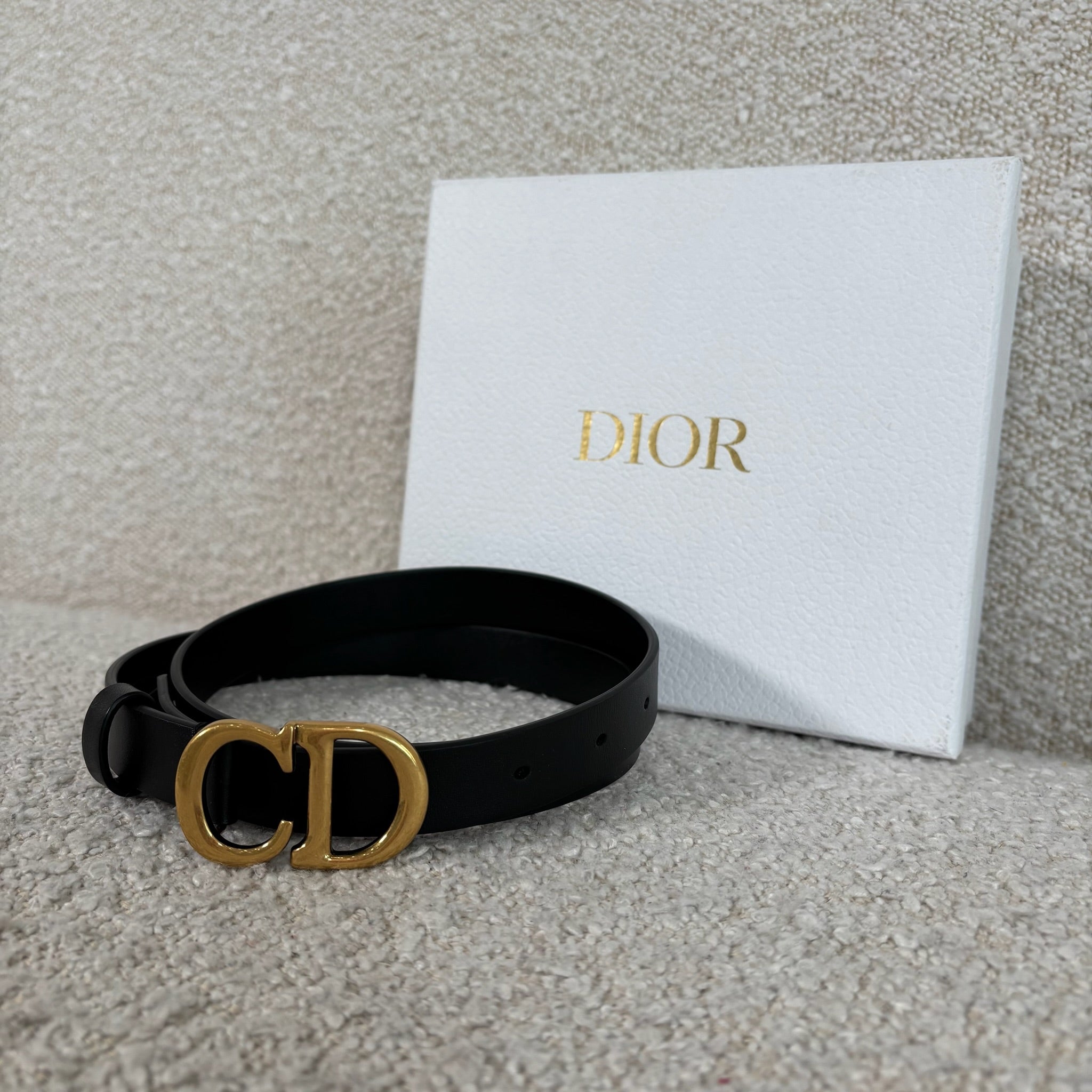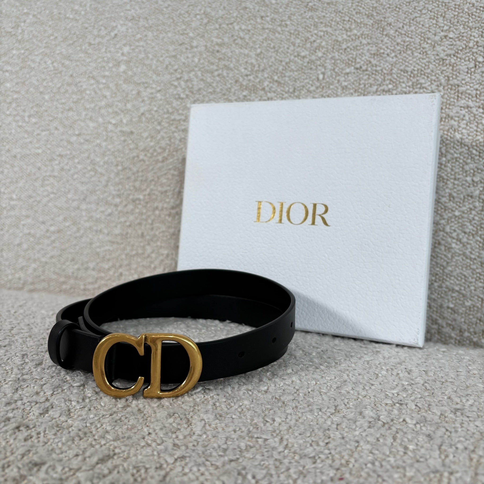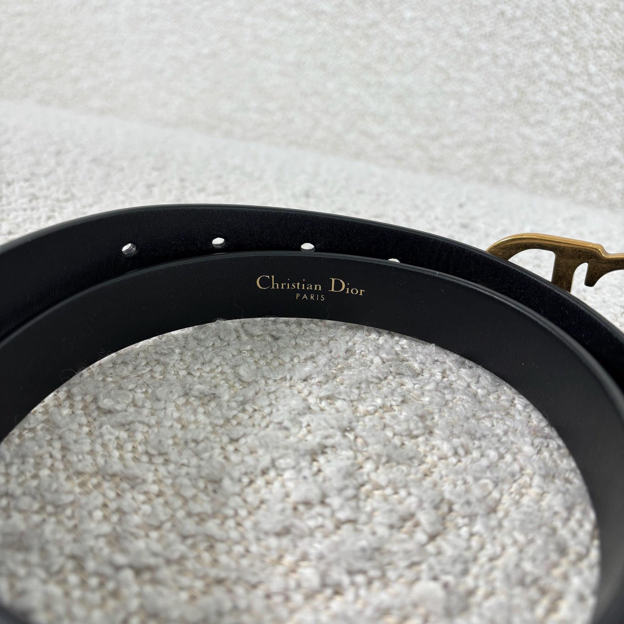 Pre-owned CHRISTIAN DIOR BLACK CALFSKIN 20MM SADDLE BELT SIZE 80