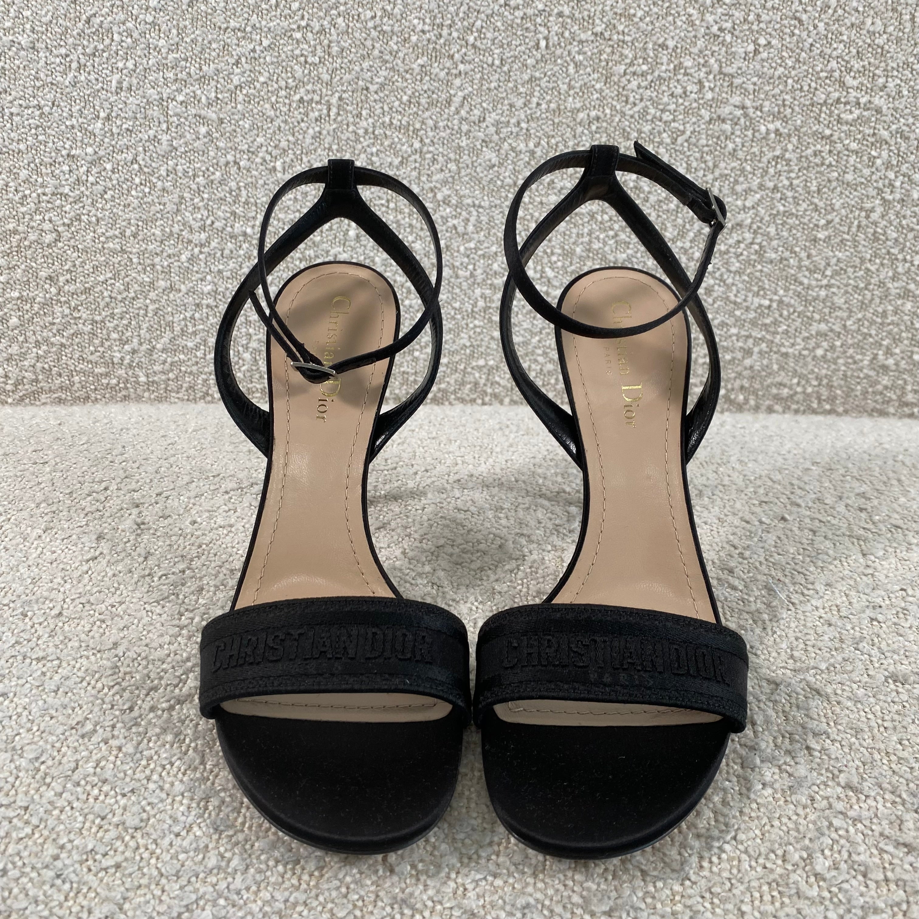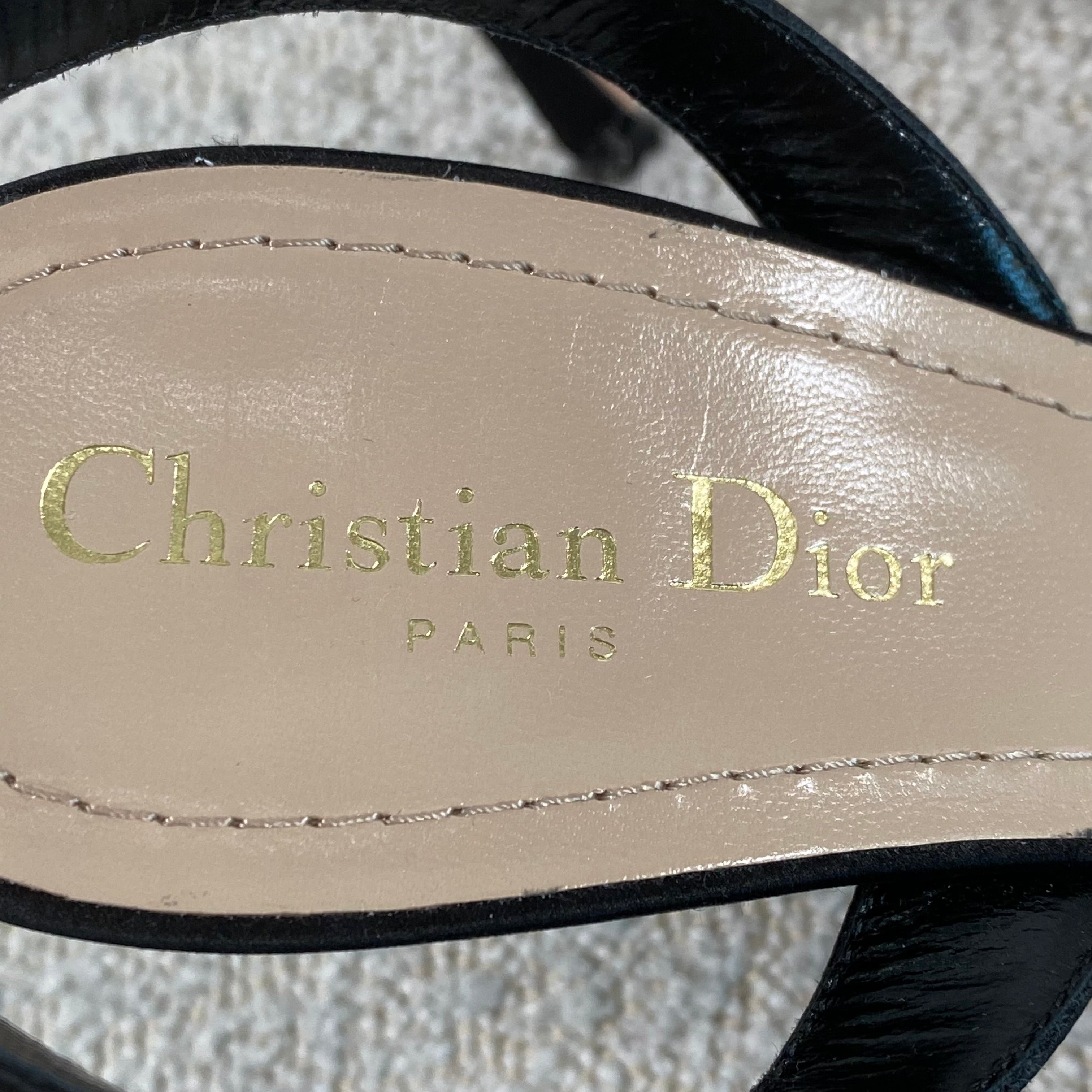 Pre-owned Christian Dior D Way Ankle Strap Sandal Heels, Black, Size 40