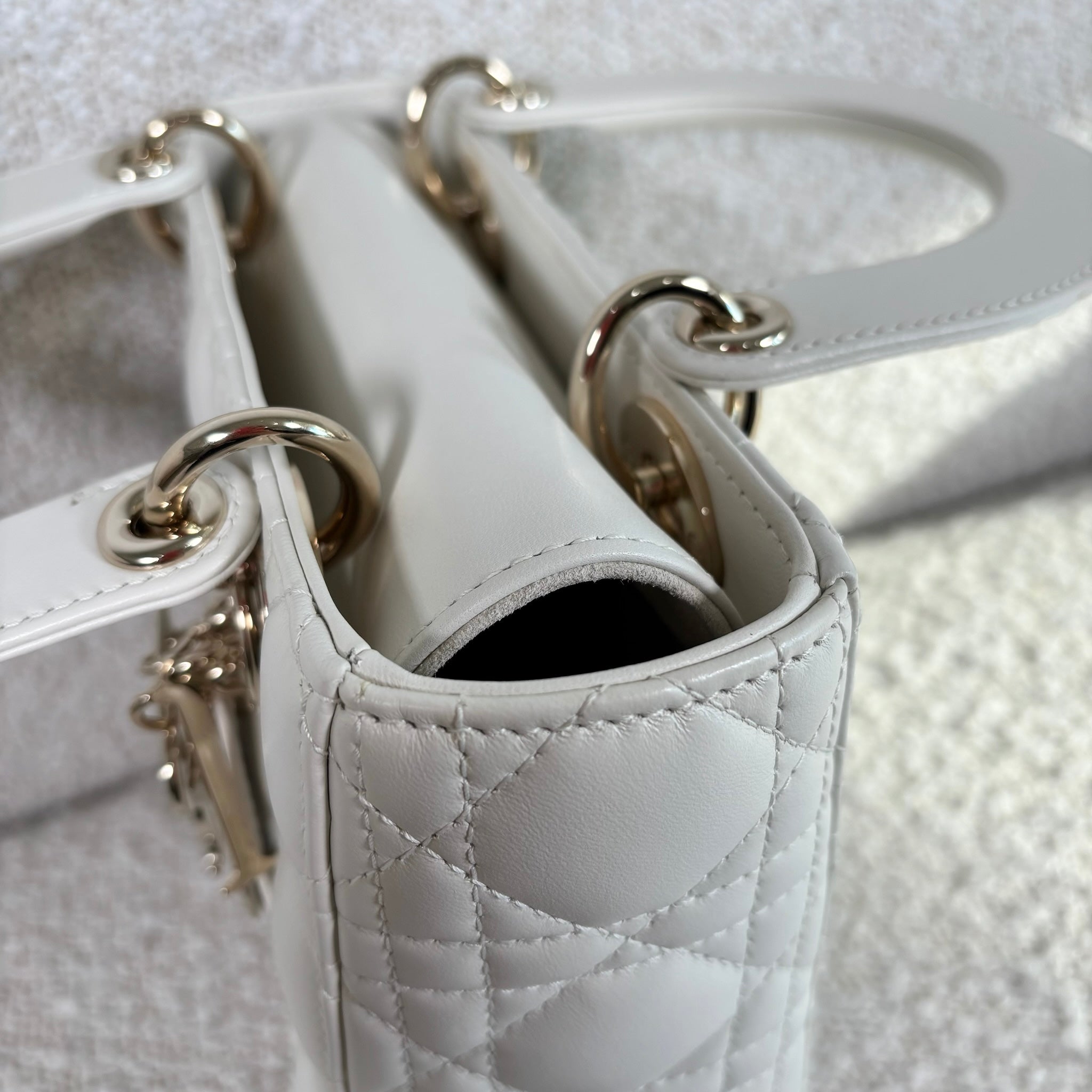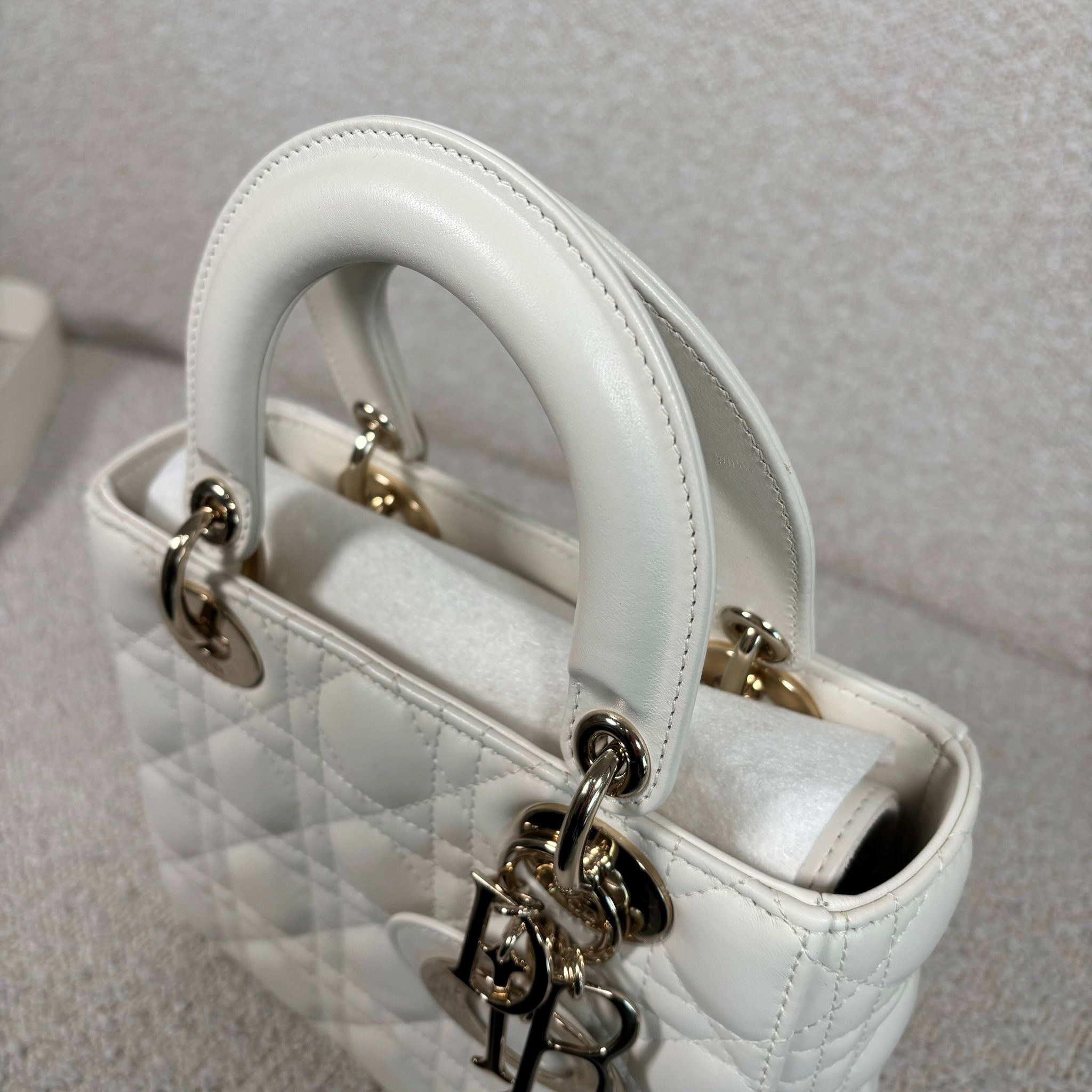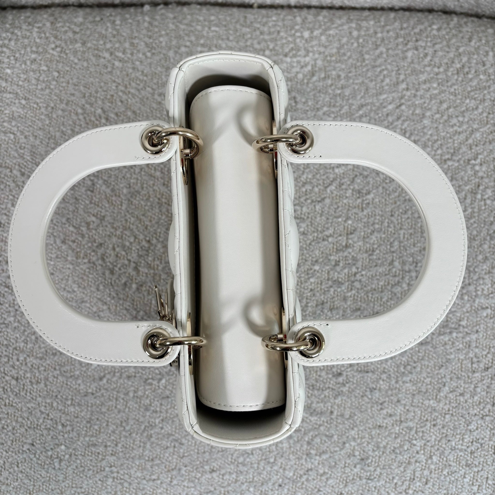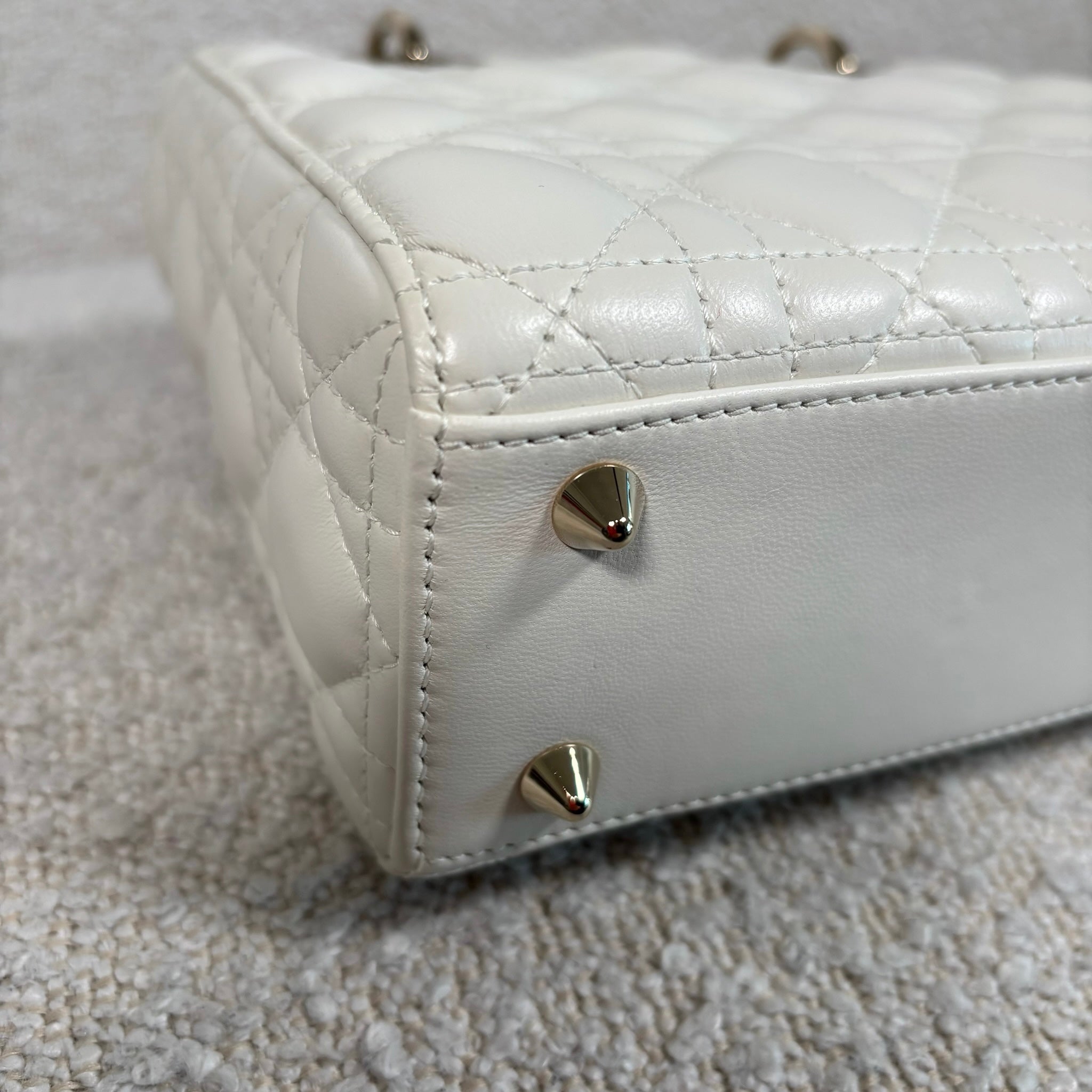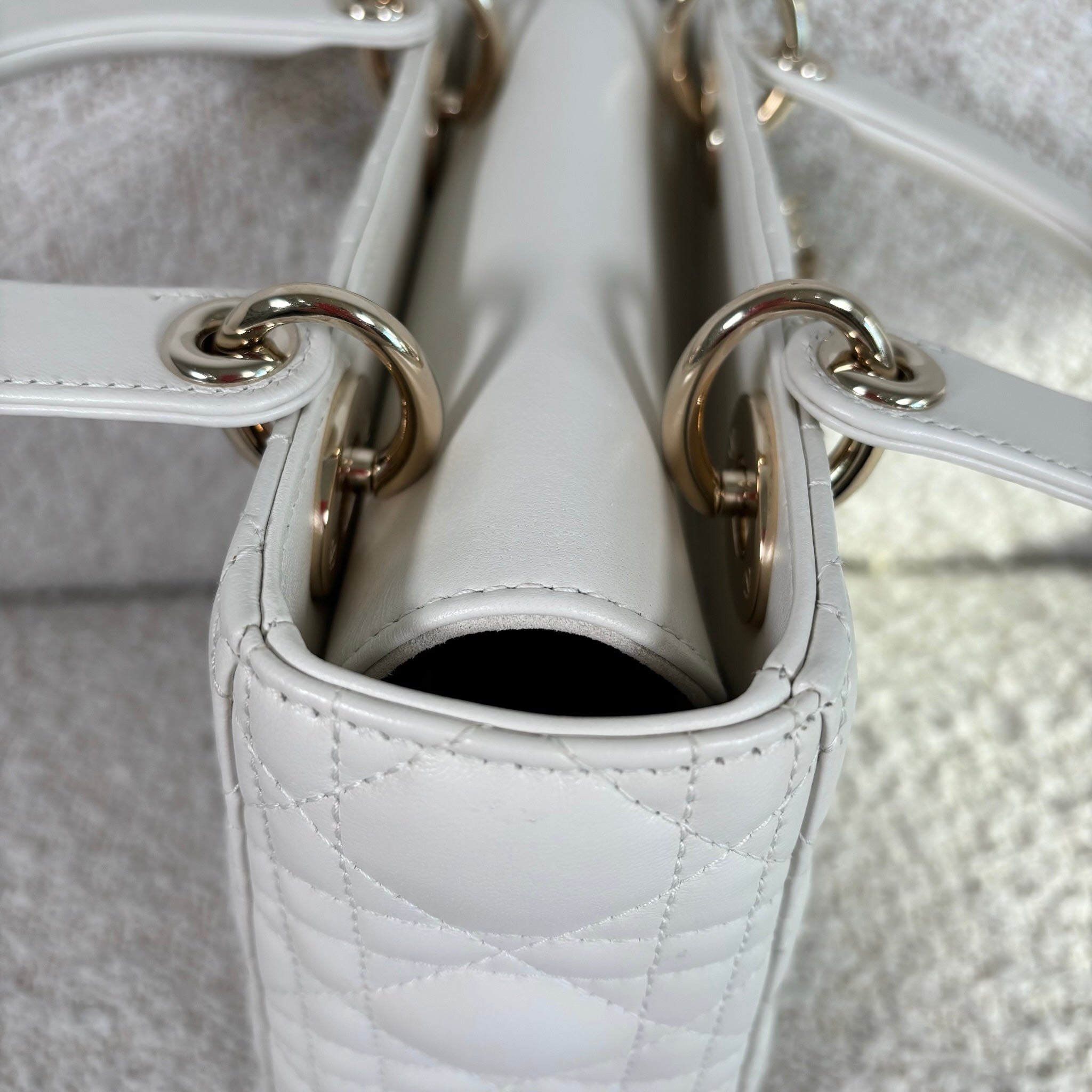 Crafted in white Cannage lambskin with light gold tone hardware, this small size silhouette is timeless and elegant—perfect for both everyday wear and special occasions.